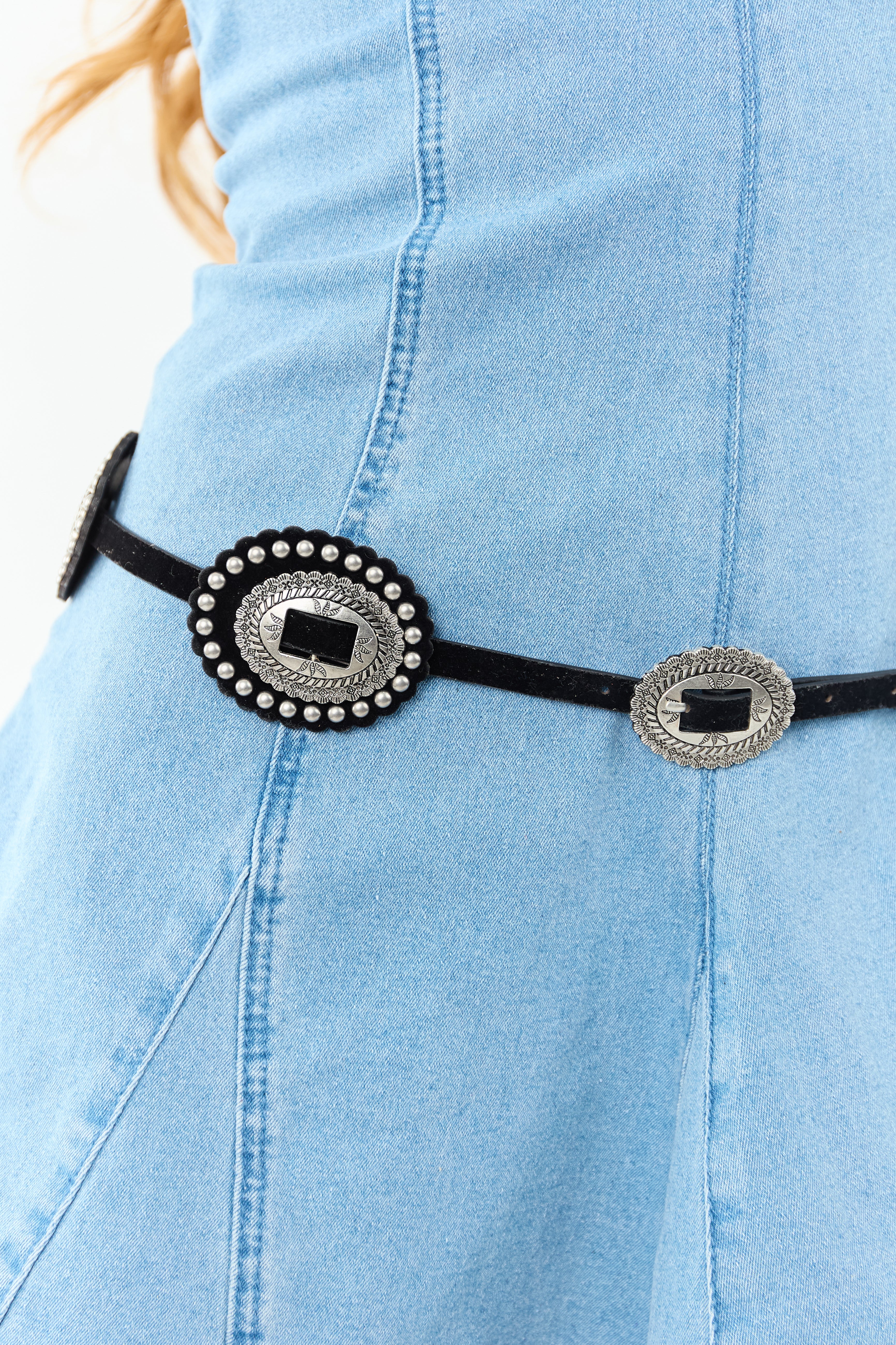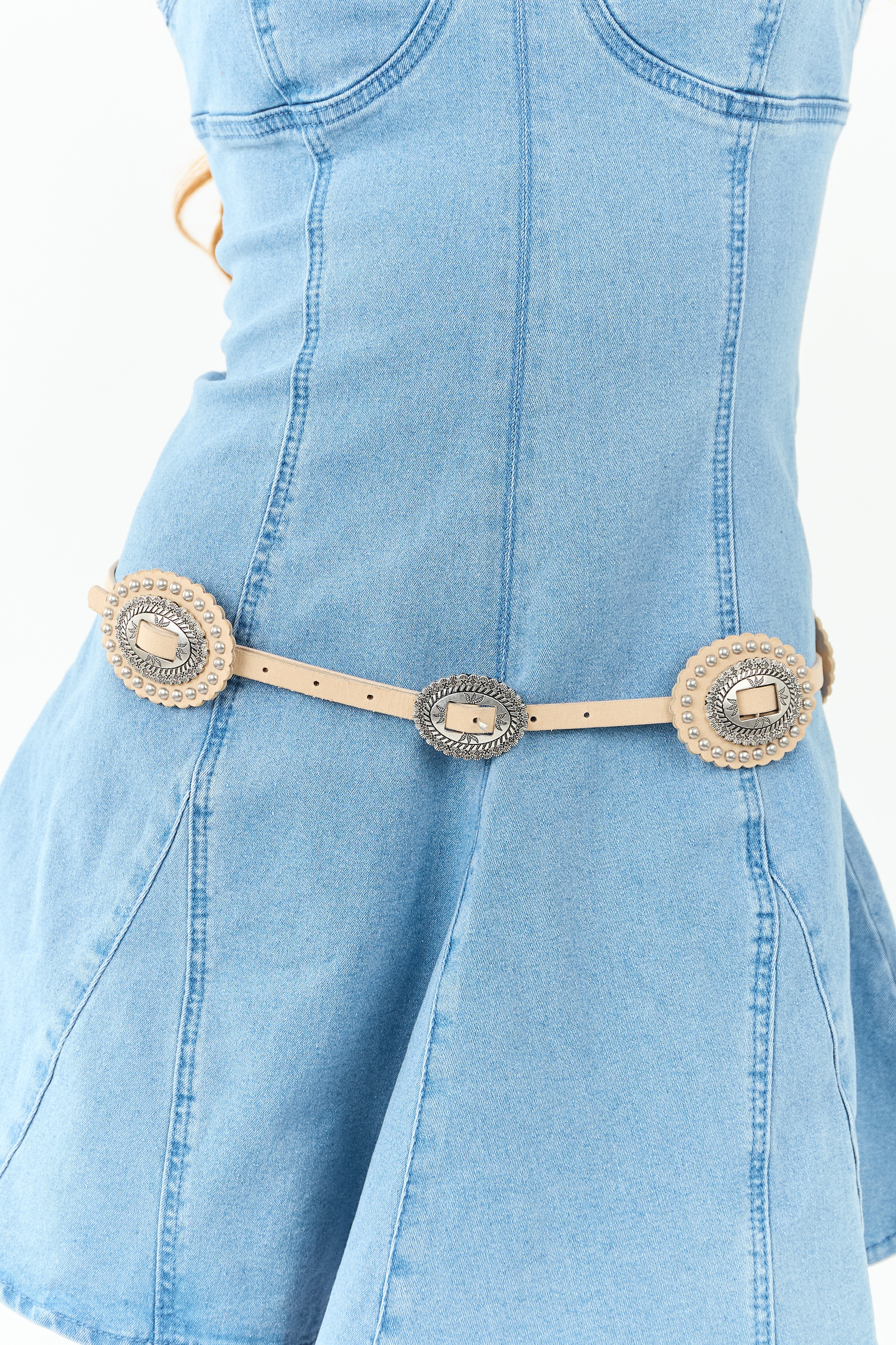 Beige Large Ornate Oval Disc Faux Leather Belt