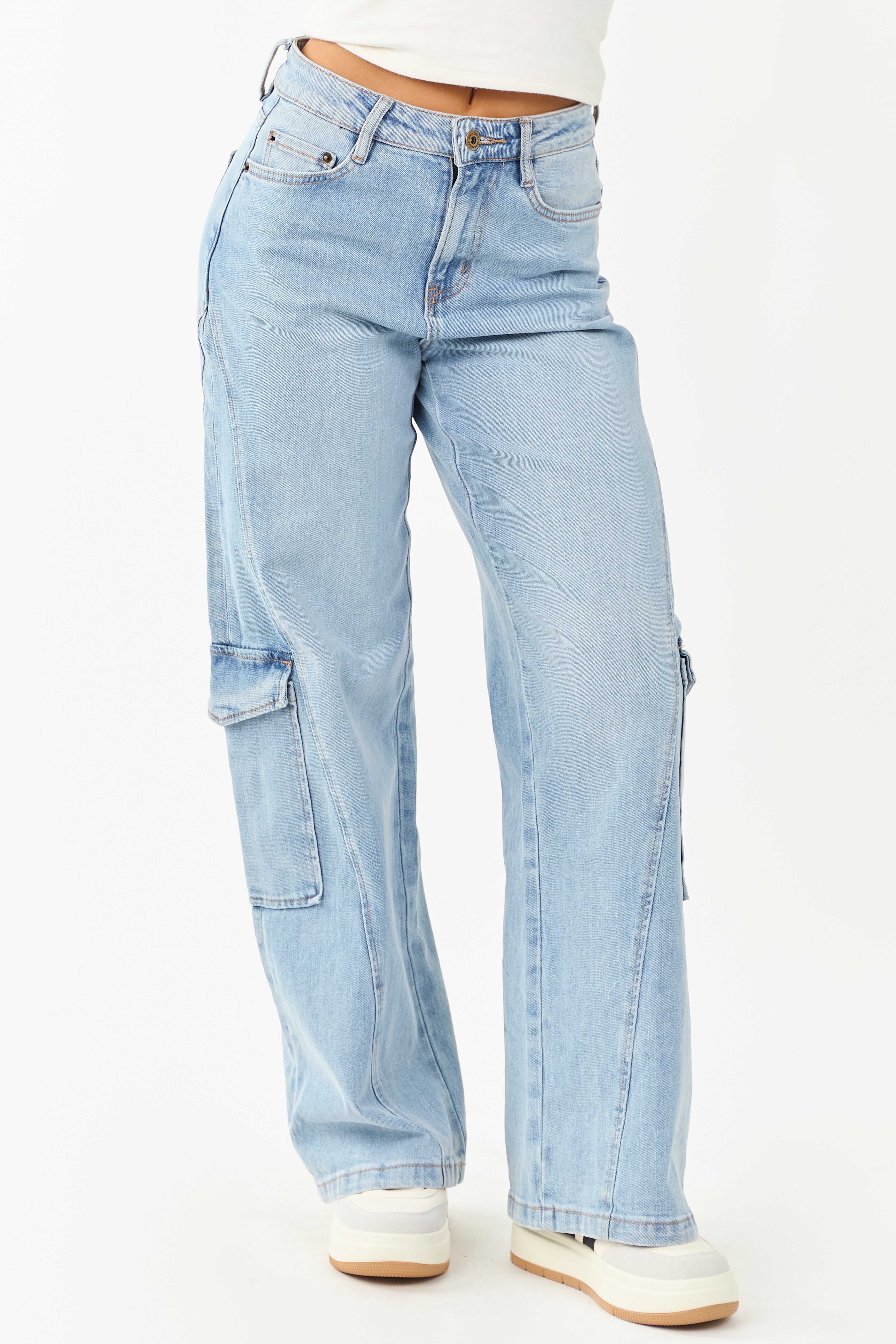 Mica Denim Light Wash Wide Leg Cargo Jeans