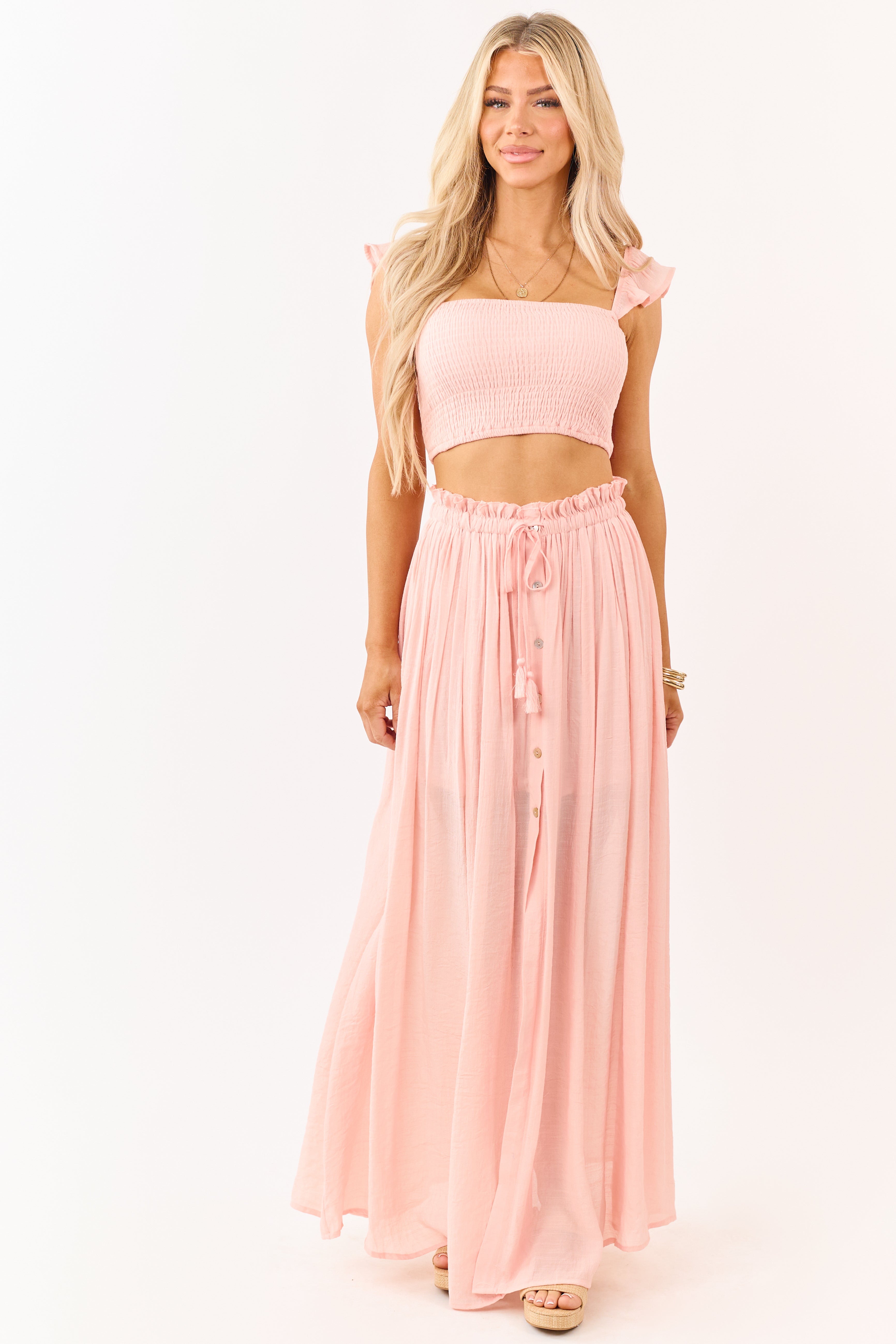Baby Pink Lace Short Sleeve Top and Skirt Set