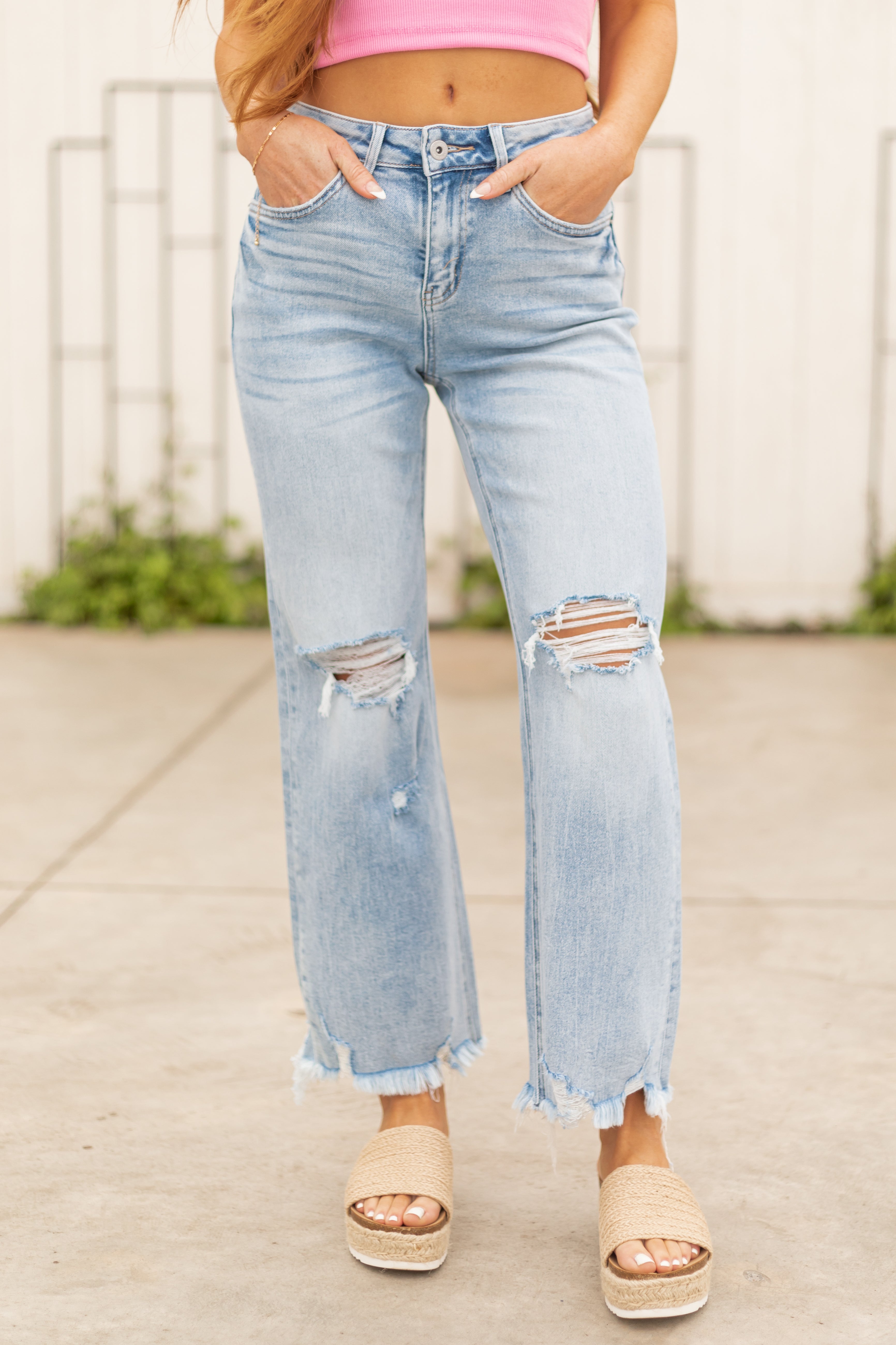 Mica Denim Light Wash Raw Hem Straight Jeans
