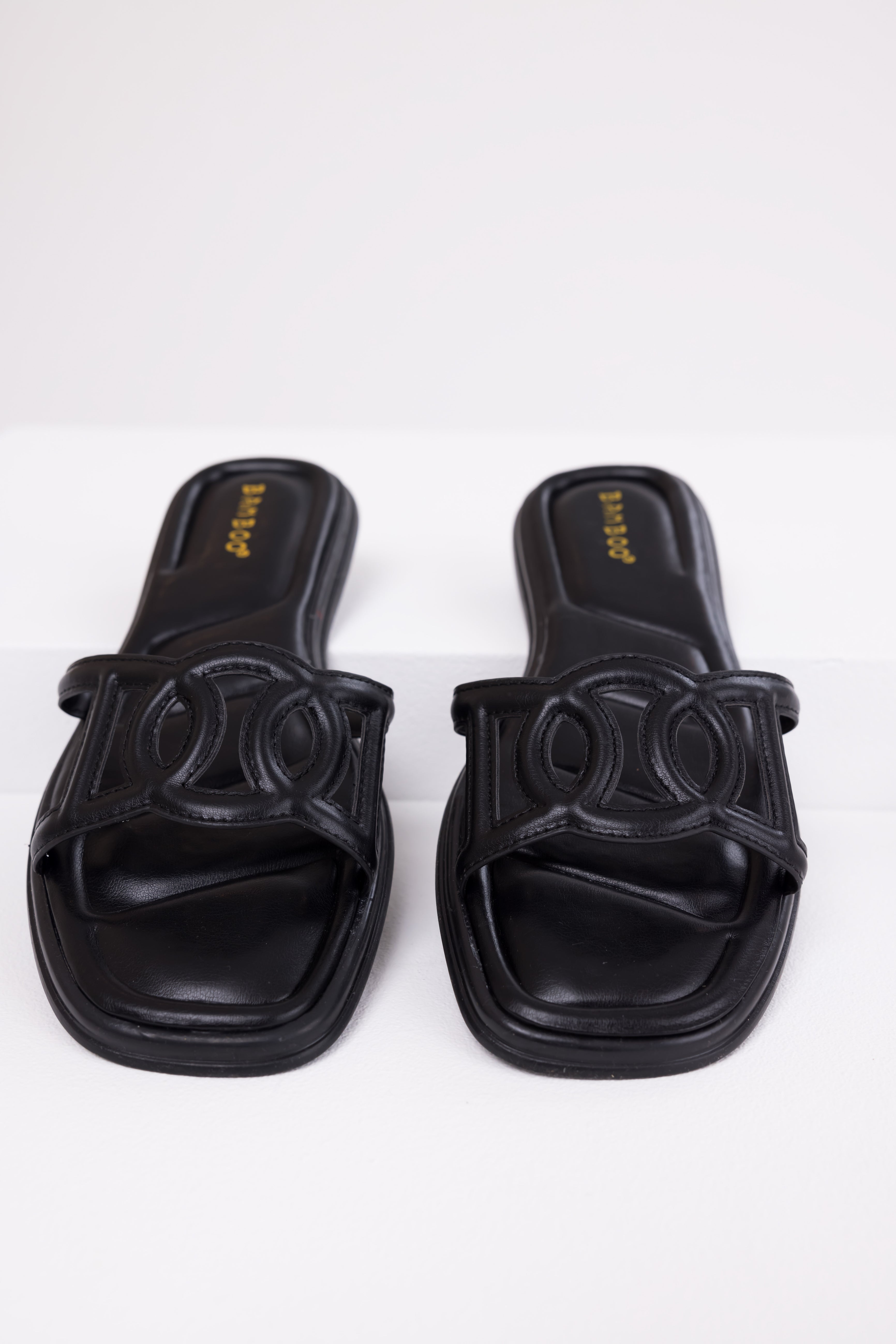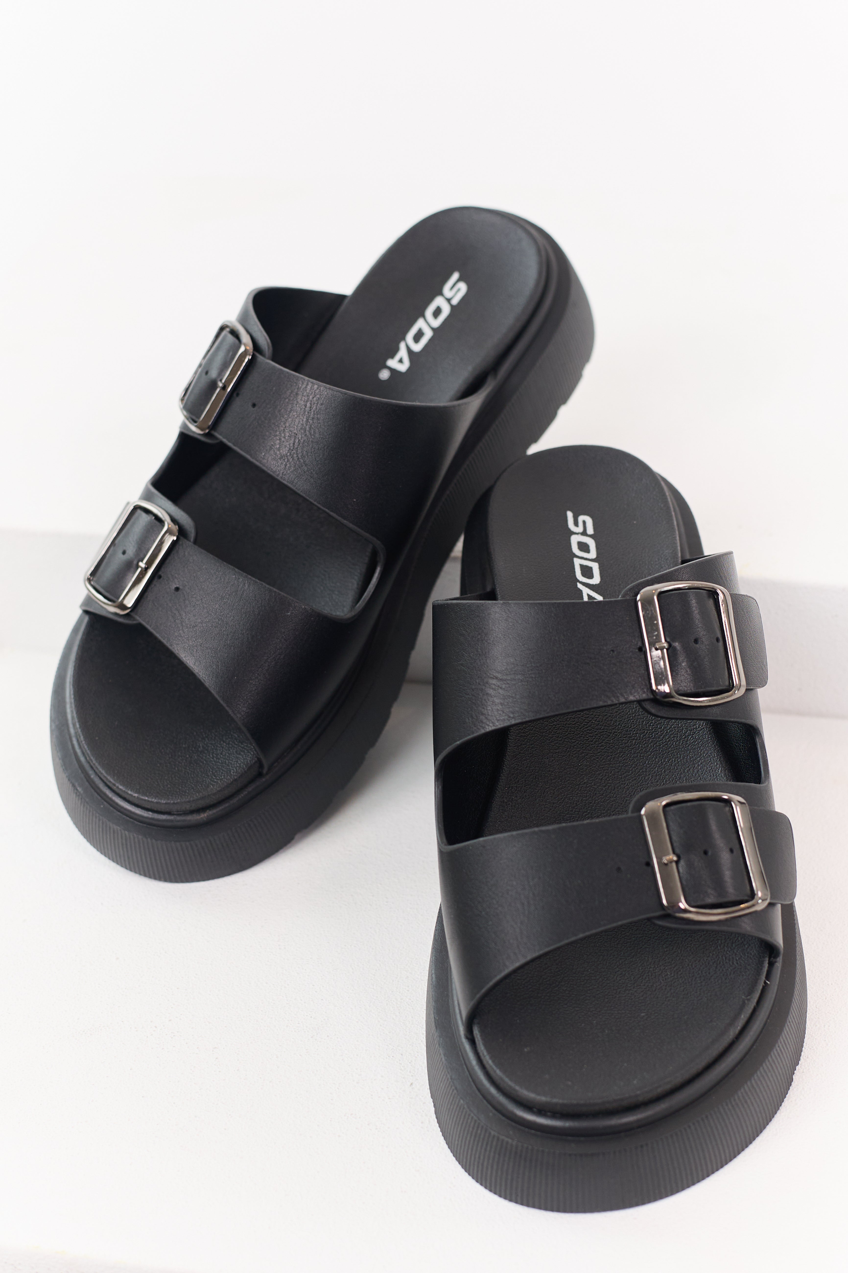Black Double Buckle Slide On Sandals