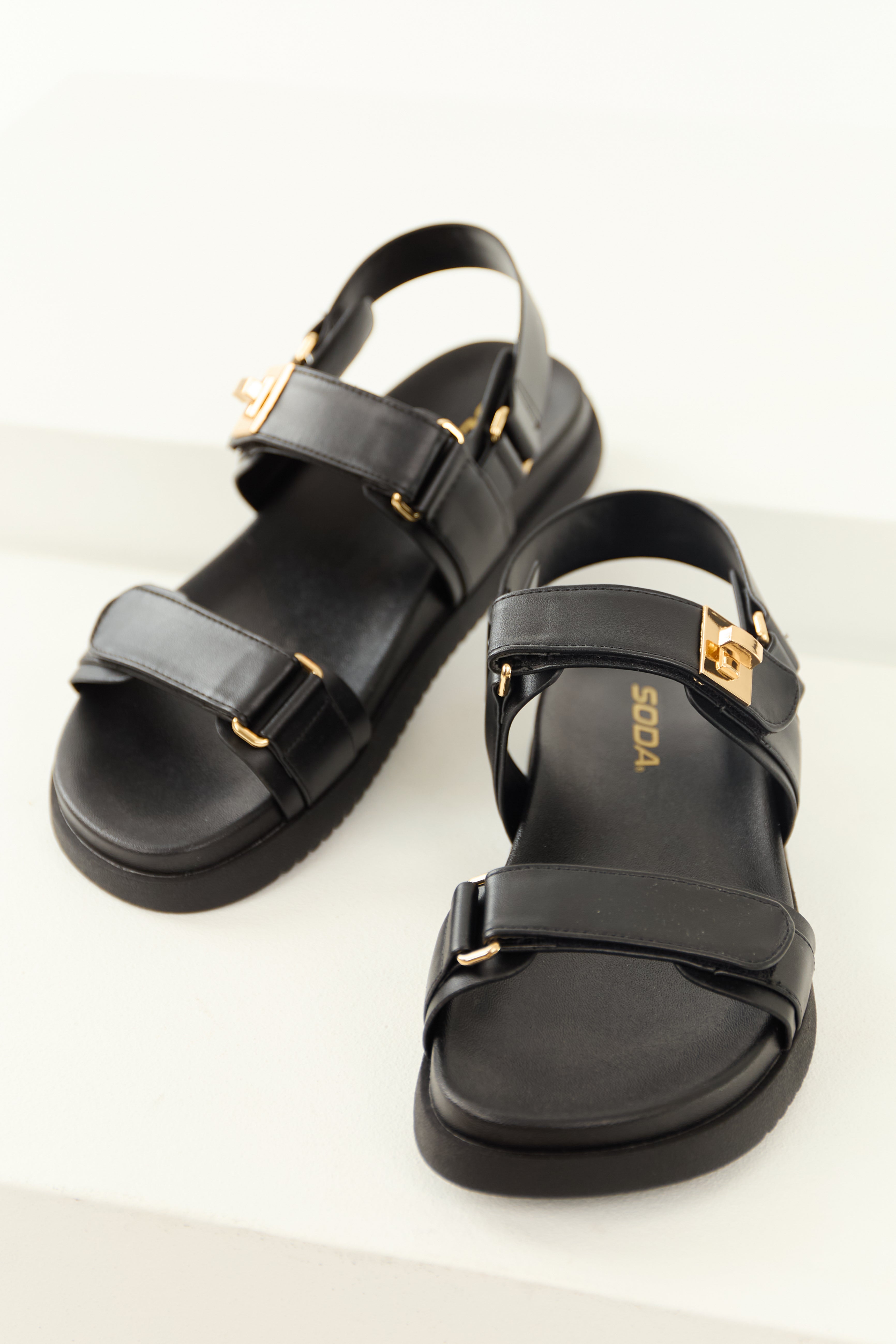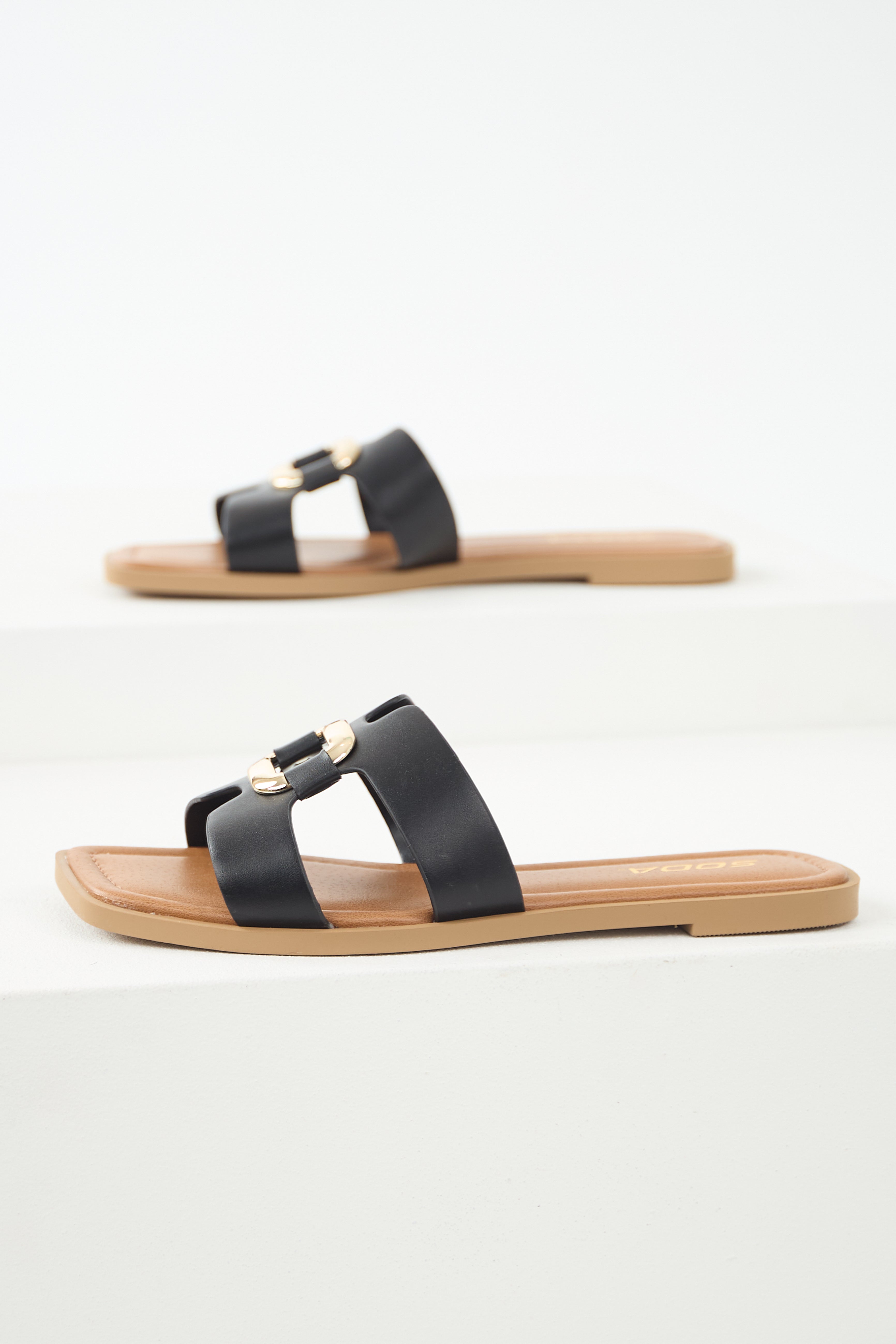 Black Gold Buckle Open Toe Sandals