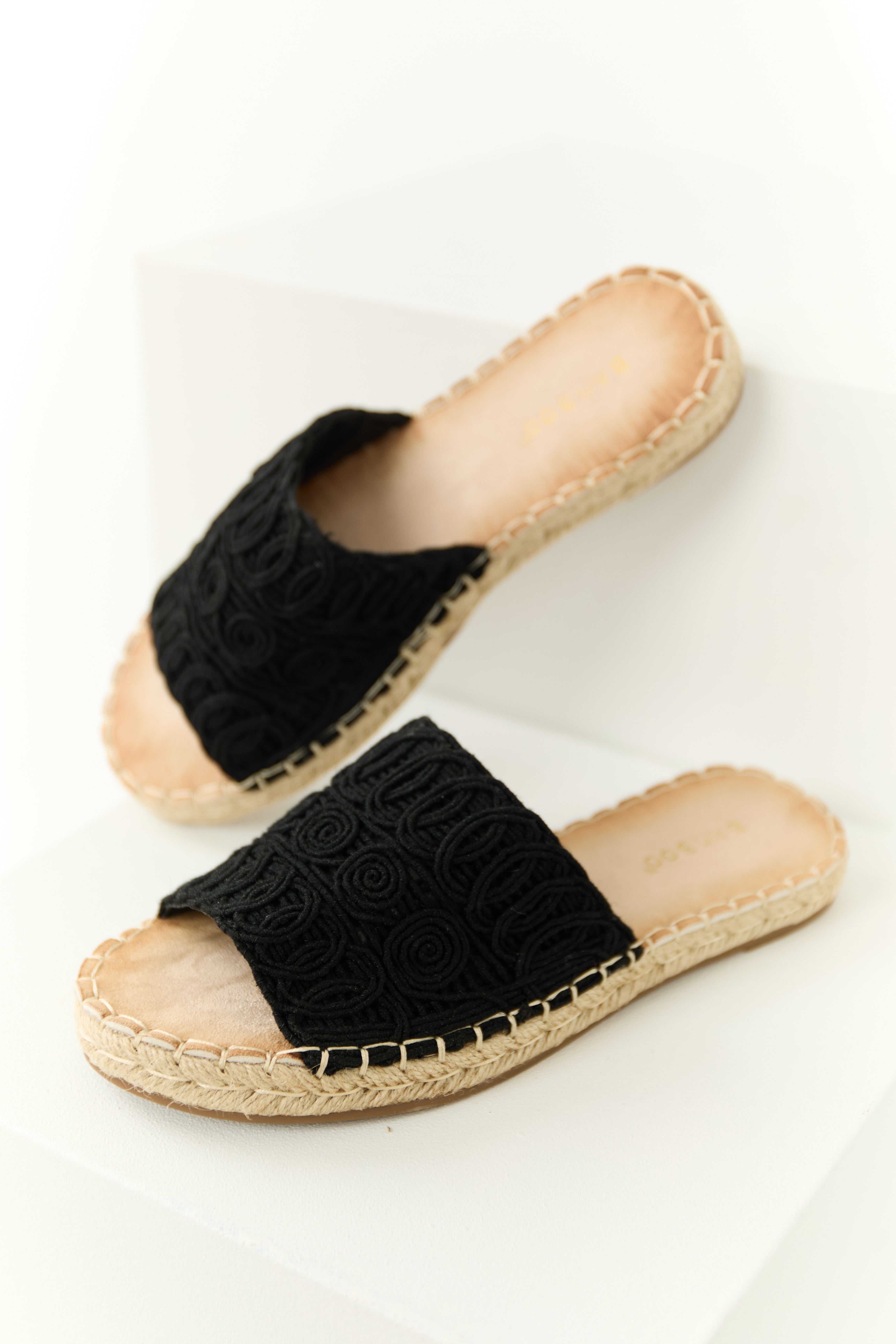 Black Woven Lace Espadrille Slide On Sandals