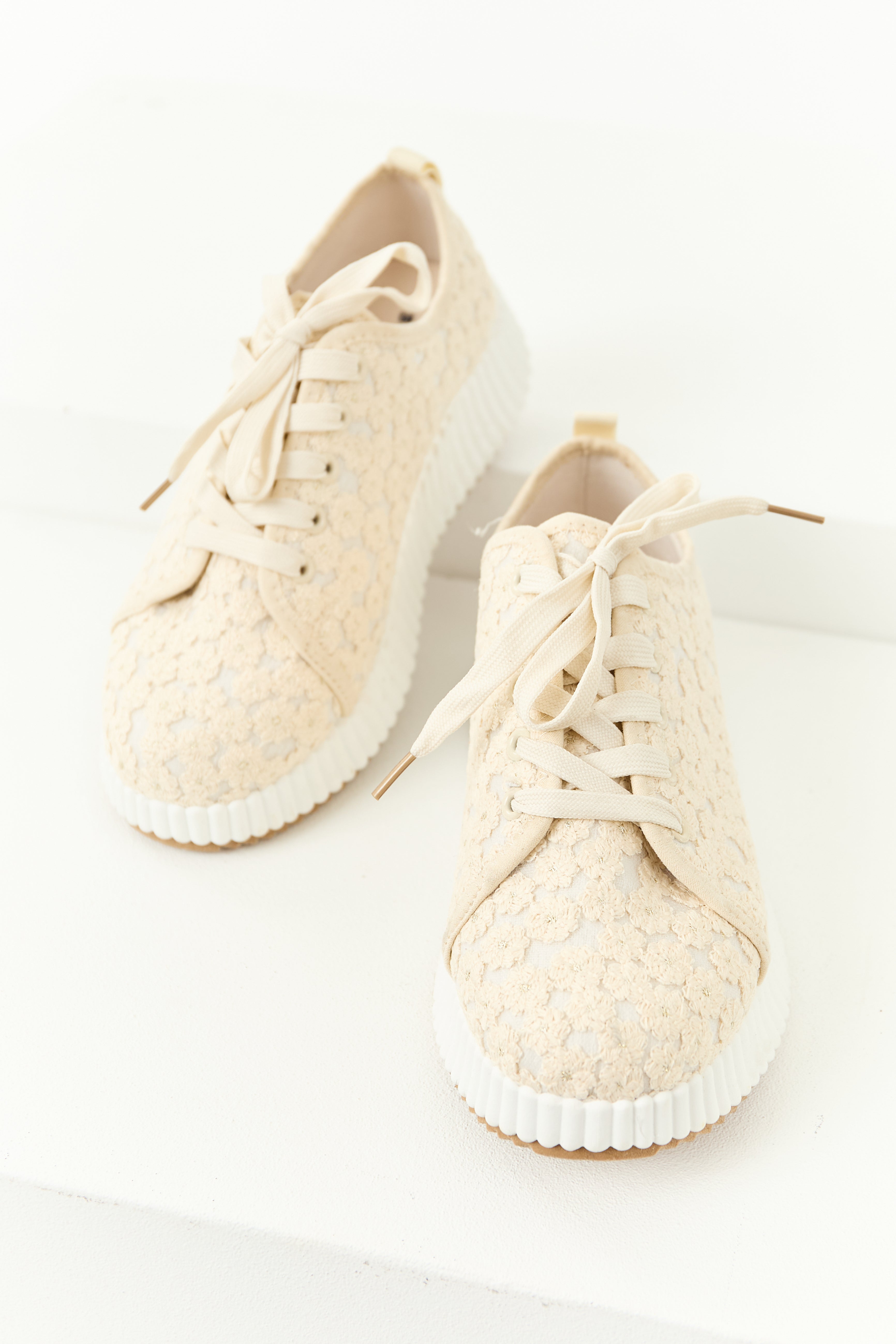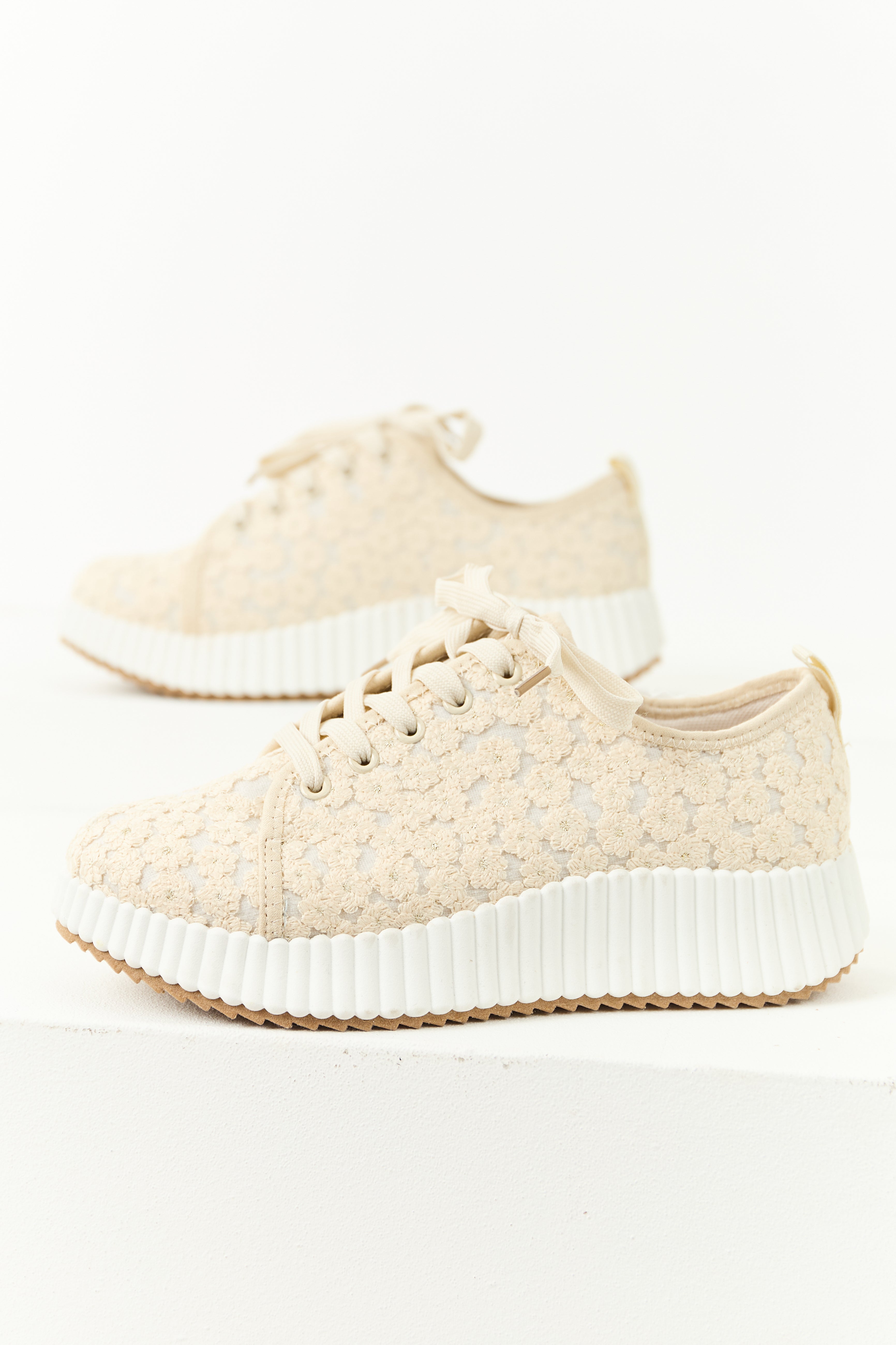 Almond Floral Embroidered Platform Lace Up Sneakers