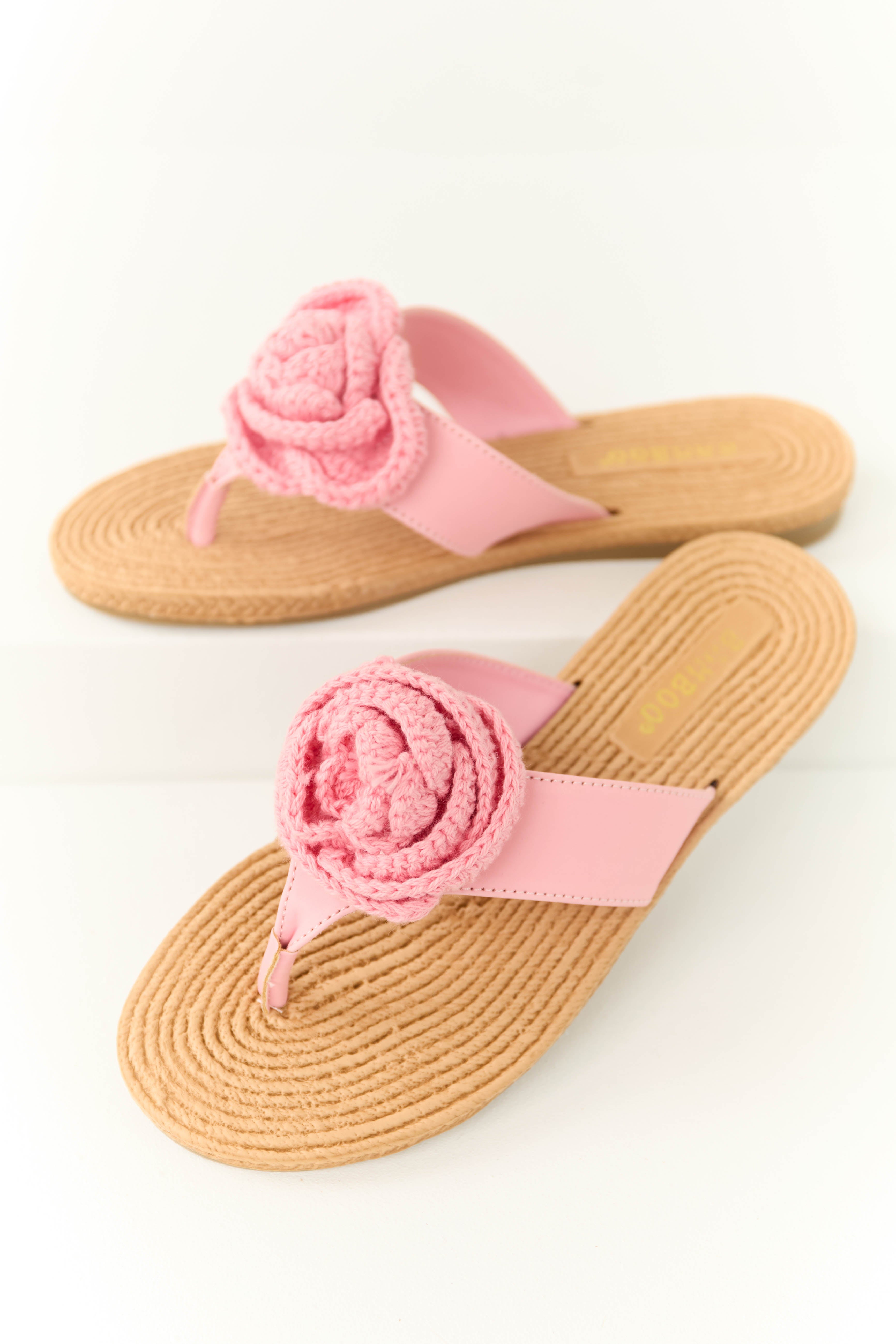 Baby Pink Open Toed Crochet Flower Woven Sandals