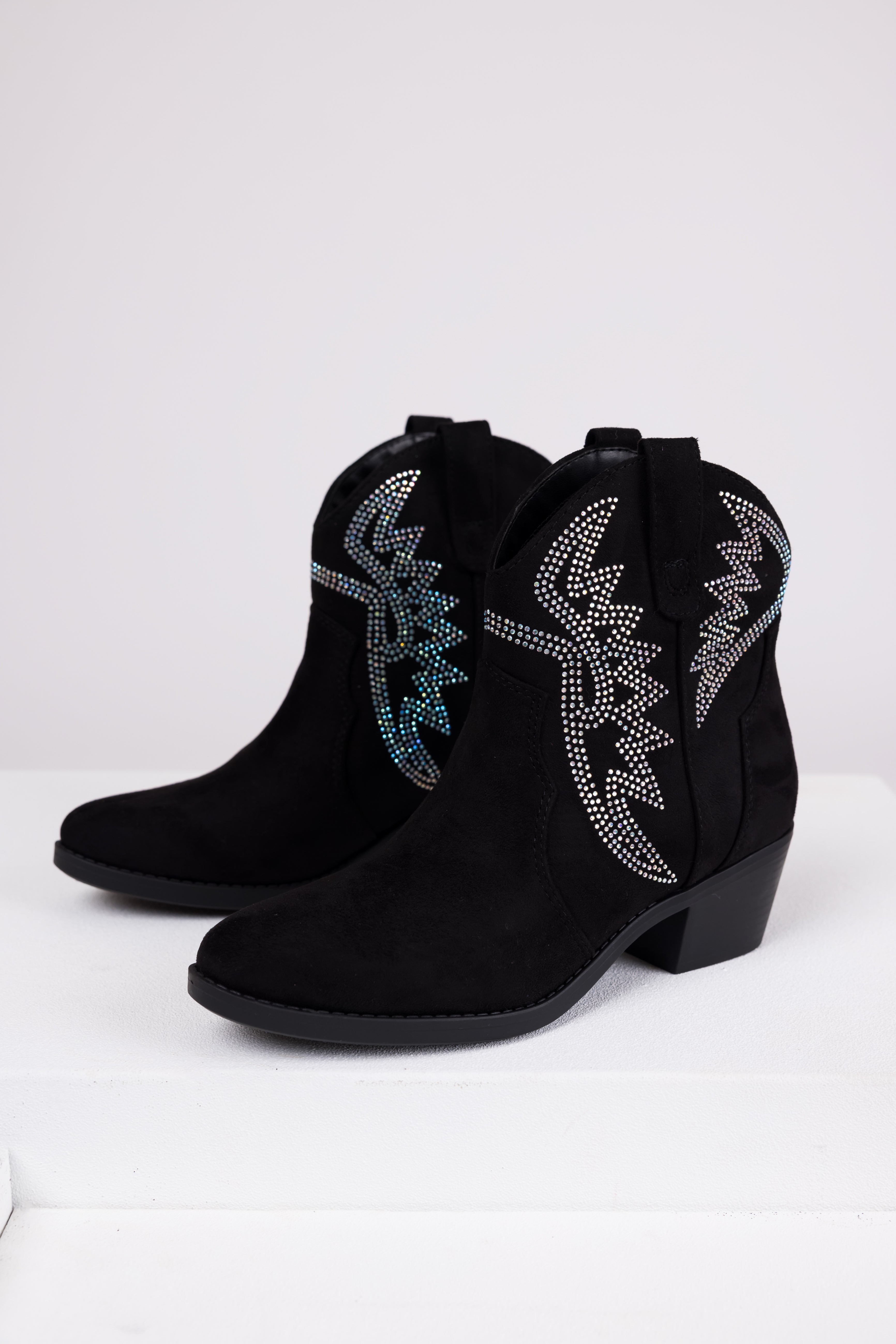 Black Rhinestone Detail Western Booties
