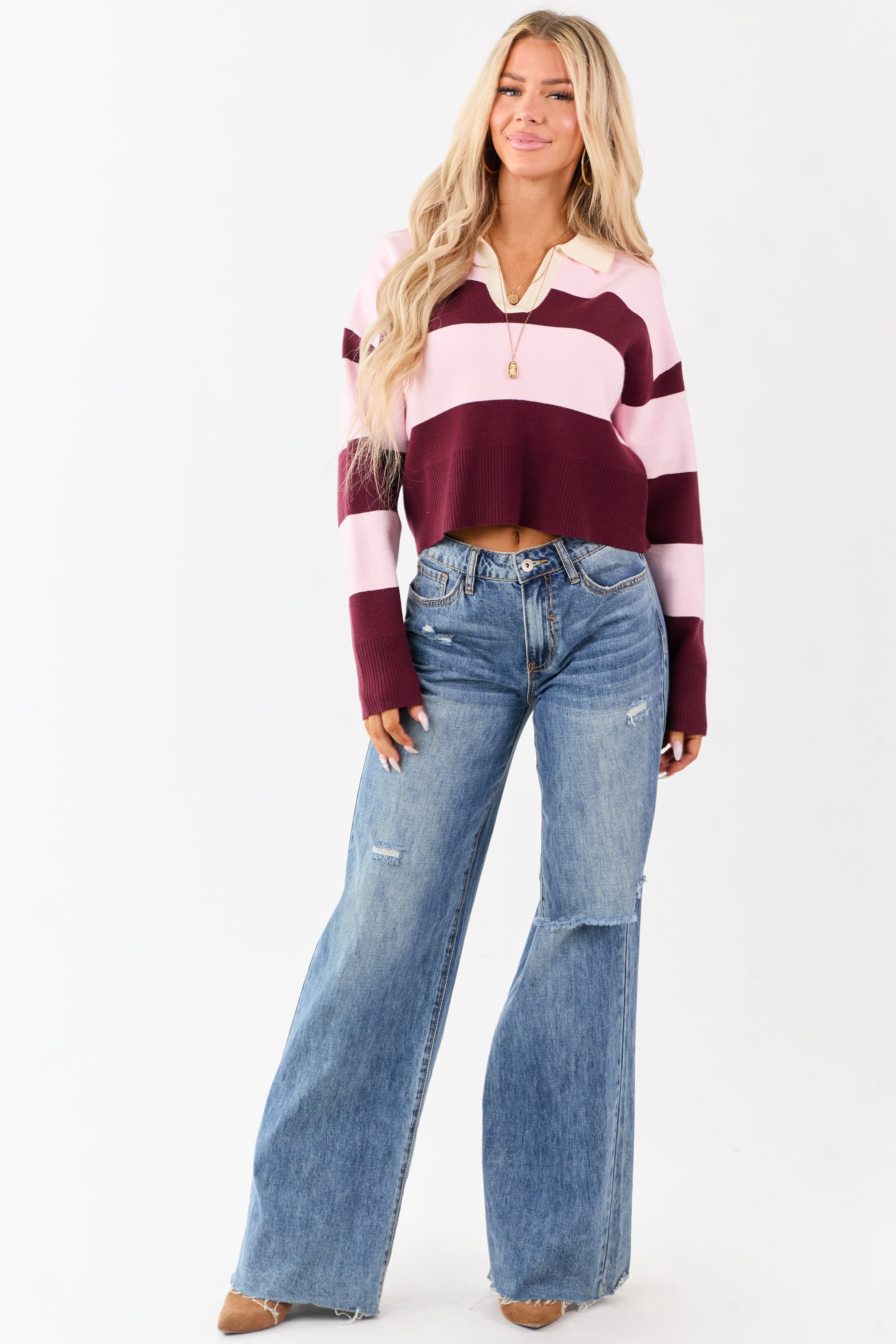 Mahogany Striped Rugby Style Sweater