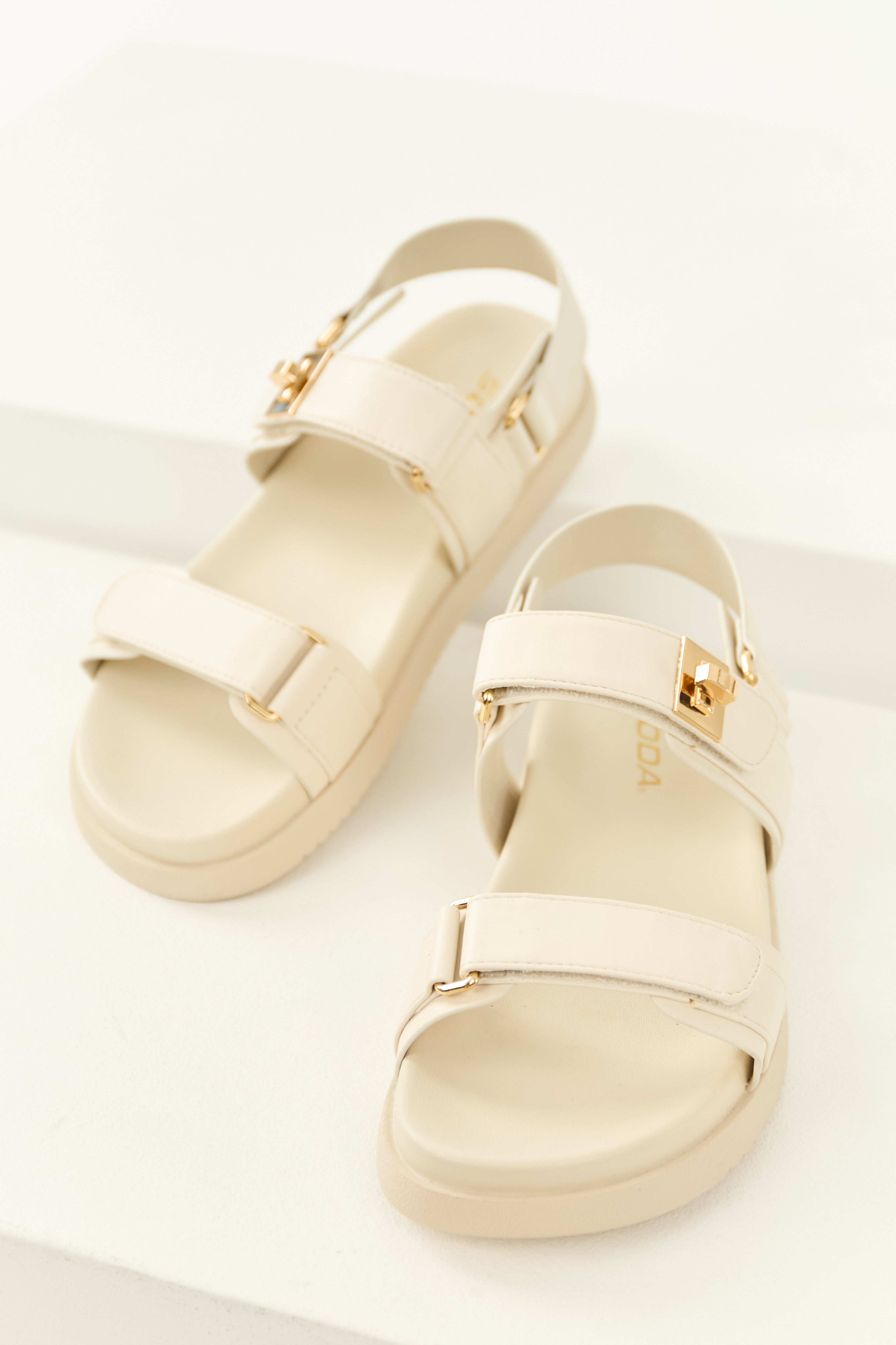Coconut Pleather Open Toed Velcro Strap Sandals