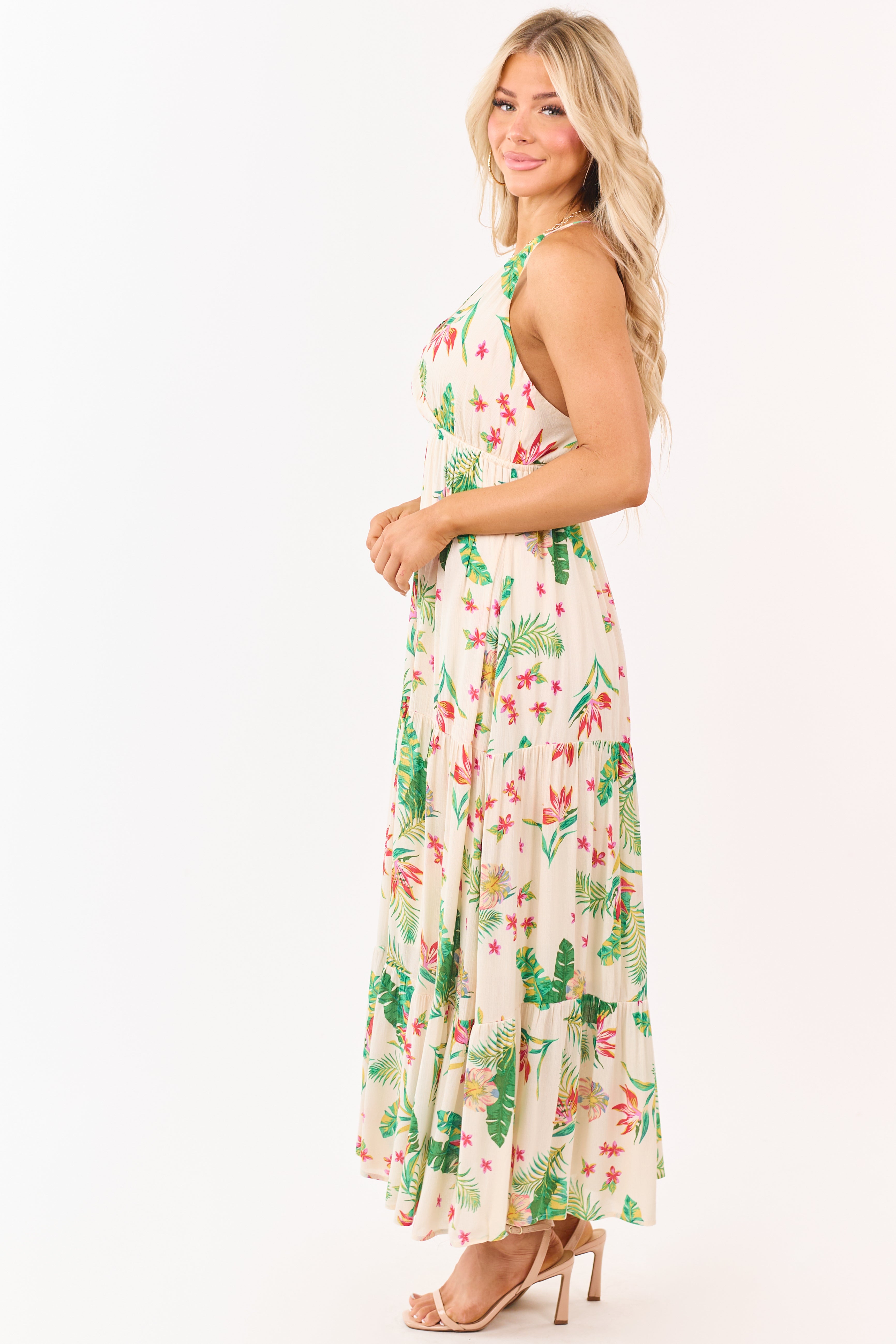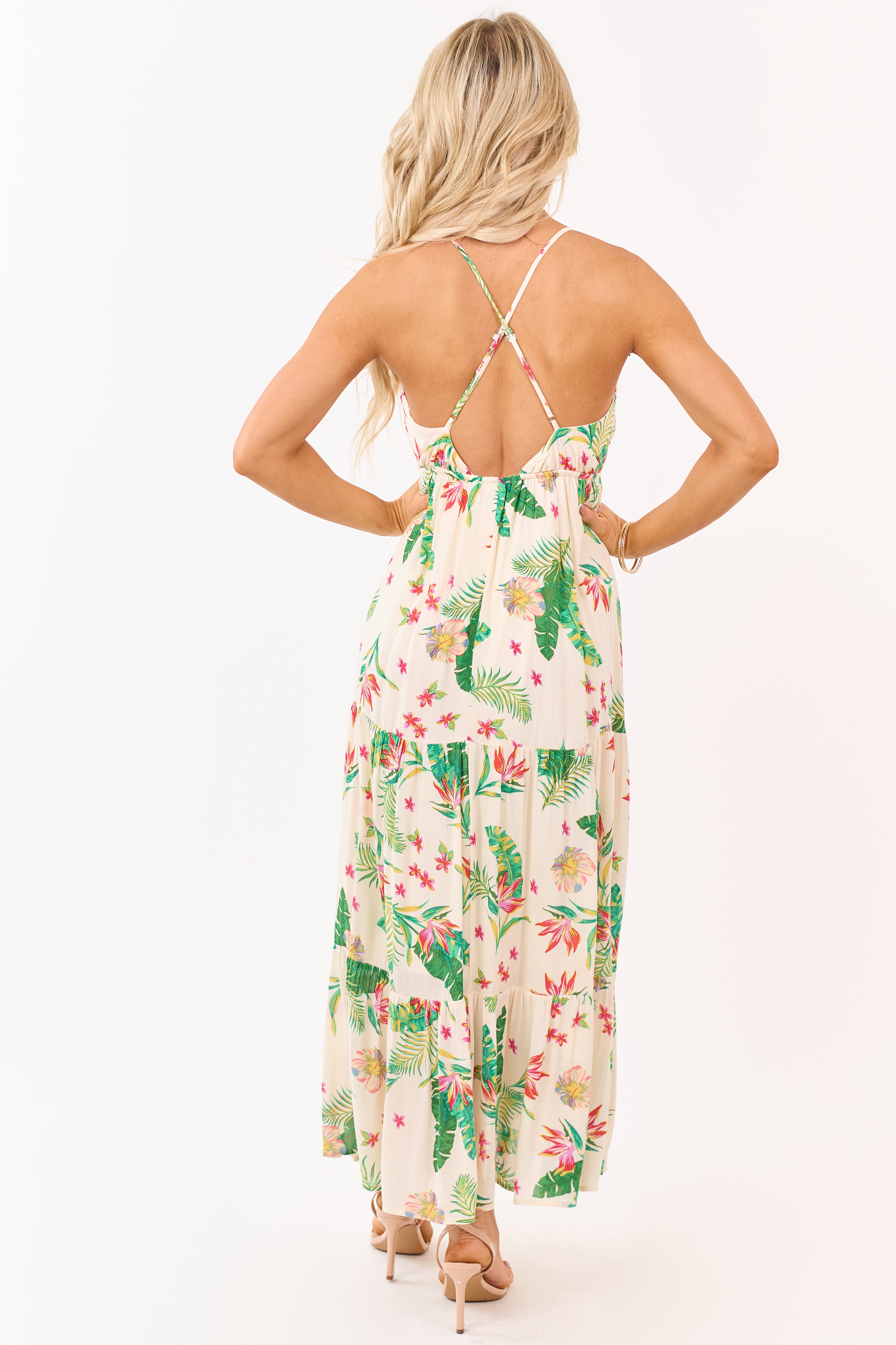 - This vibrant tiered maxi dress has a breezy silhouette and a stylish criss-cross back design