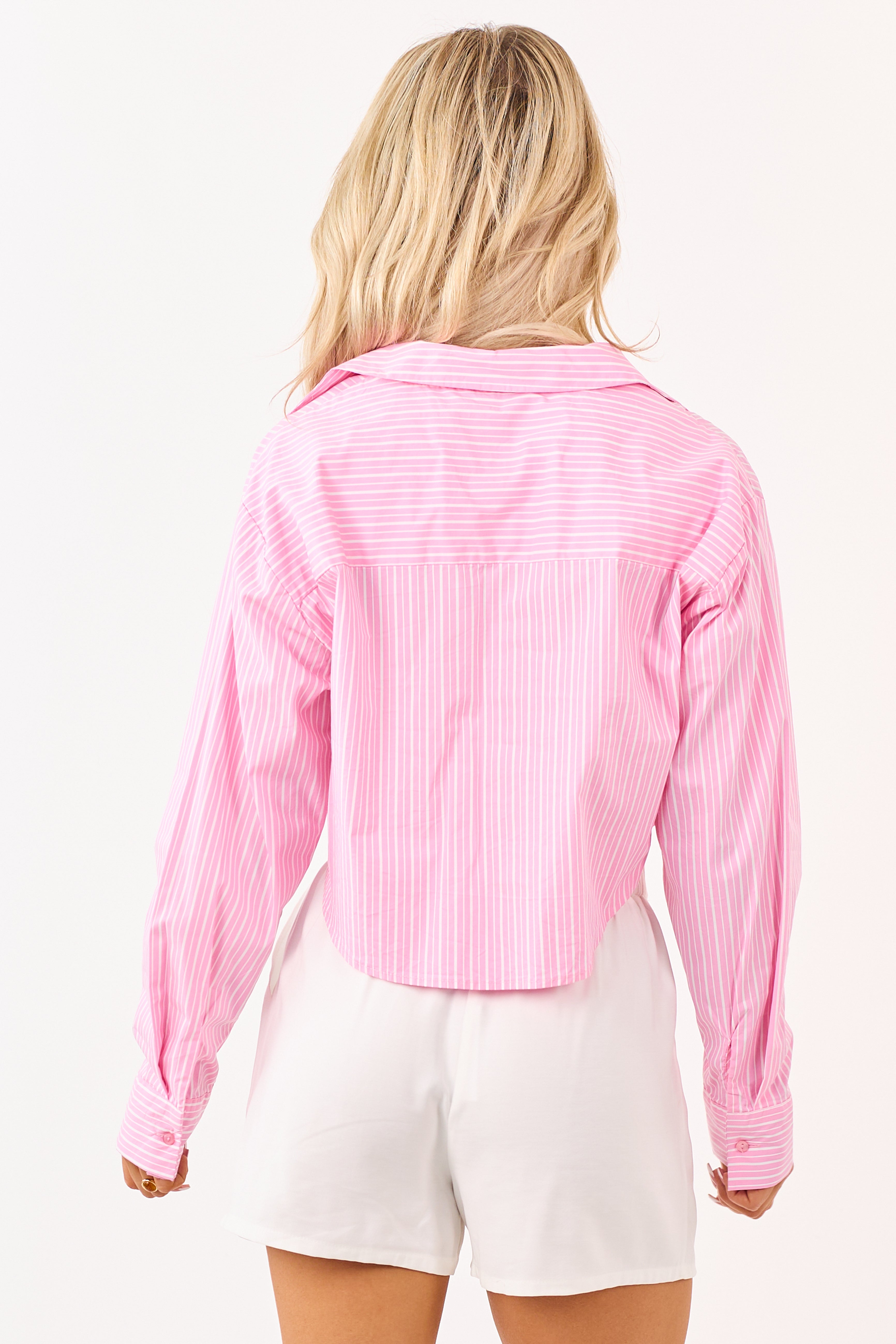 - Designed with a boxy fit that offers a relaxed shape with crisp contrast pin stripes