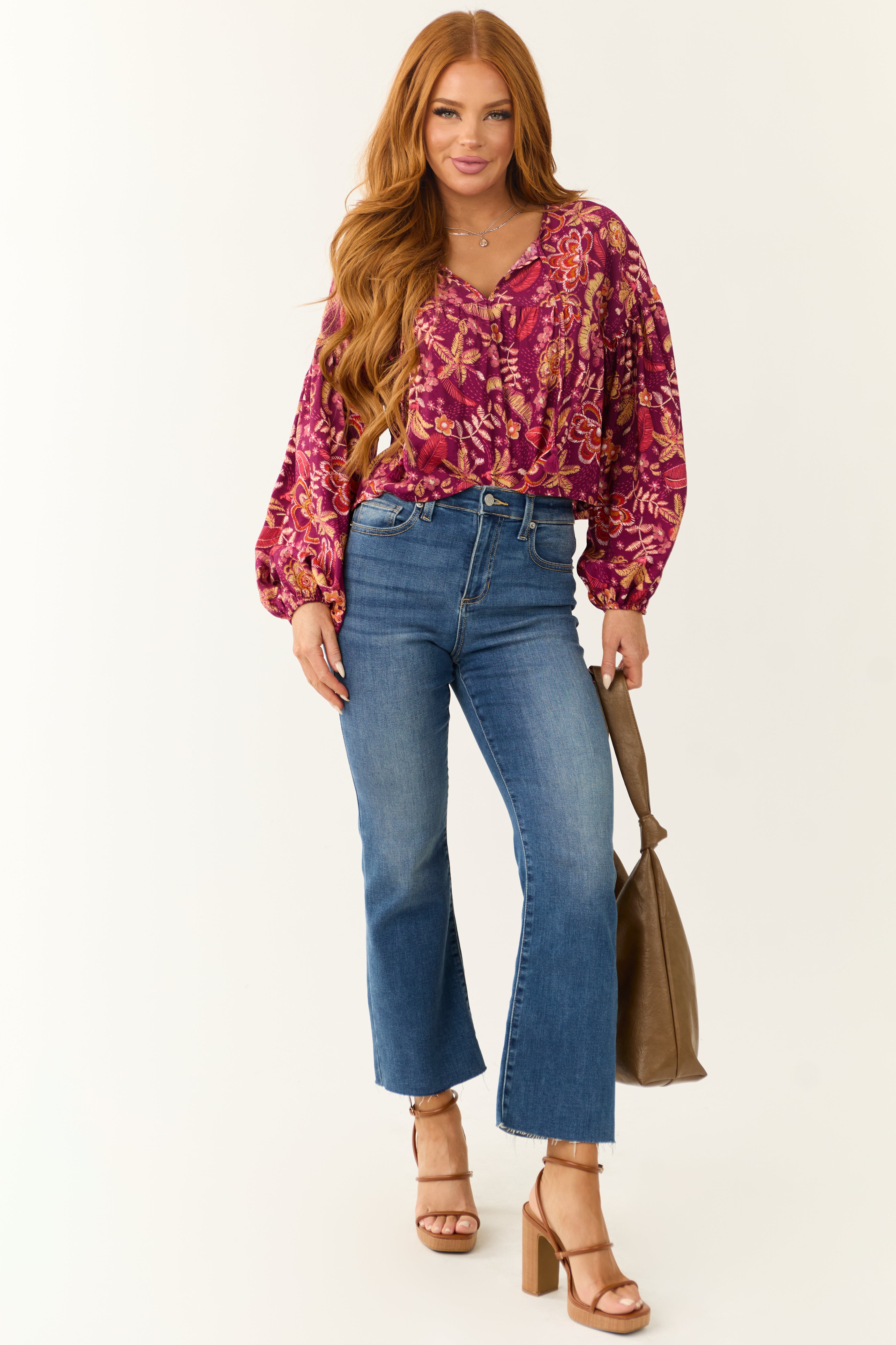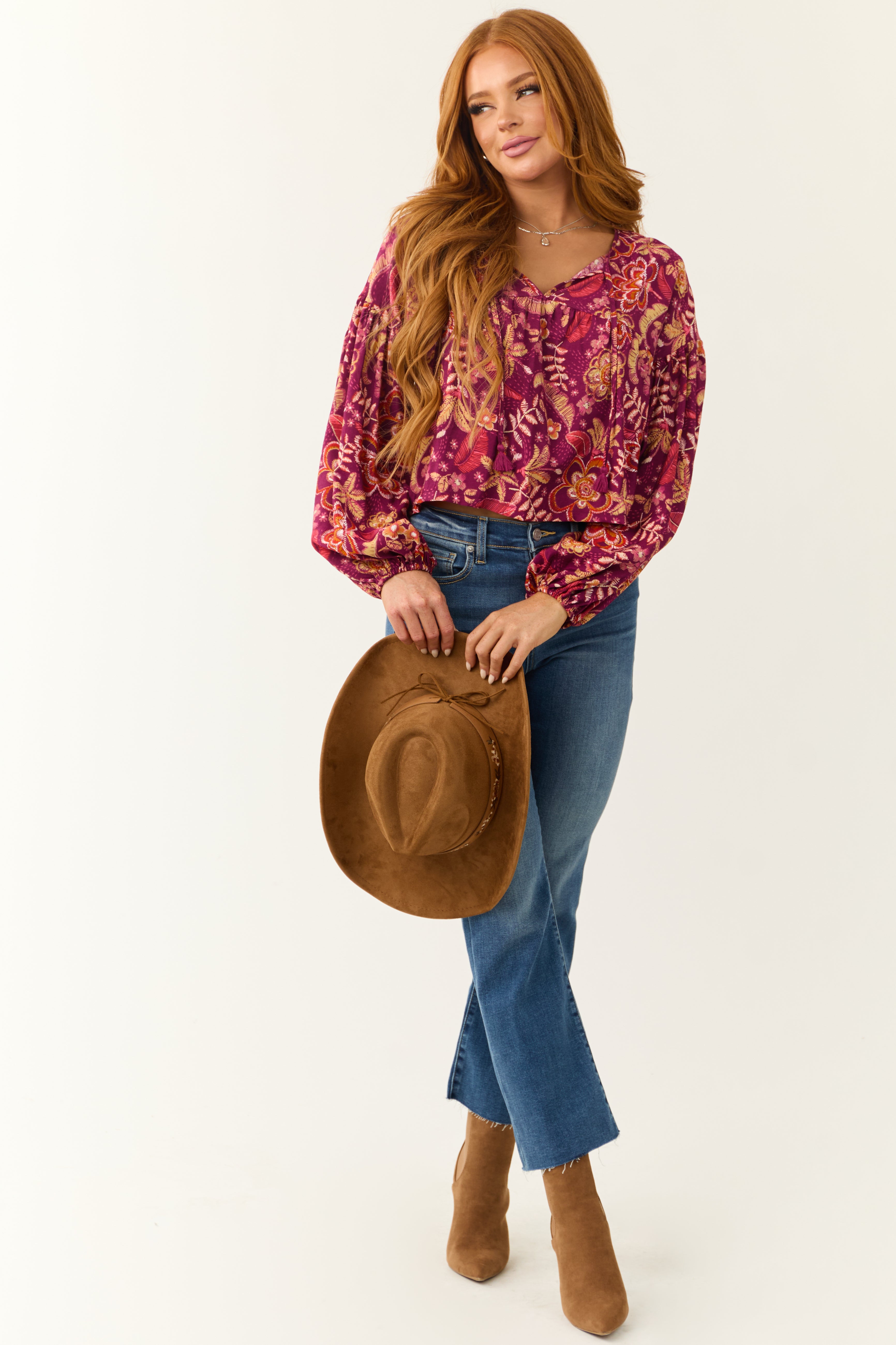 - Floral print in shades of Straw. Burnt Orange. Crimson. Marsala. and Coconut