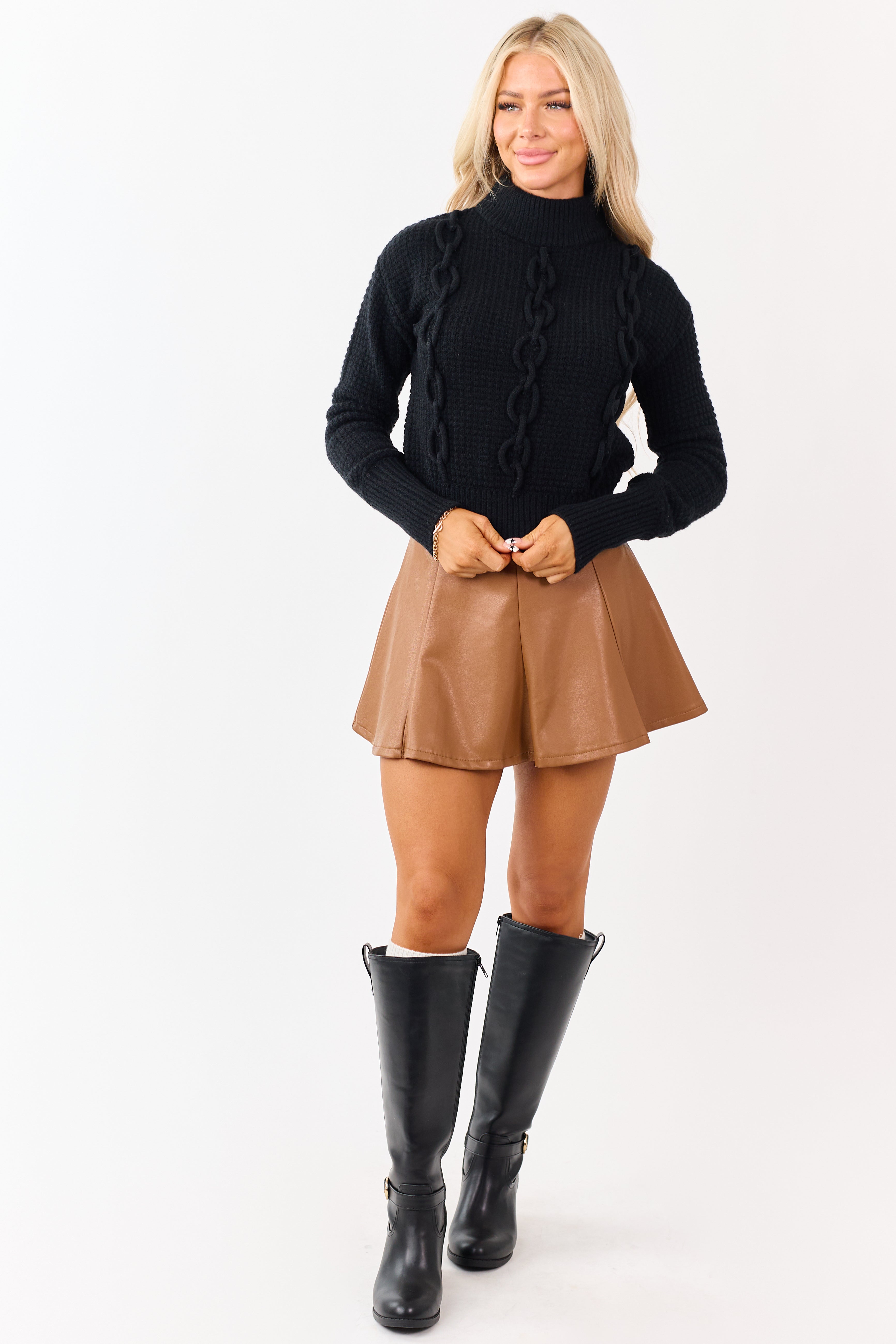 - A statement in texture and attitude. this mock neck sweater blends soft waffle knit comfort with striking chain accents