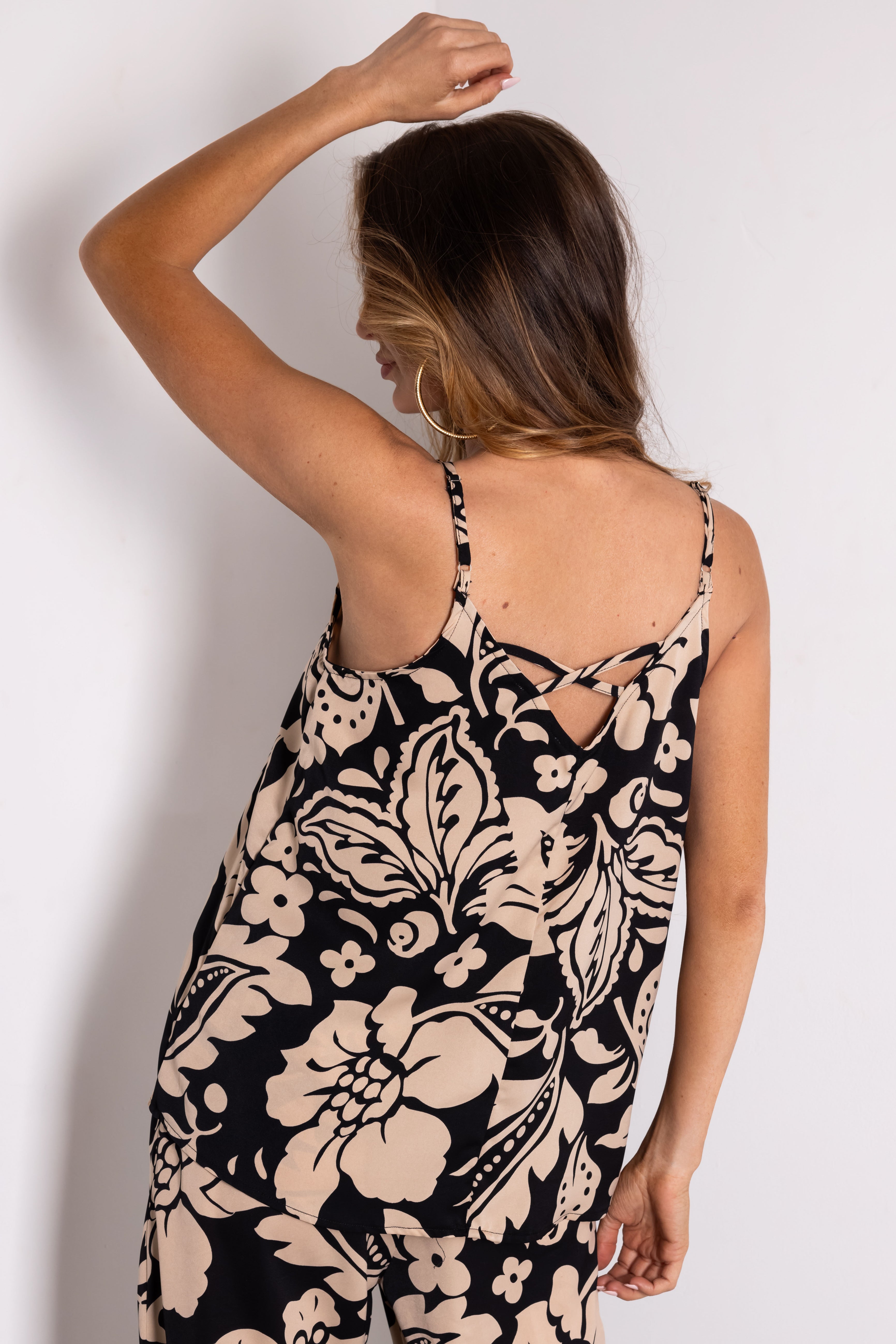 - Pair with Black and Beige Floral Print Wide Leg Pants