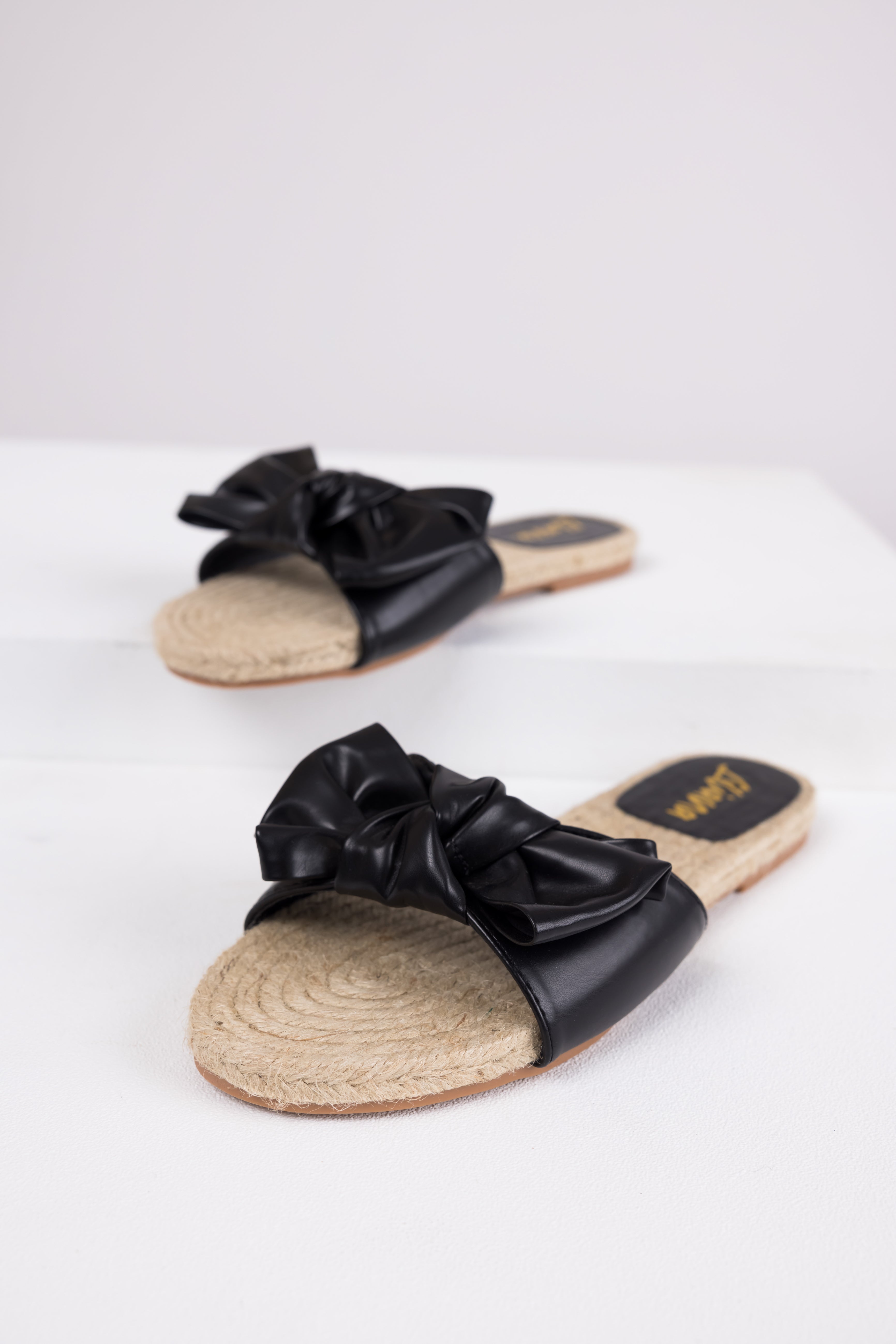 Black Bow Strap Flat Espadrille Sandals