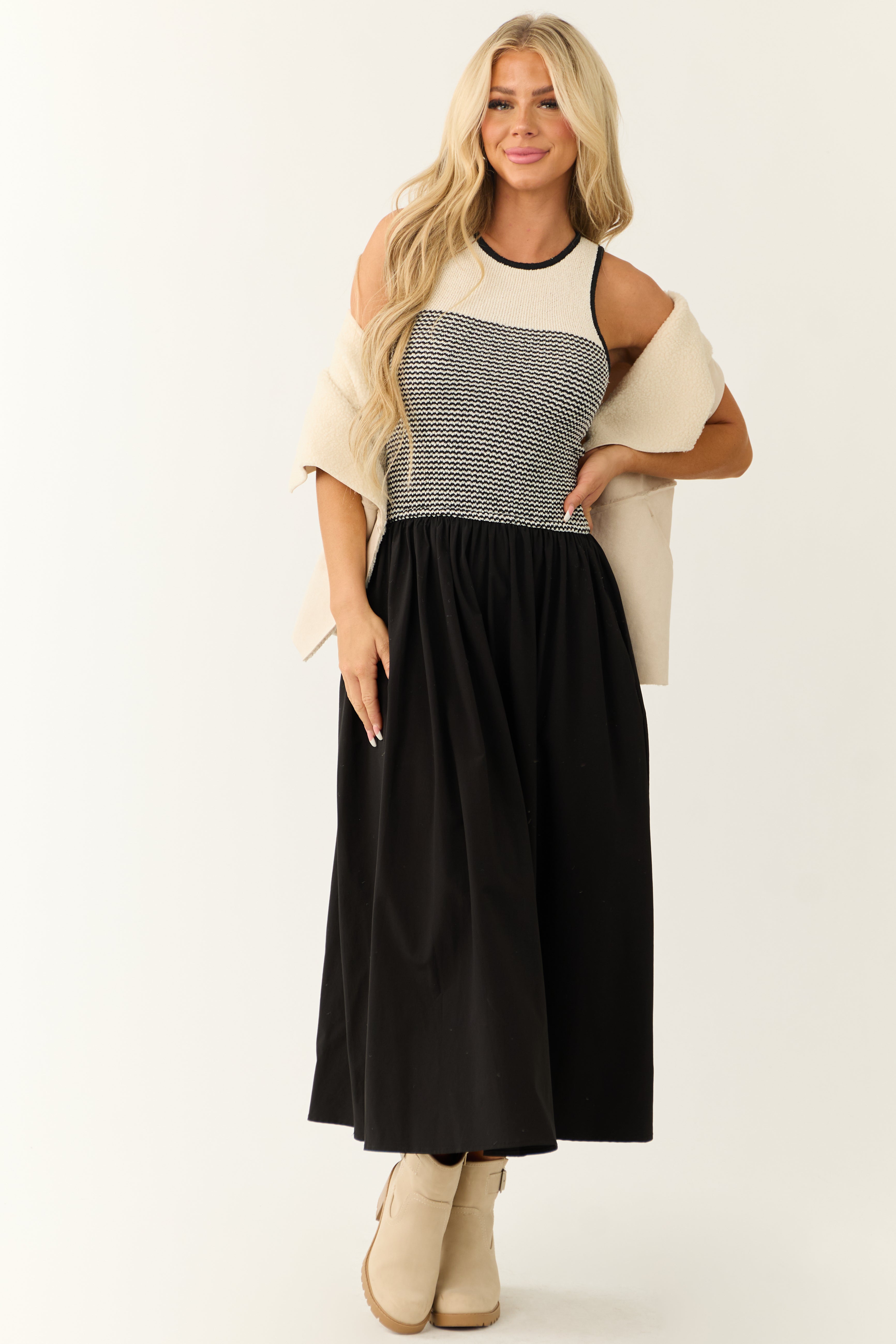 - Stretchy textured knit torso