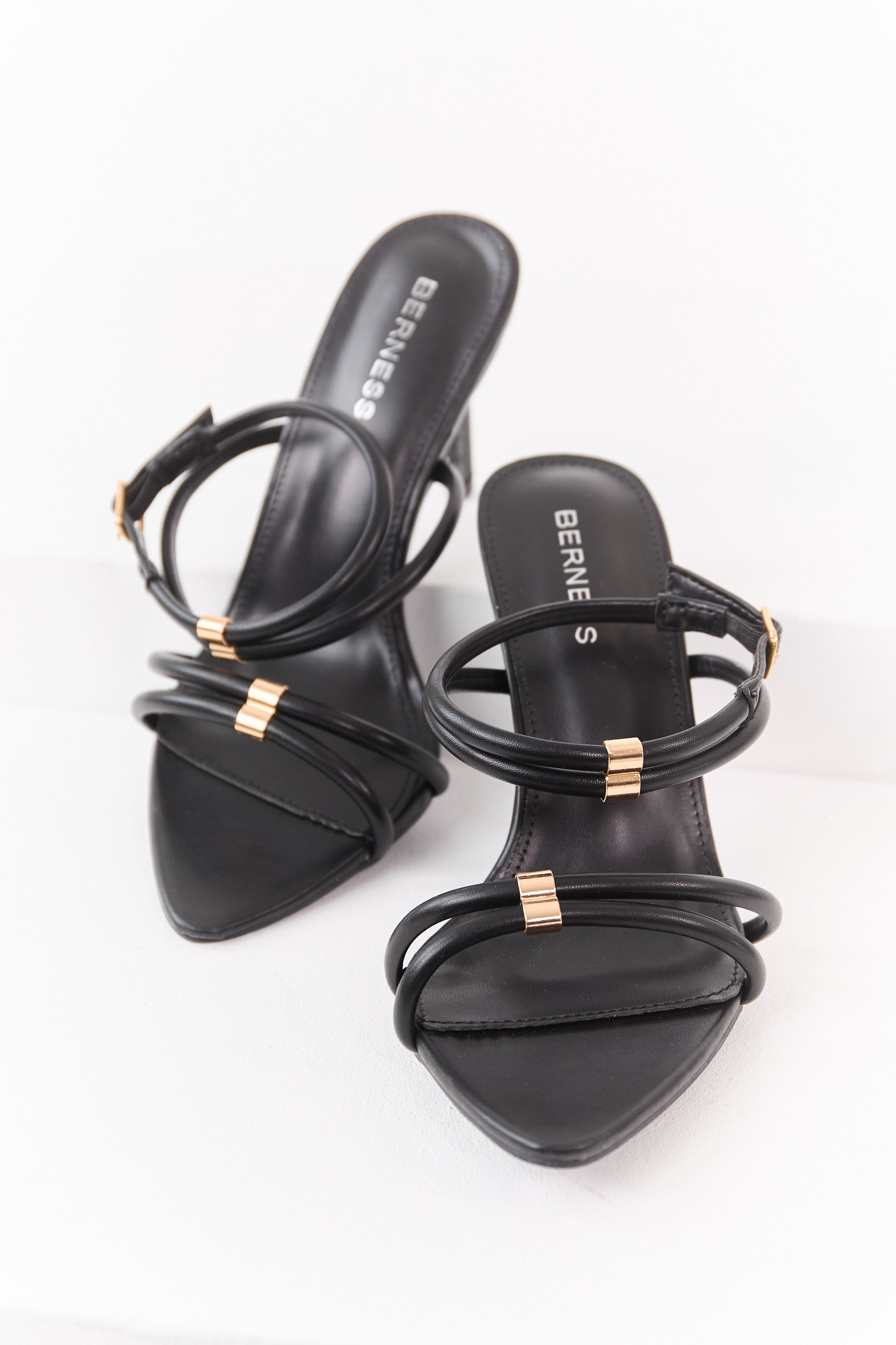 Black Faux Leather Strappy Pointed Toe Heels