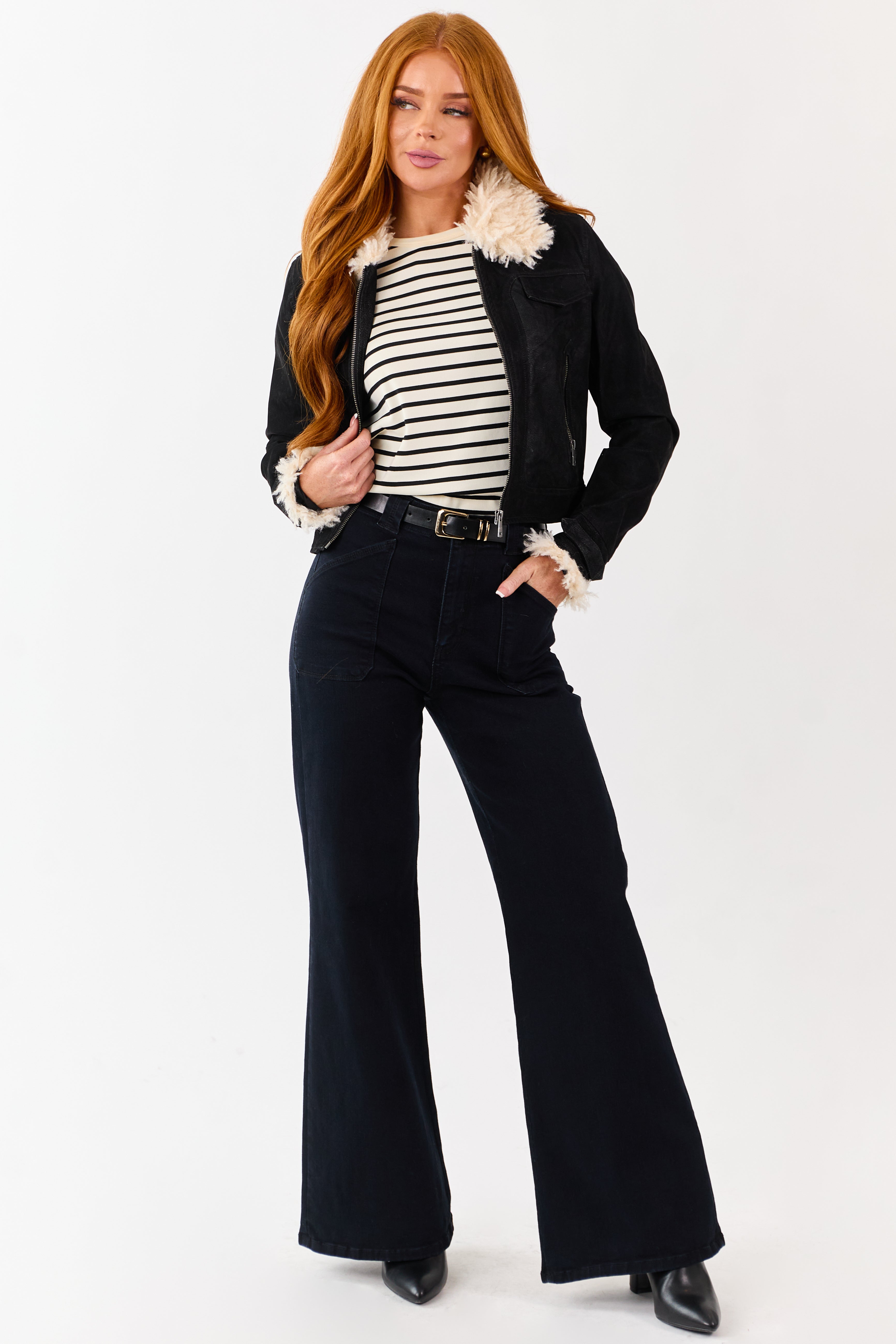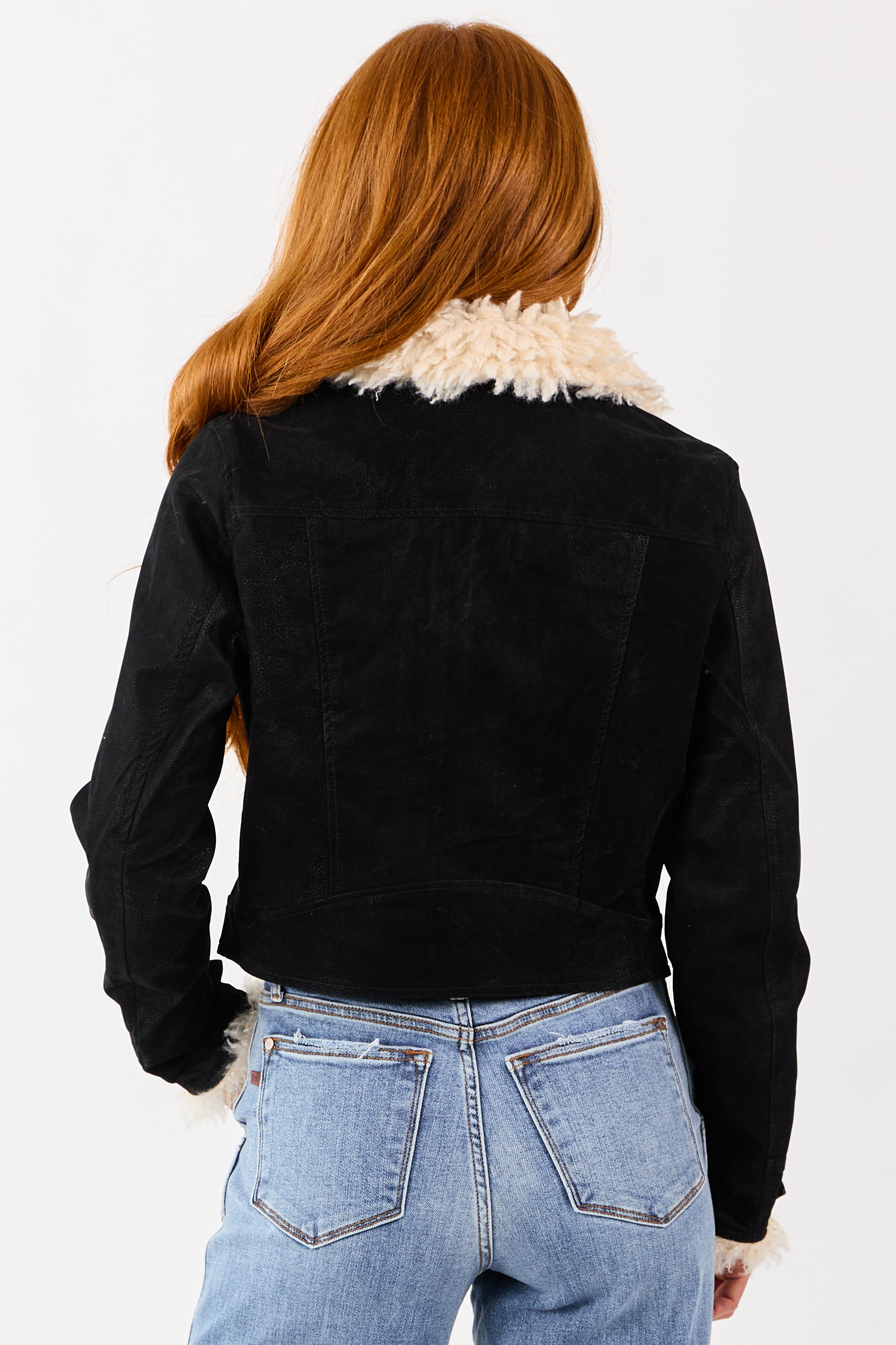 - Crafted with textured faux leather exterior and fully lined with plush shearling this aviator style crop jacket is your new stylish layering piece.