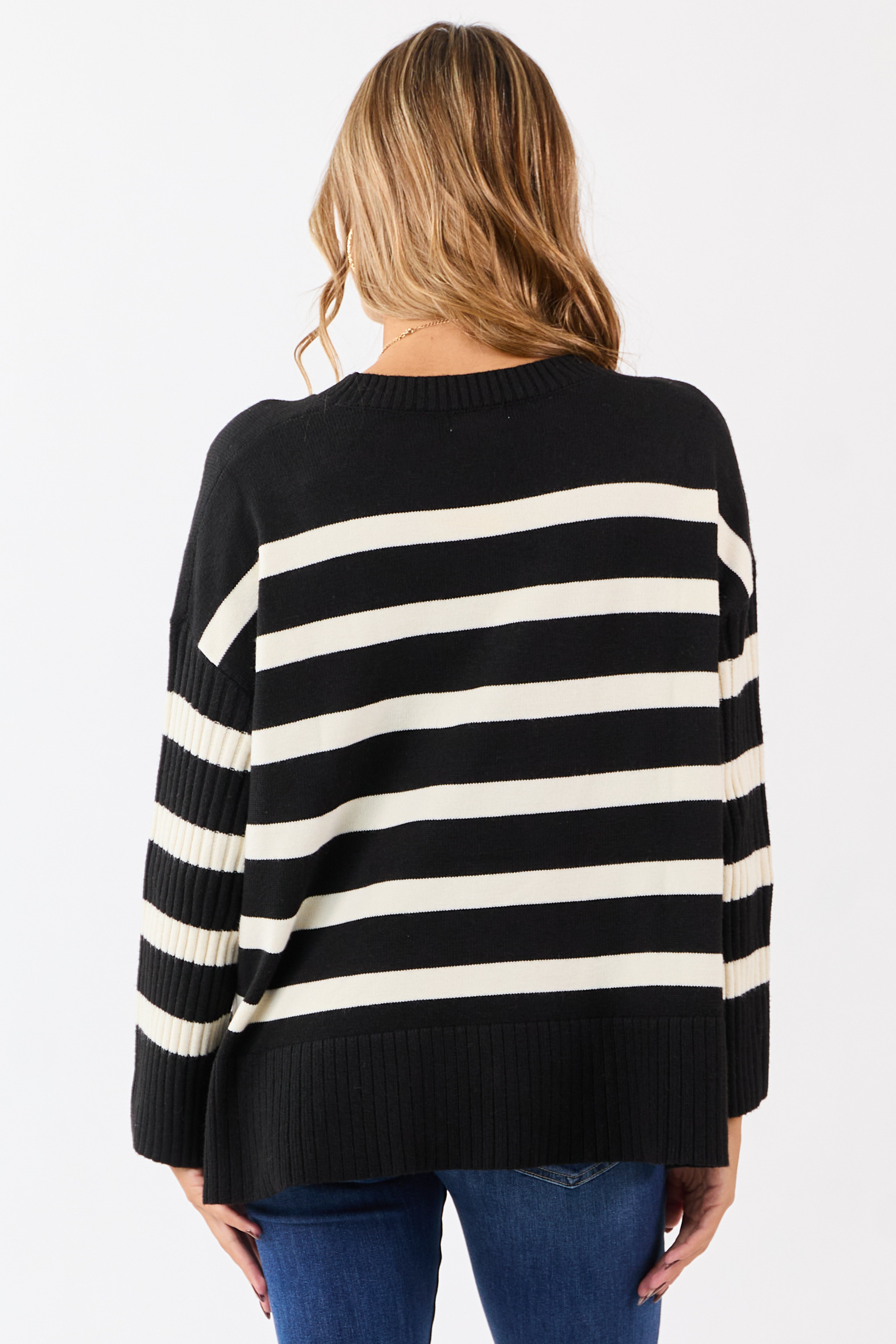 - This oversized knit has bold stripes and stylish ribbed sleeves for a stand-out cozy look.
