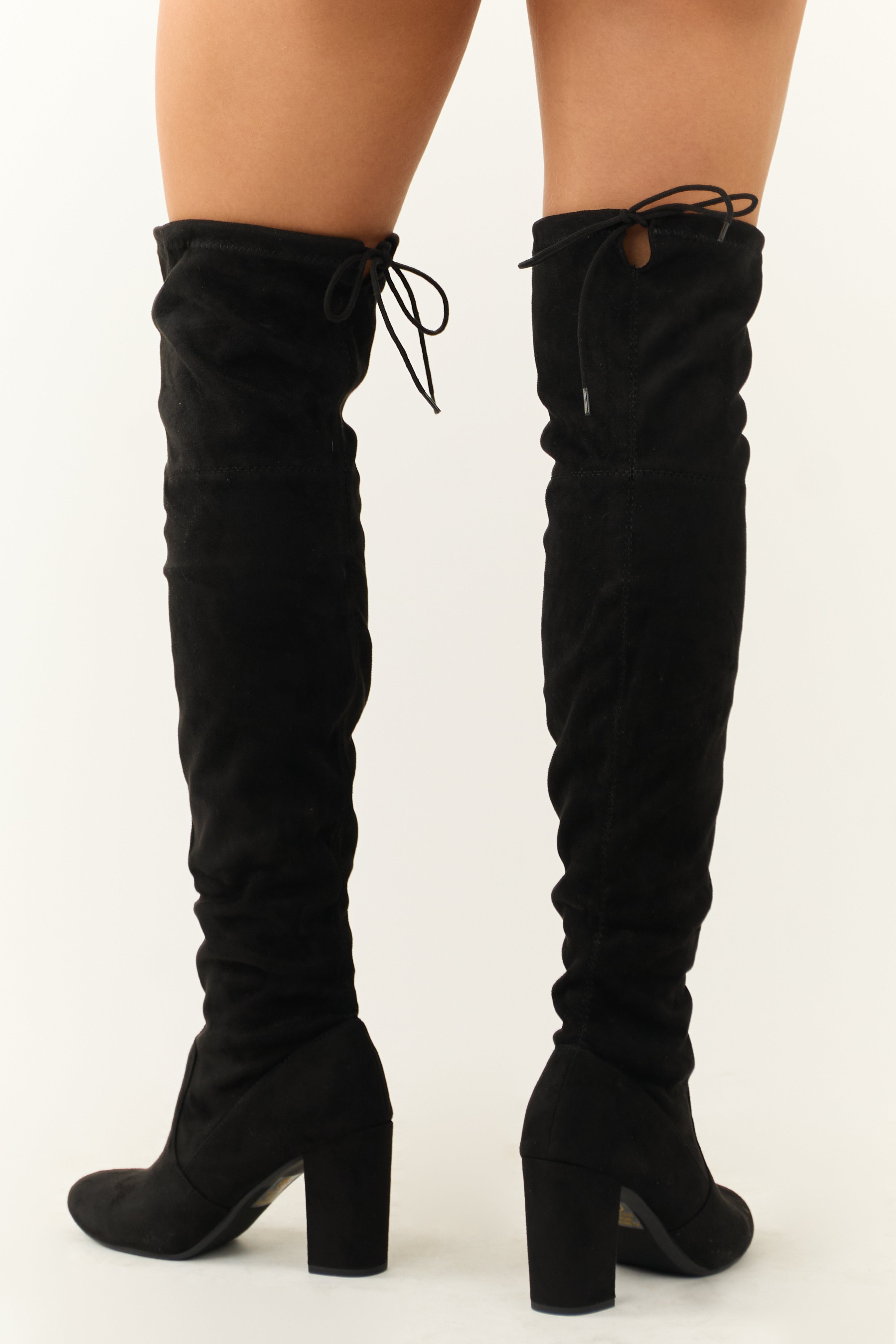 Black Over the Knee Microsuede Drawstring Boots