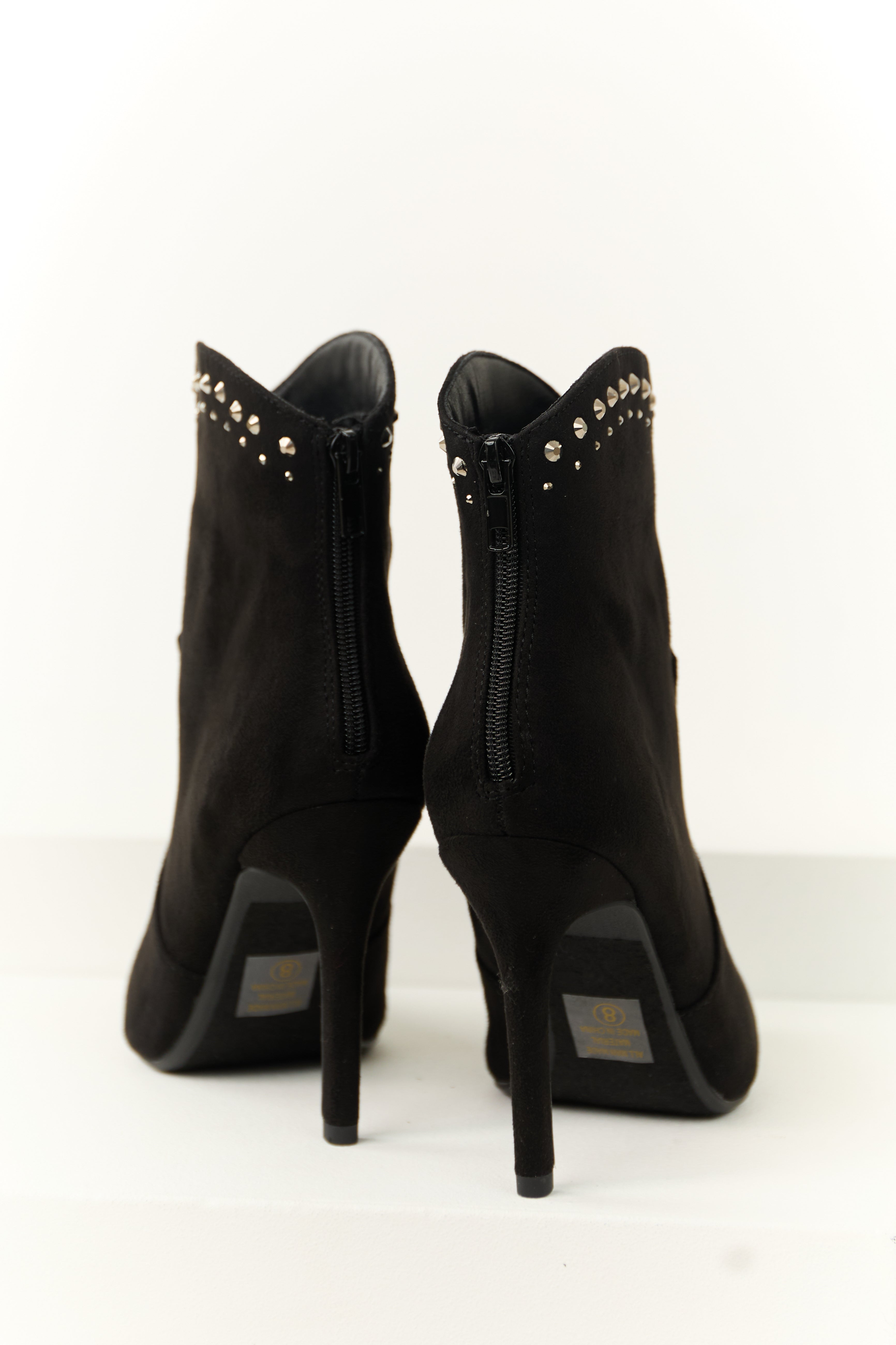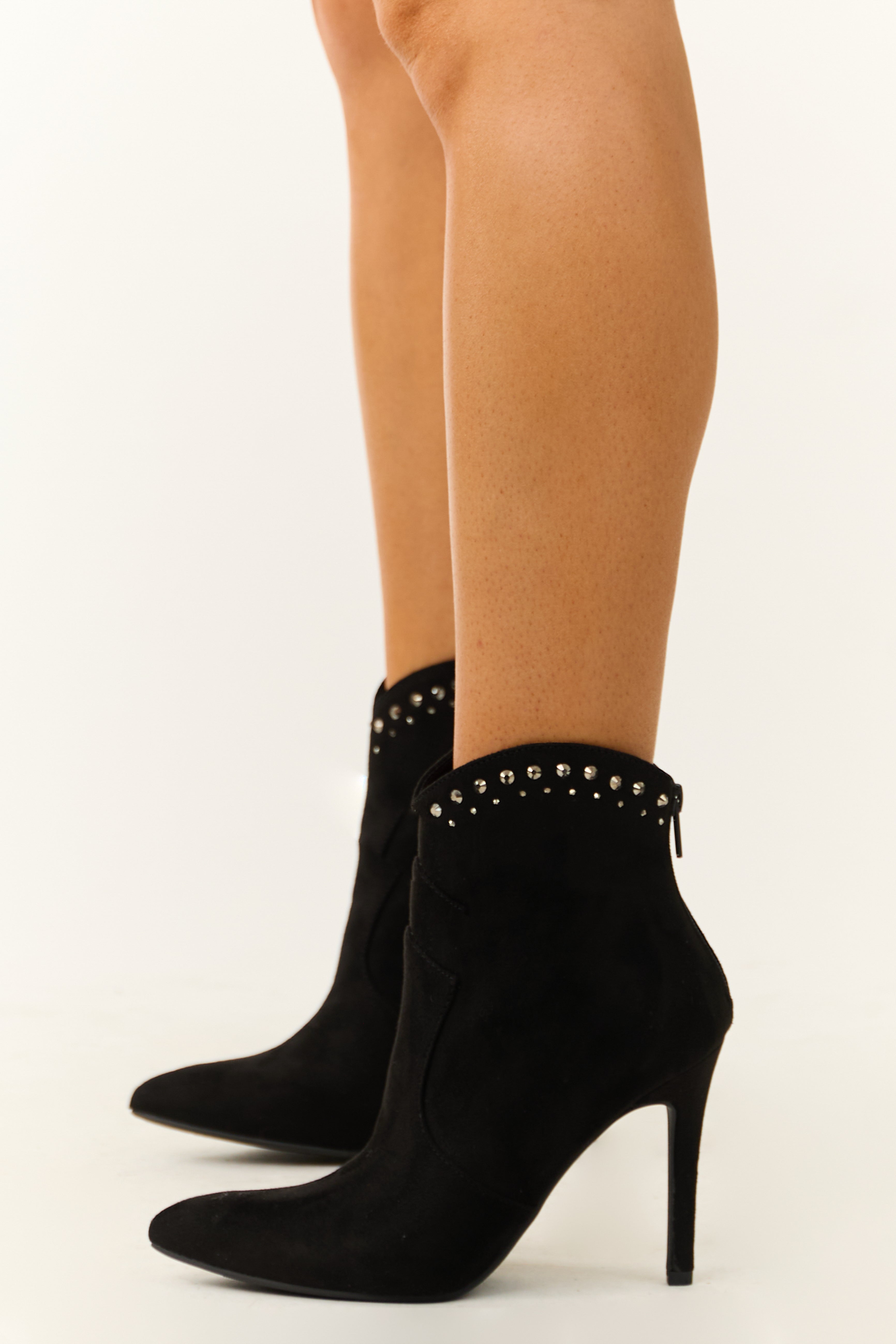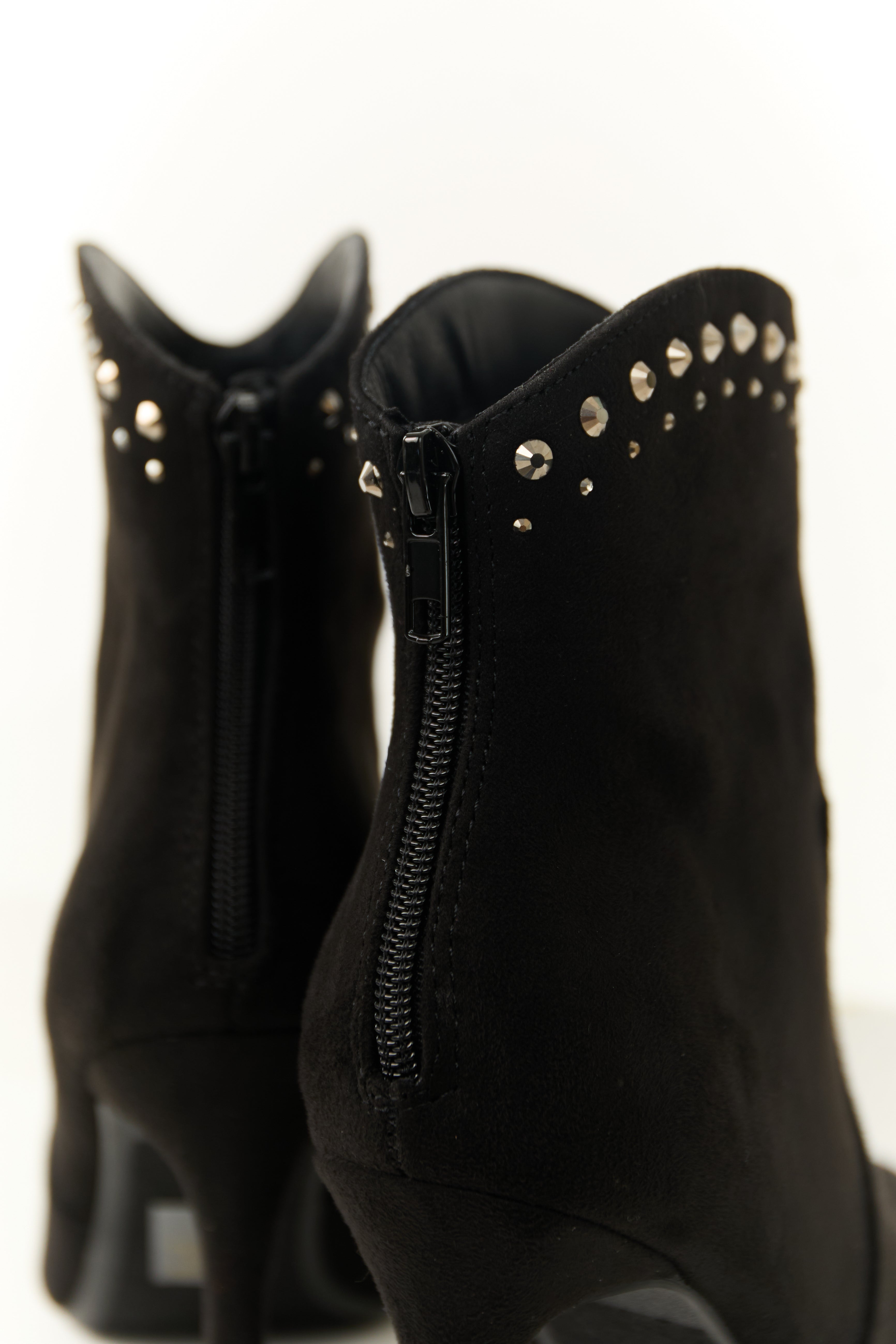 Black Rhinestone Detail High Heel Ankle Booties