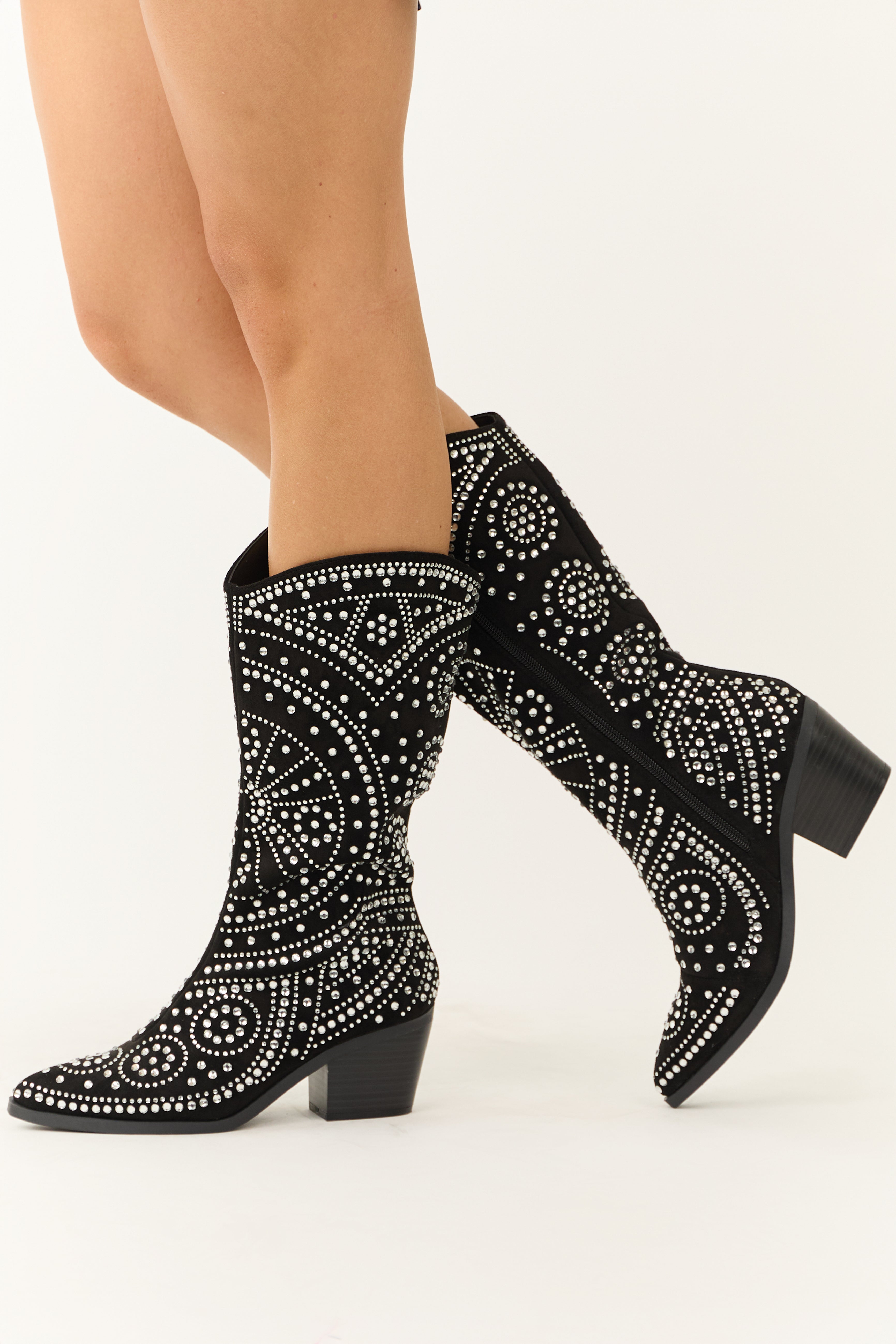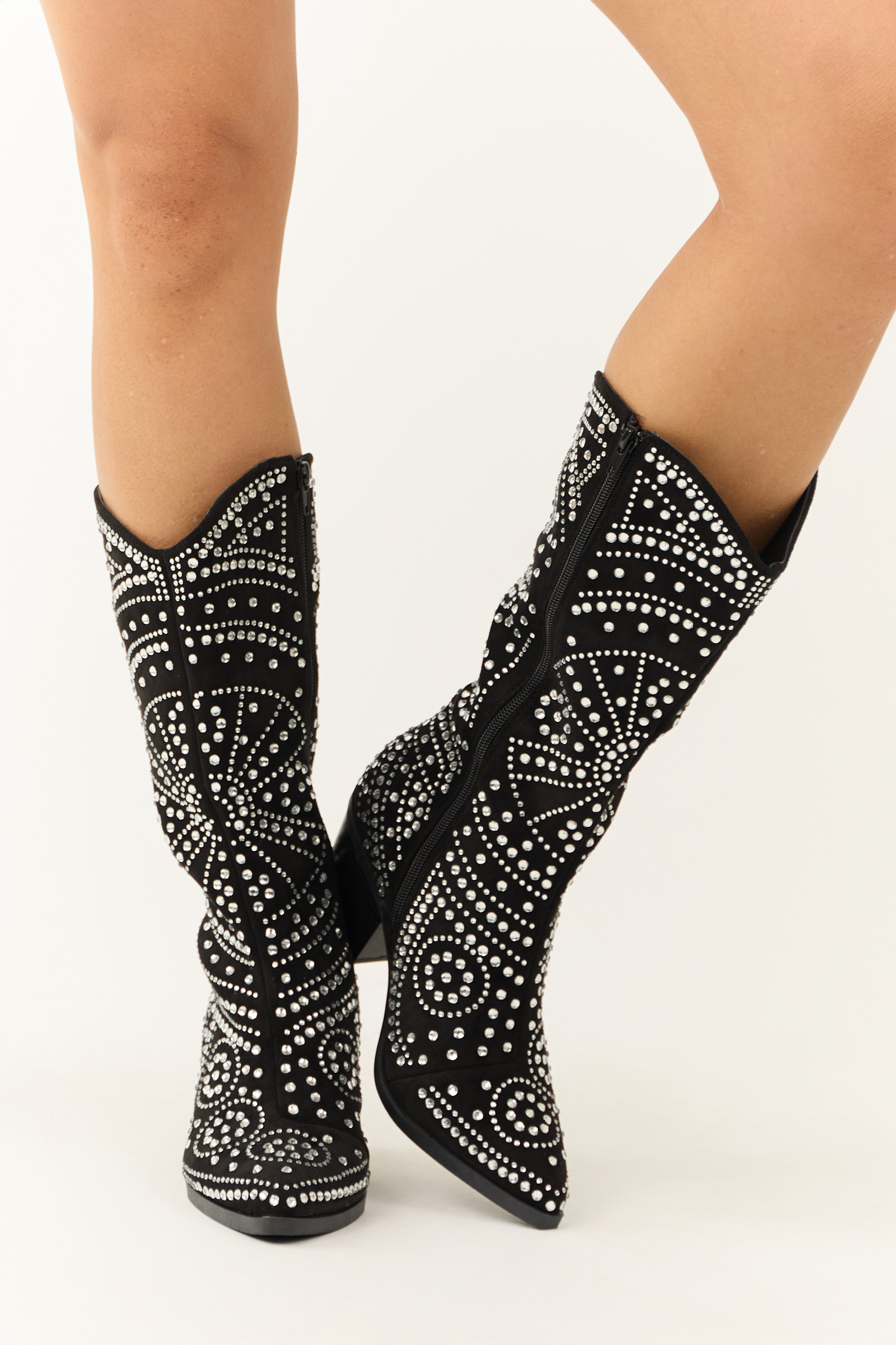 Black Rhinestone Studded Western Boots