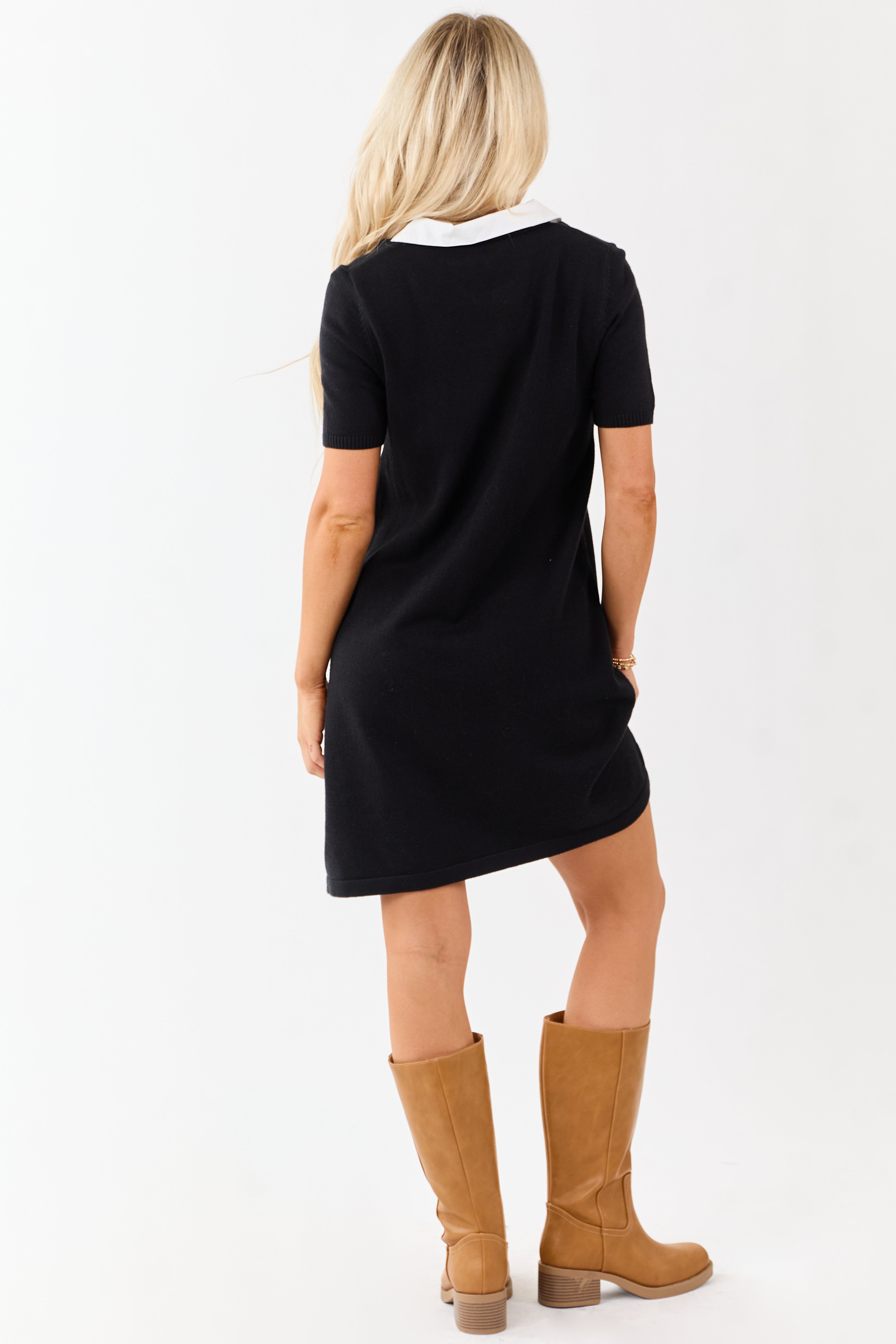 - A modern take on classic prep. this rib knit polo mini dress features a contrast collar. button details. and an easy shift silhouette.