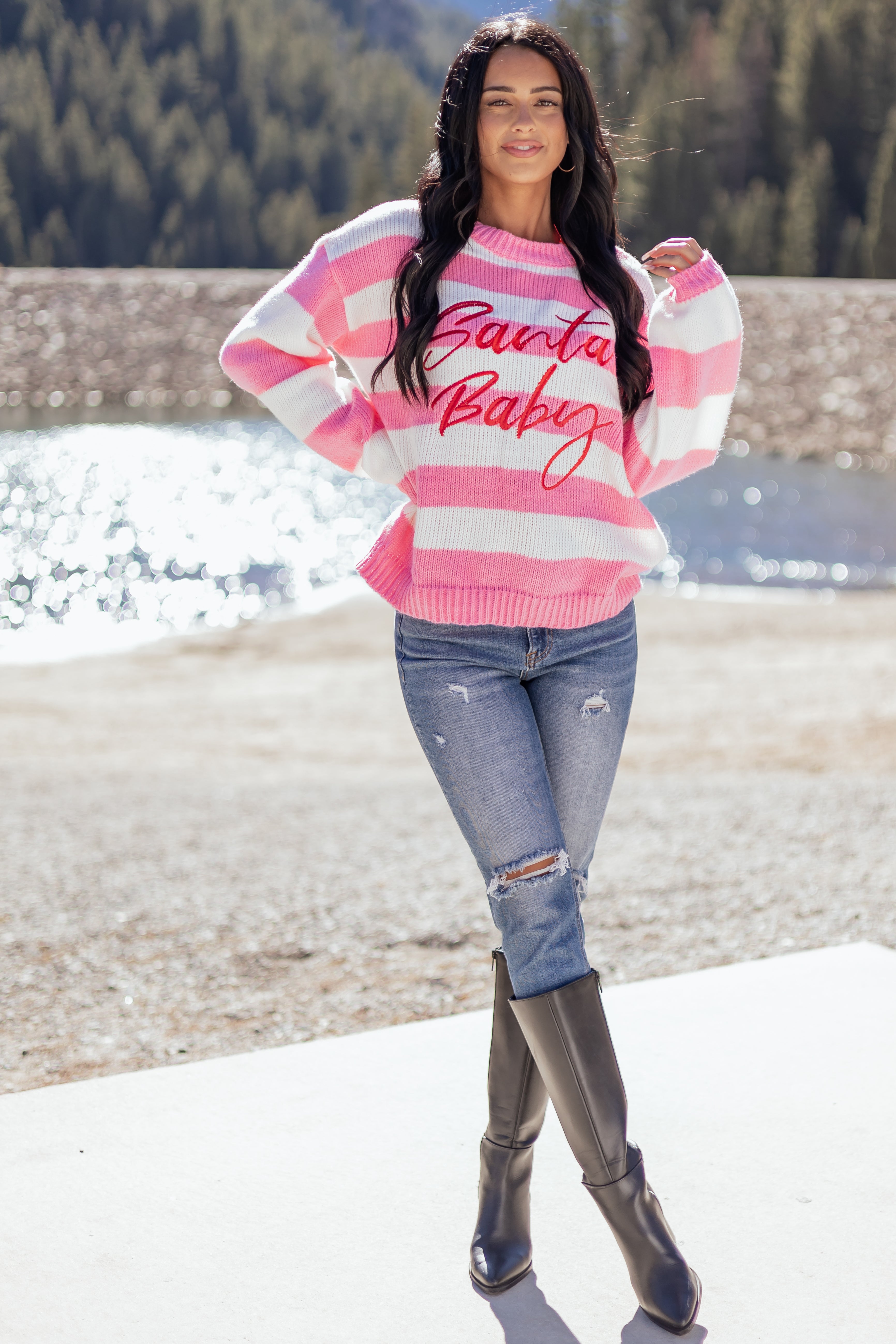 - Sweet. sassy. and Santa-approved. this relaxed fit sweater is cute enough for Christmas morning and cozy enough for every day.