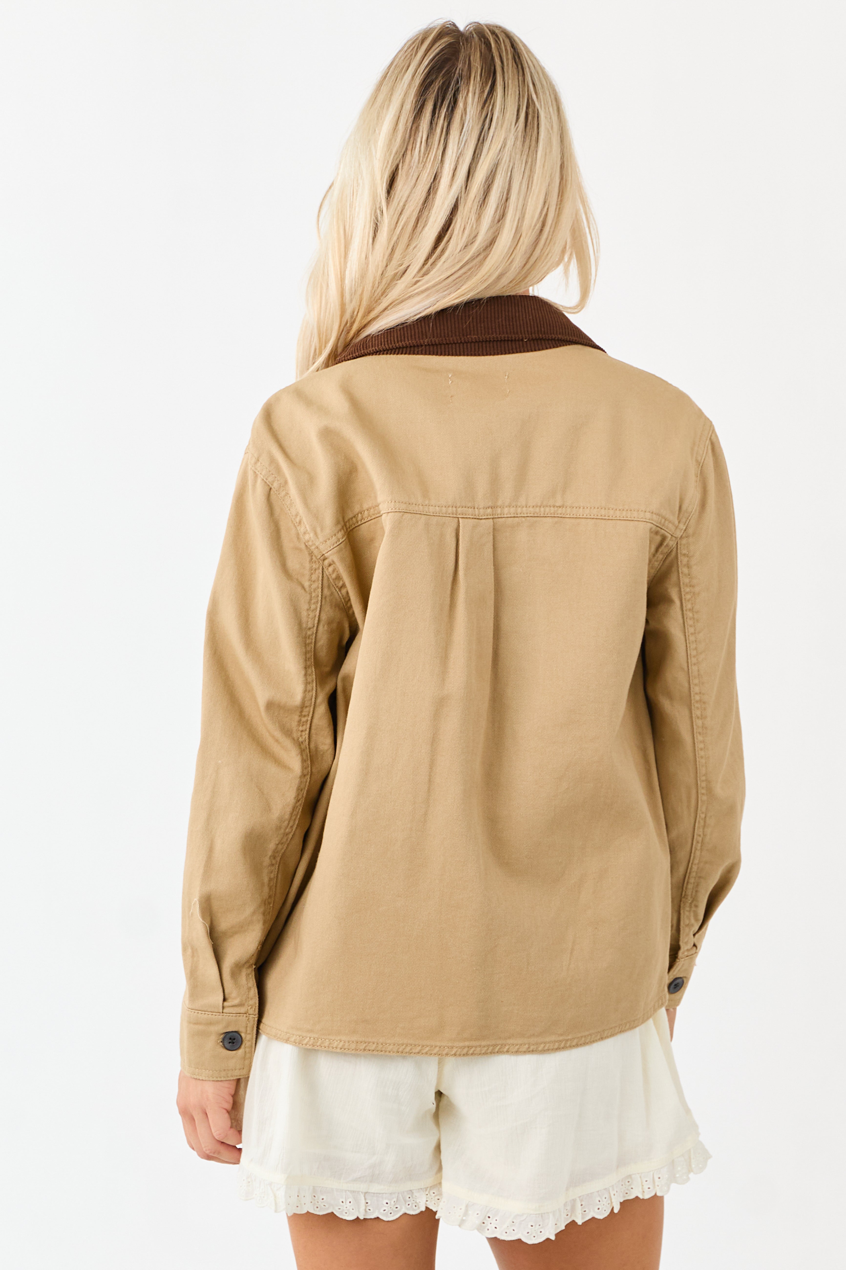 - Layer in style with a trendy barn jacket featuring a soft corduroy collar for a timeless. versatile look.