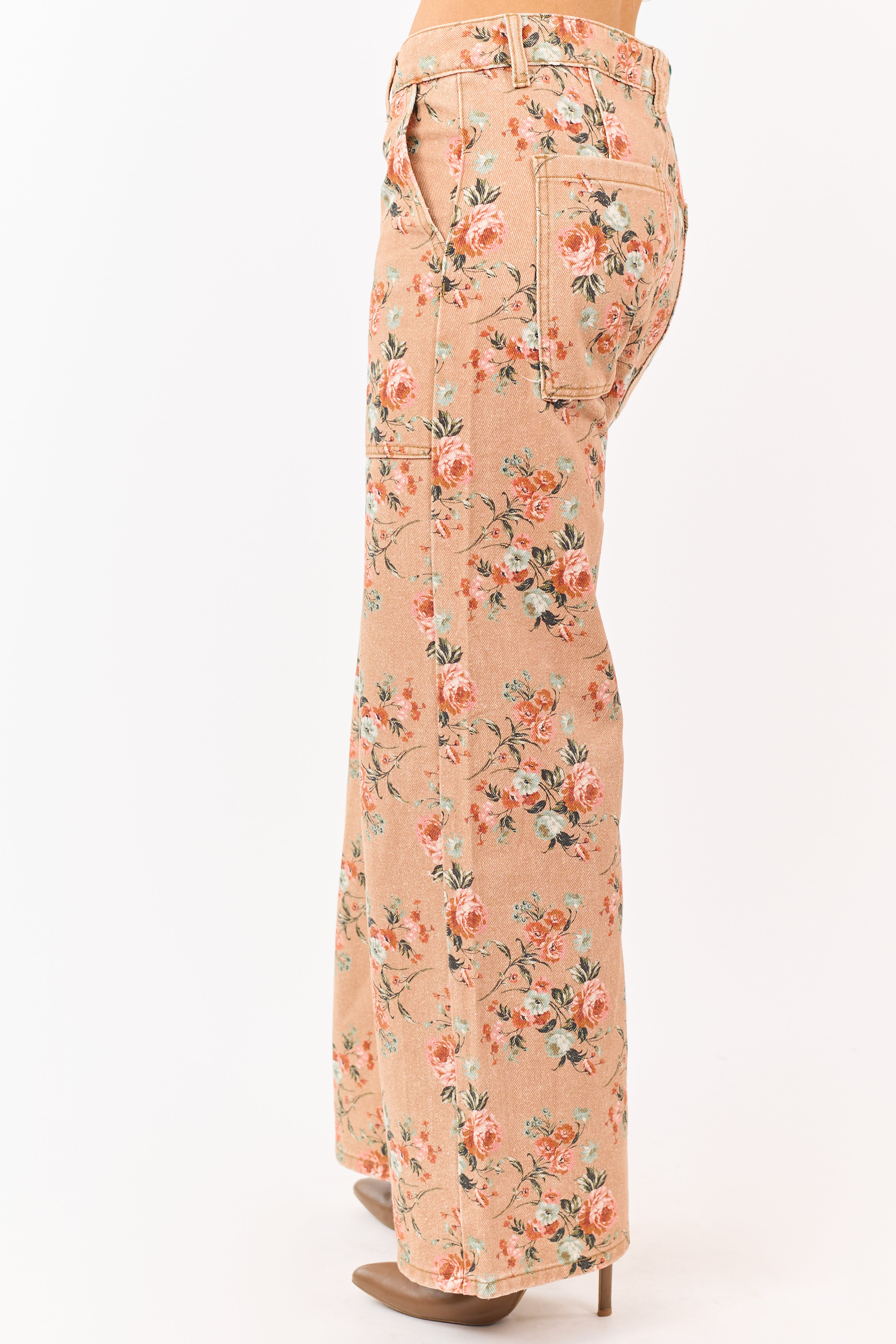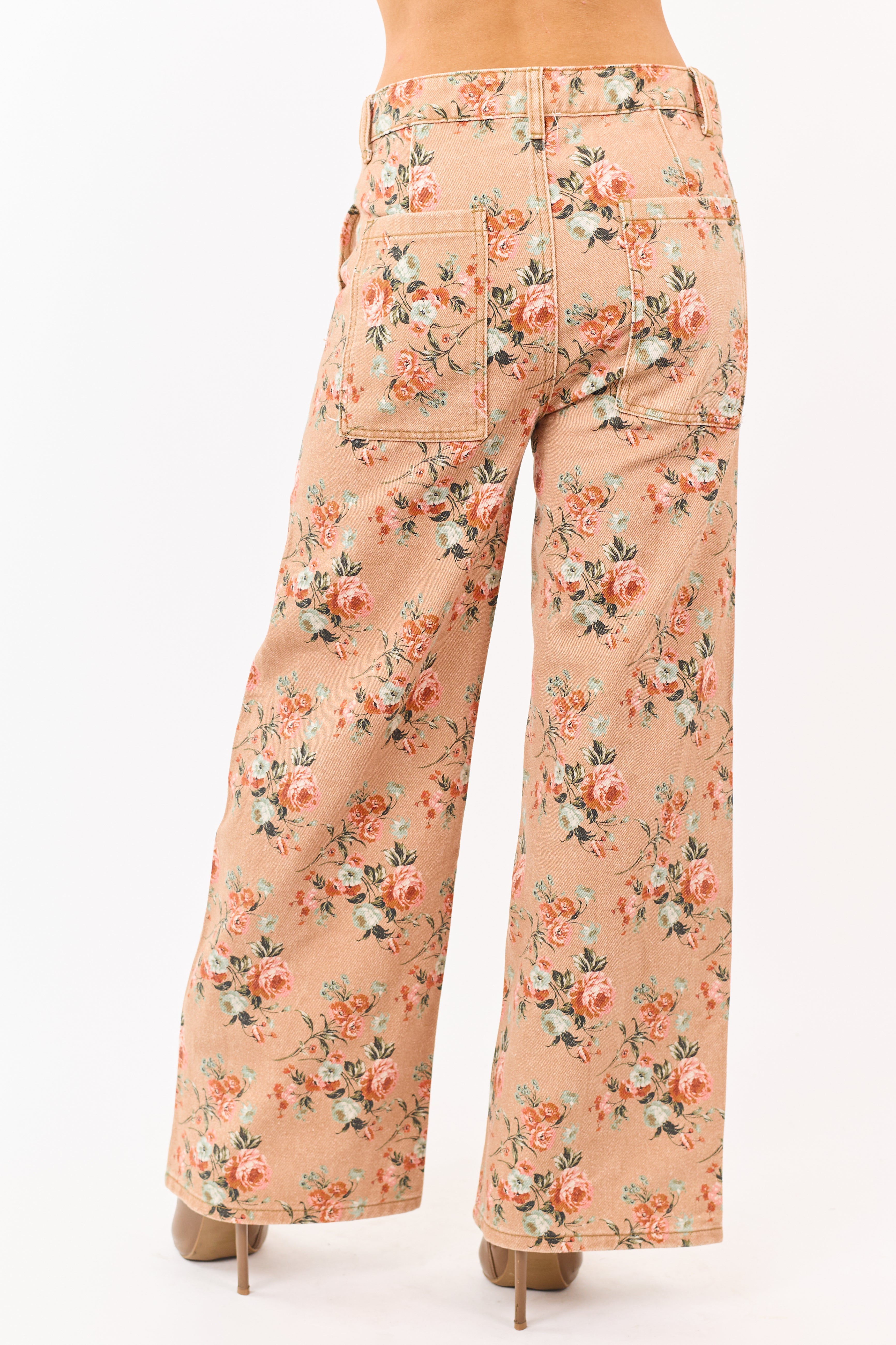 - These rose print jeans feature a high-rise waist and wide leg silhouette with an ankle-length cut for a flattering. fashion-forward look