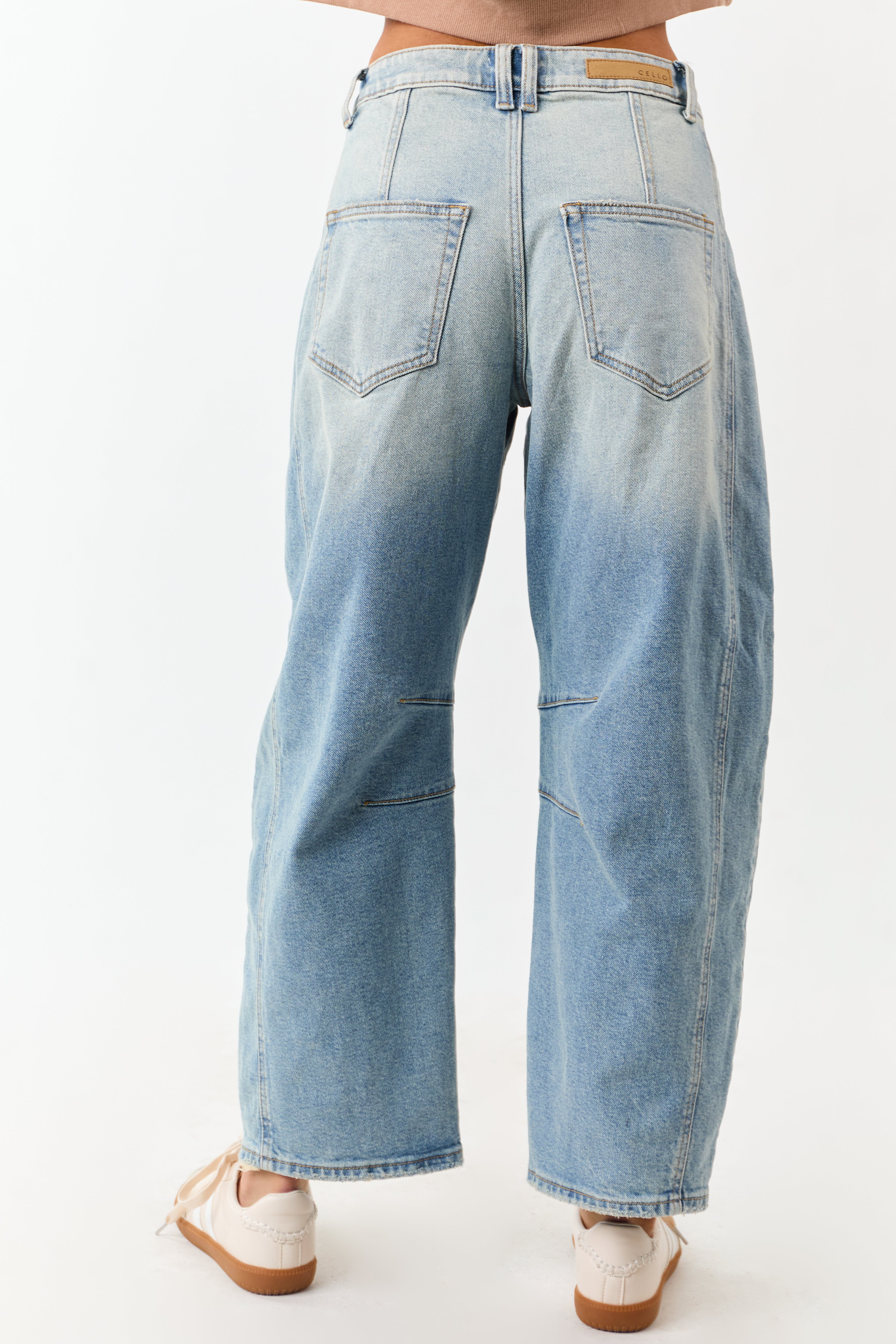 - Easygoing and trend-forward. these barrel jeans feature a baggy fit and cropped ankle length for pairing with sneakers or boots.