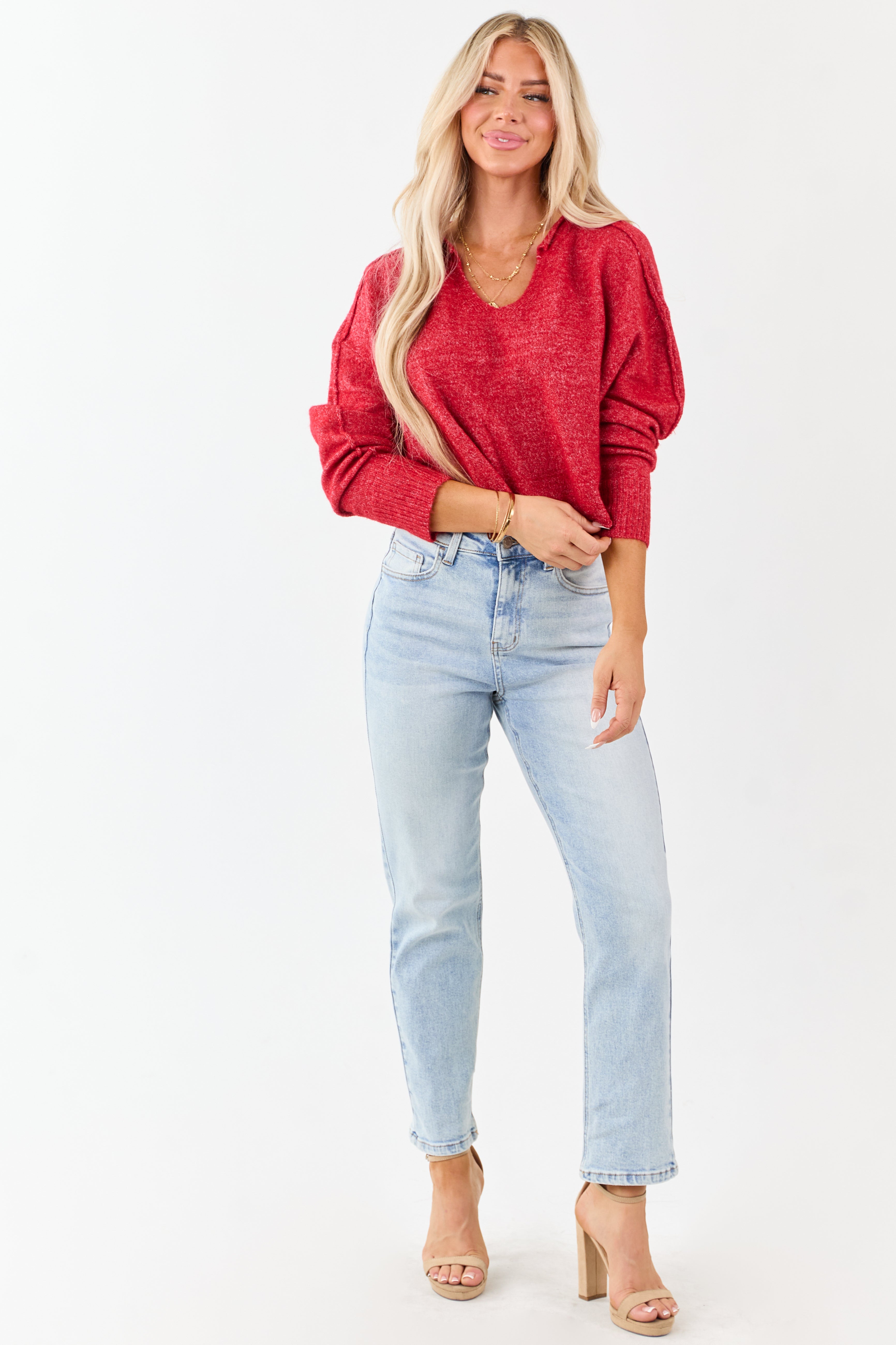 - Add retro vibes to your style with these light wash jeans. featuring a high rise fit. ankle length cut. and stretchy straight leg silhouette.