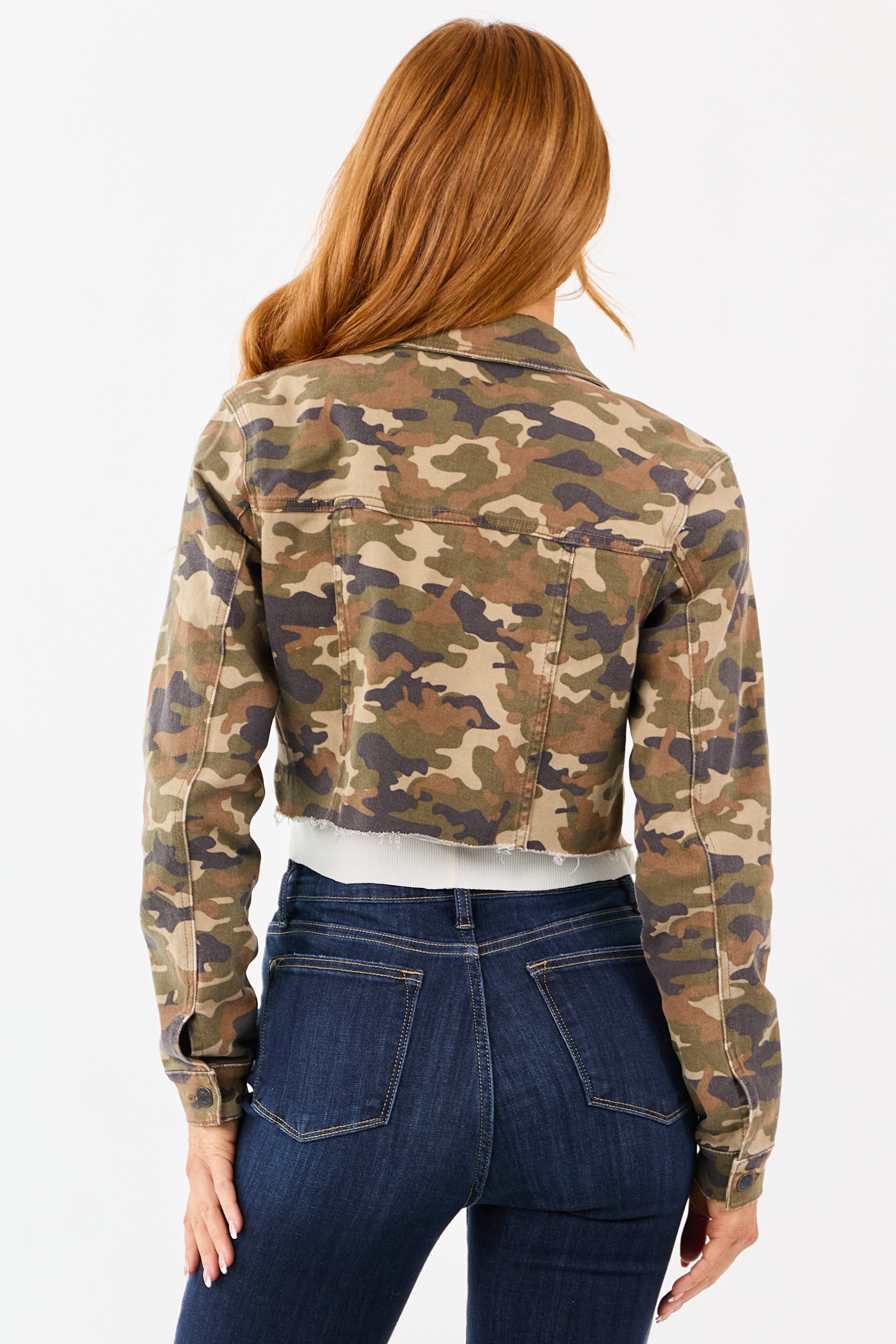 - Cropped for a trendy silhouette. this camo denim jacket brings casual-cool vibes to your everyday outfits.