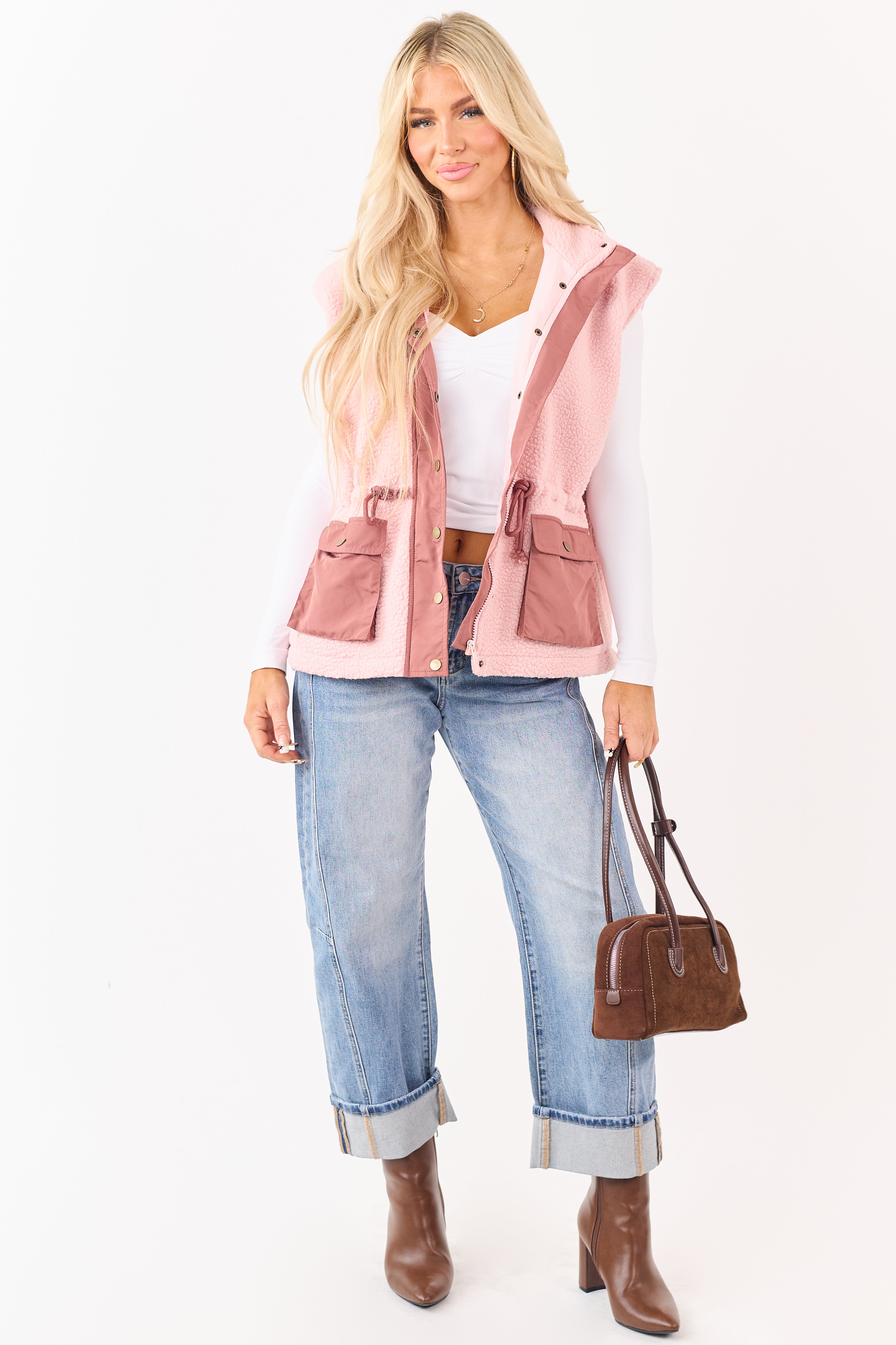 - Roomy side pockets keep your essentials close. and an adjustable cinching waist makes this vest as practical as it is adorable