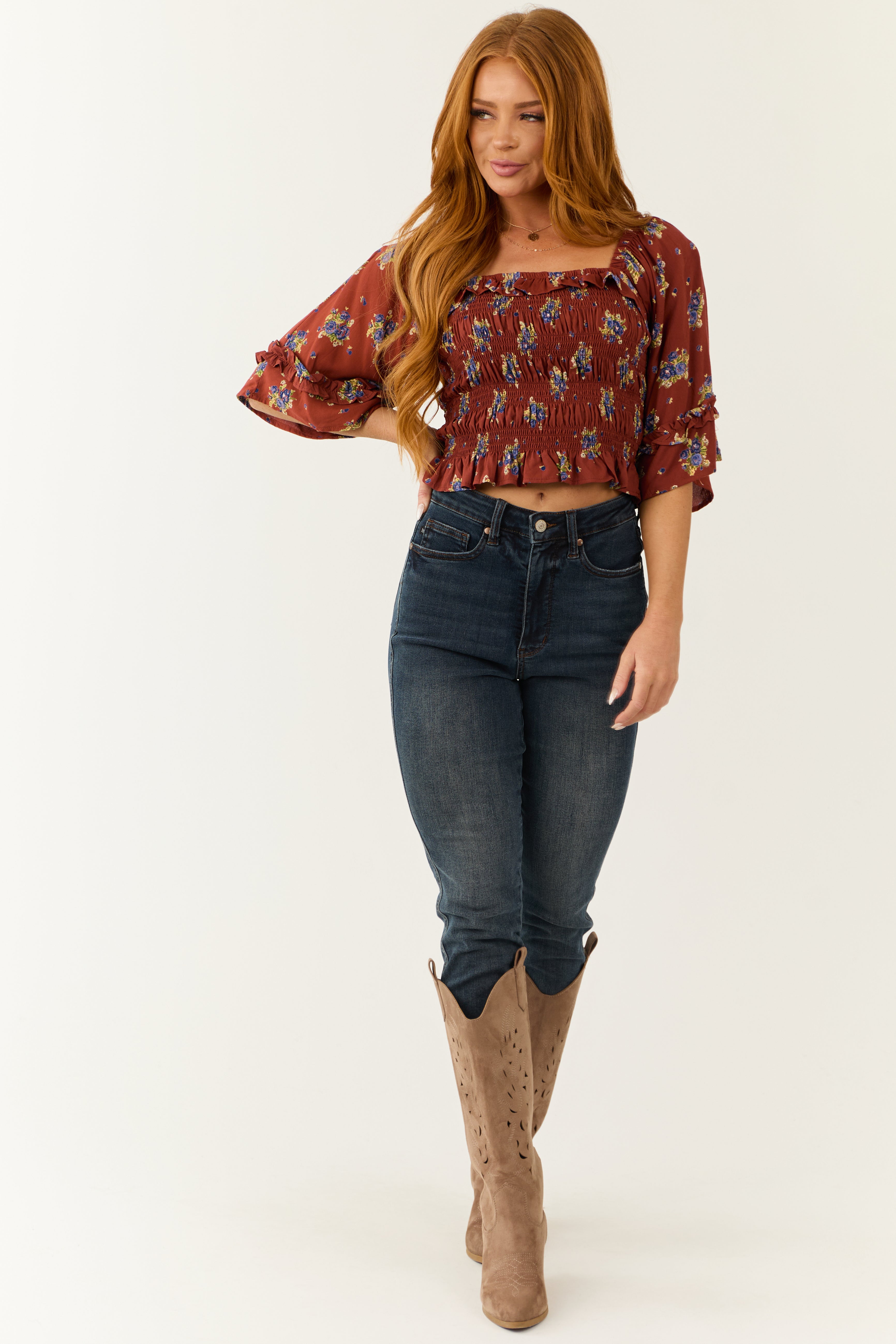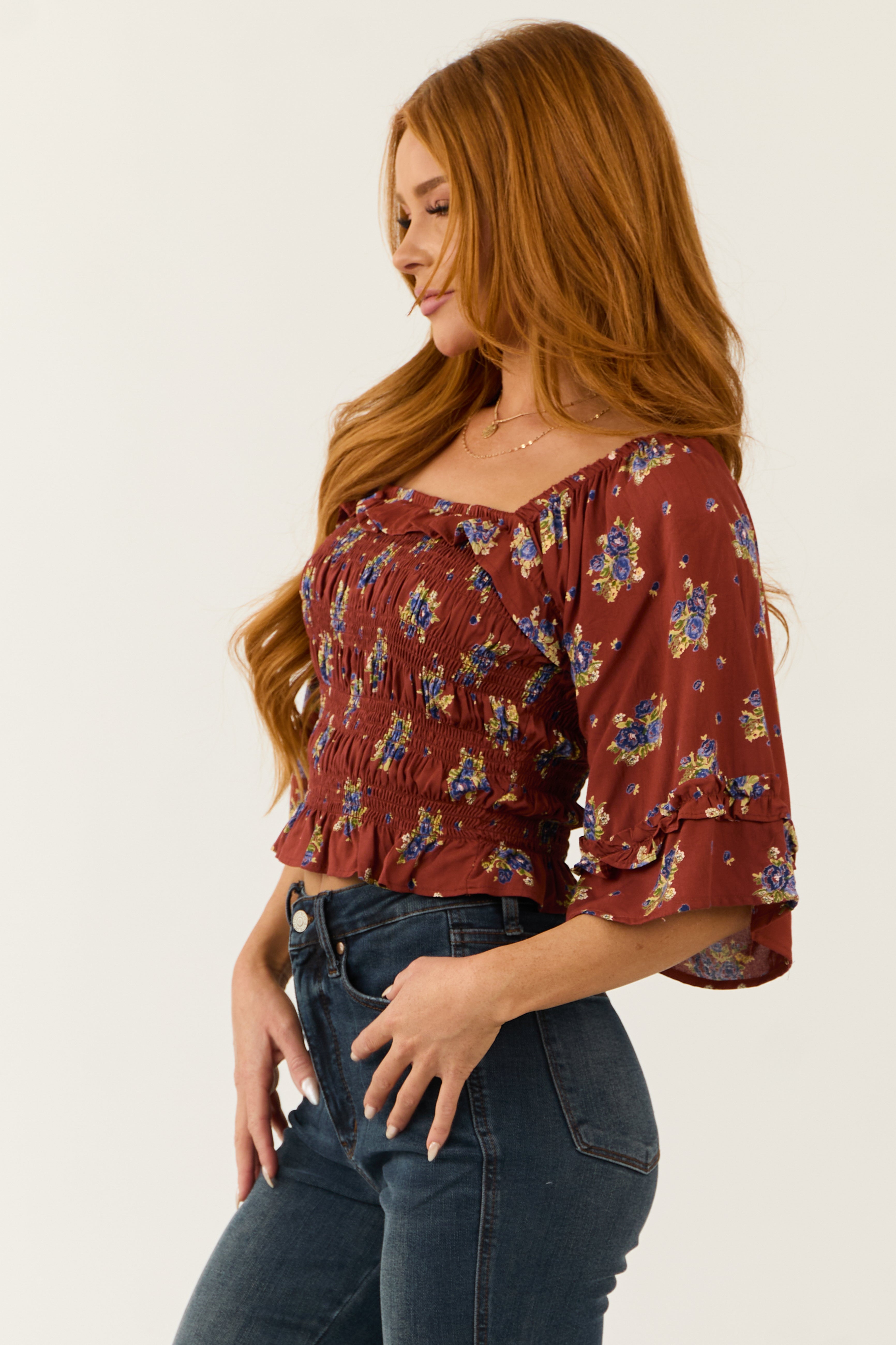 - Smocked bodice with ruffle detail