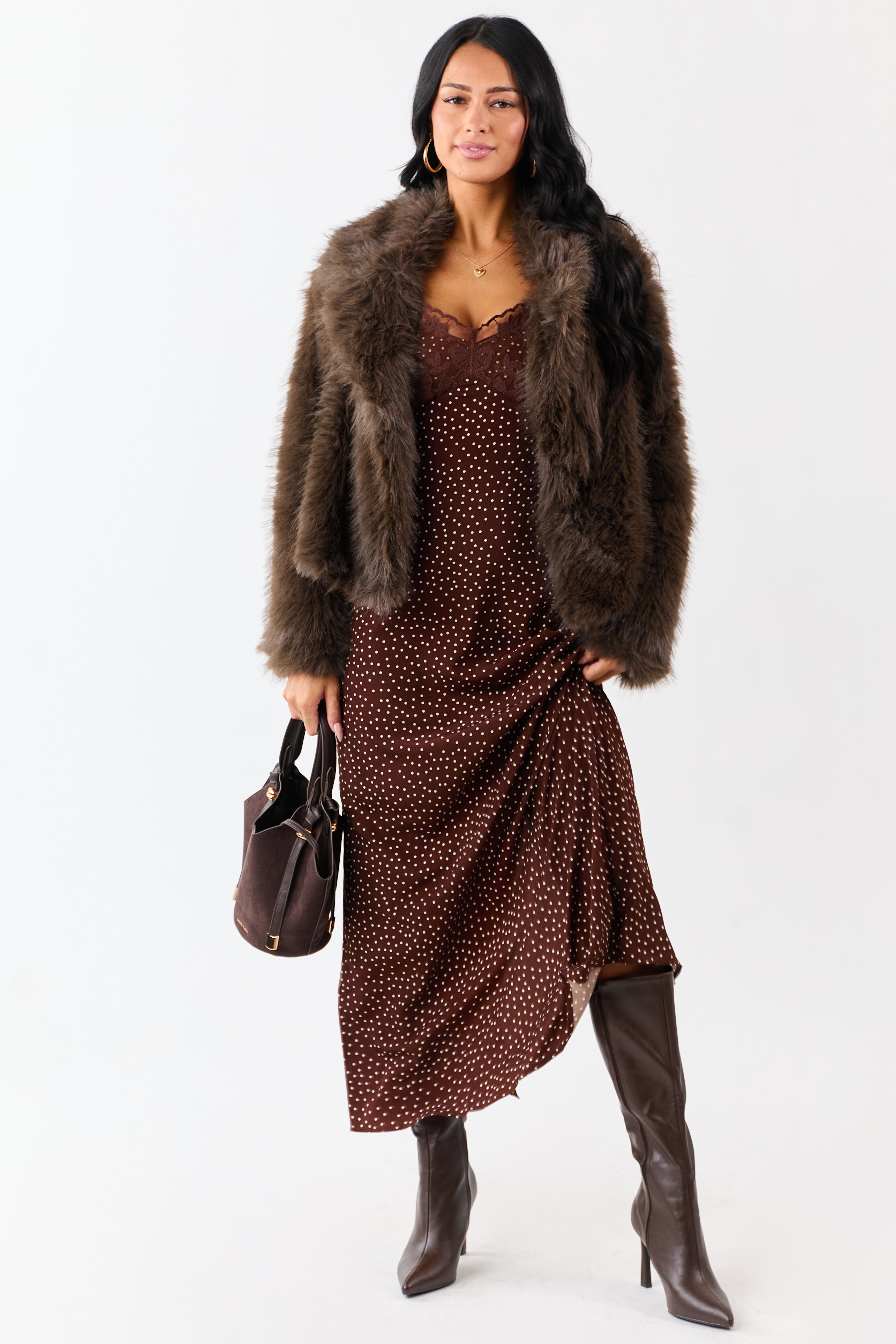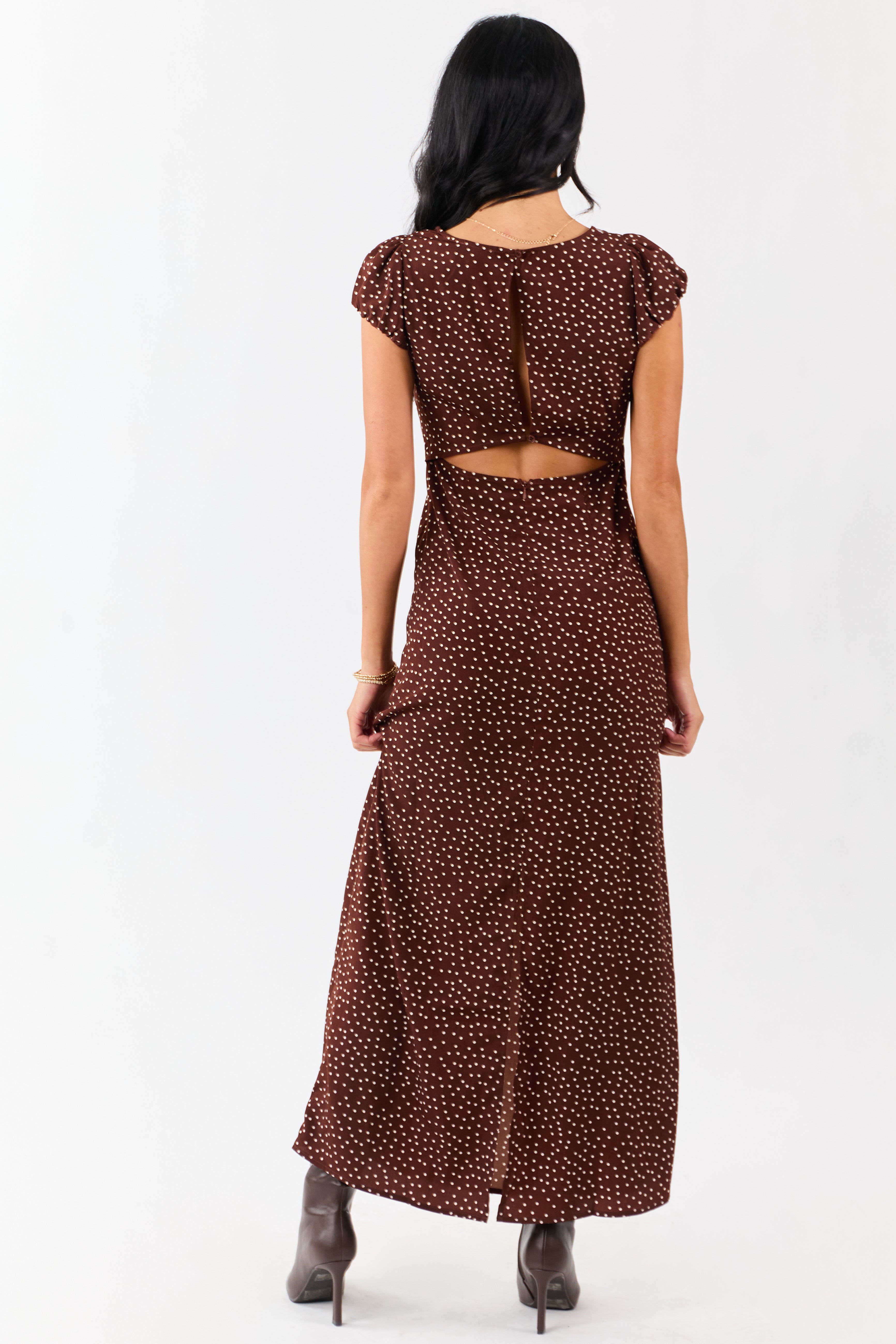 - This lace-detailed polka dot maxi dress flatters with its fitted lace bust. cap sleeves. and flowy full-length skirt