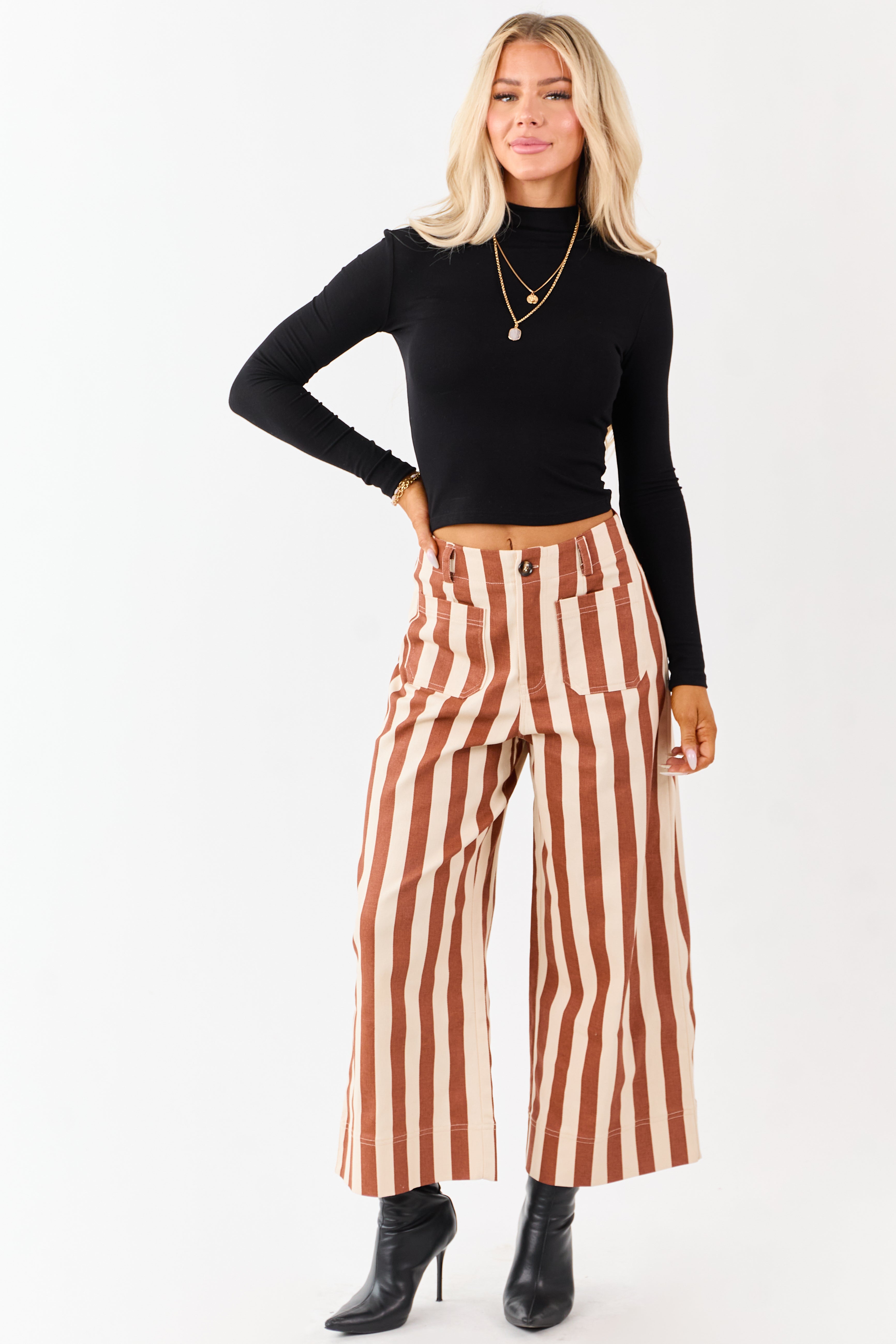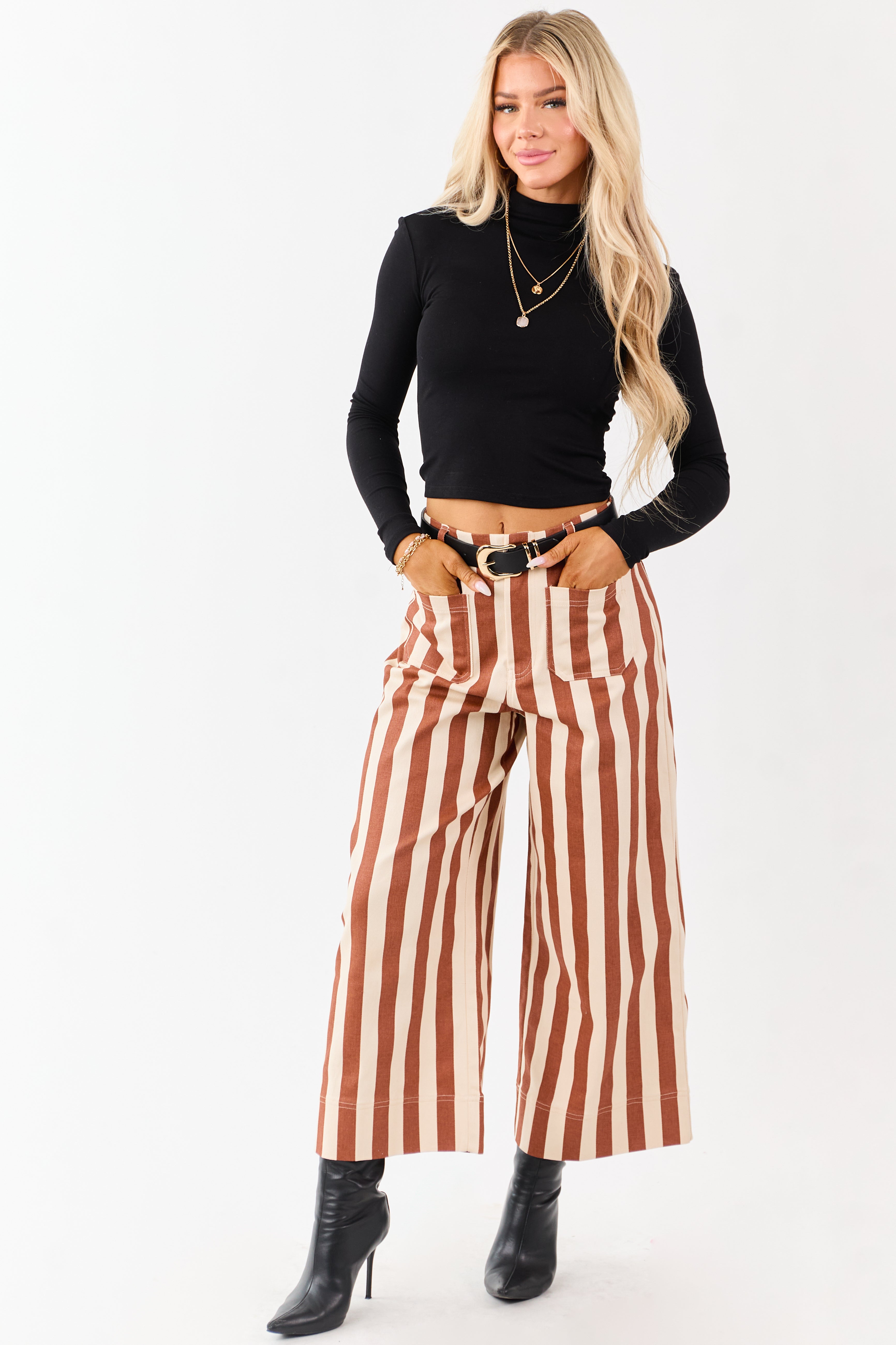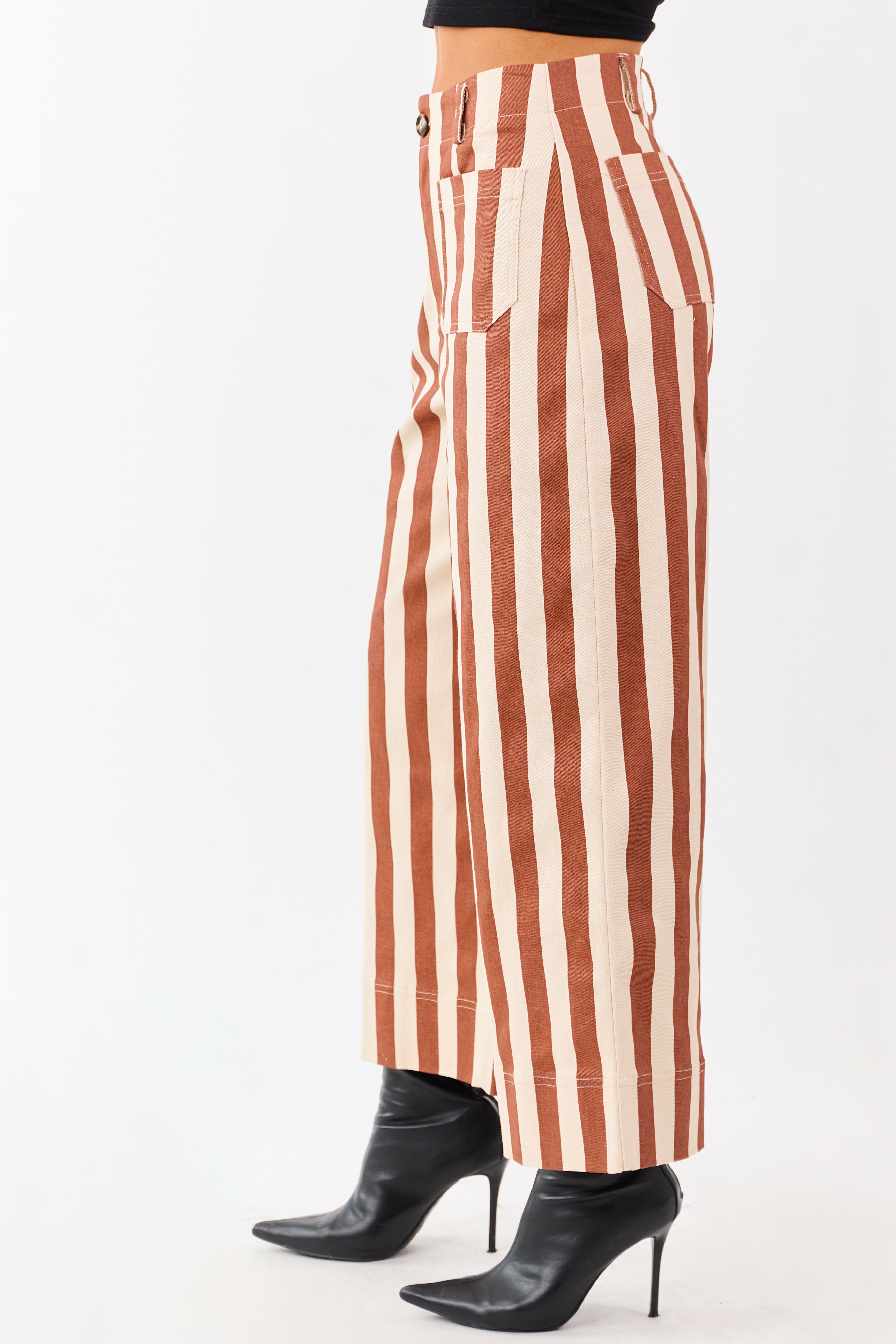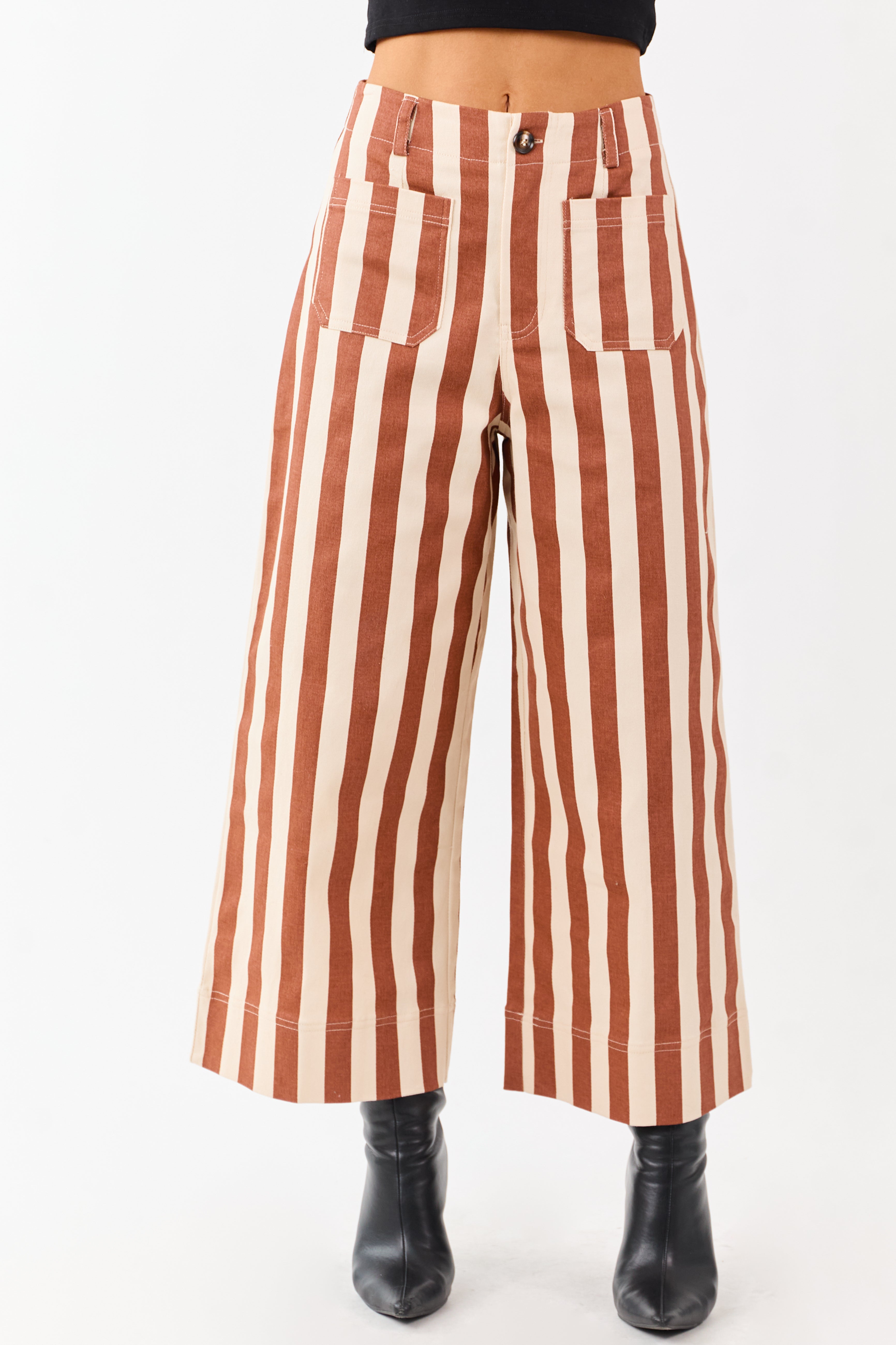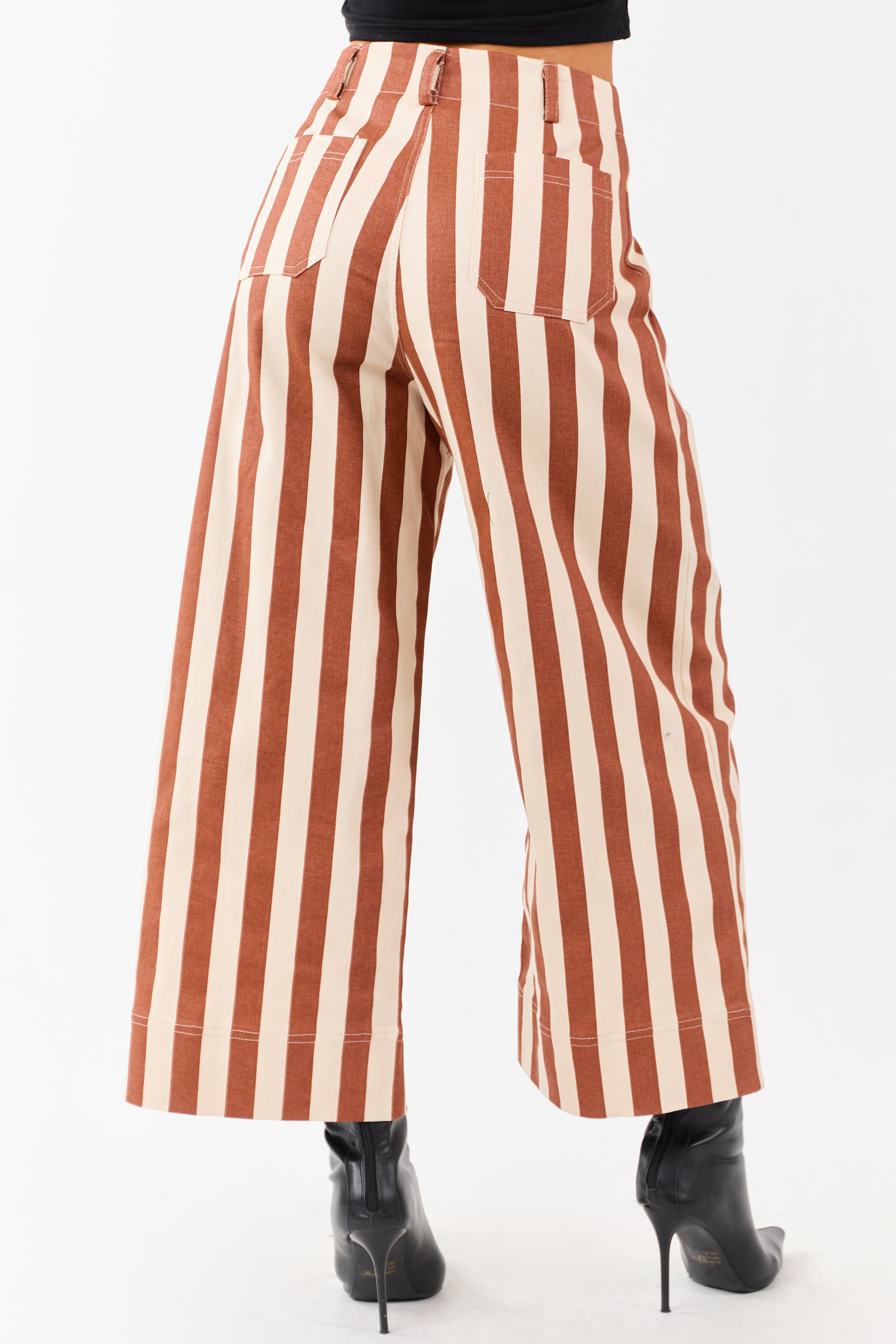 - Playful stripes. patch pockets. and a relaxed wide-leg silhouette make these denim cropped pants a must-have statement piece.