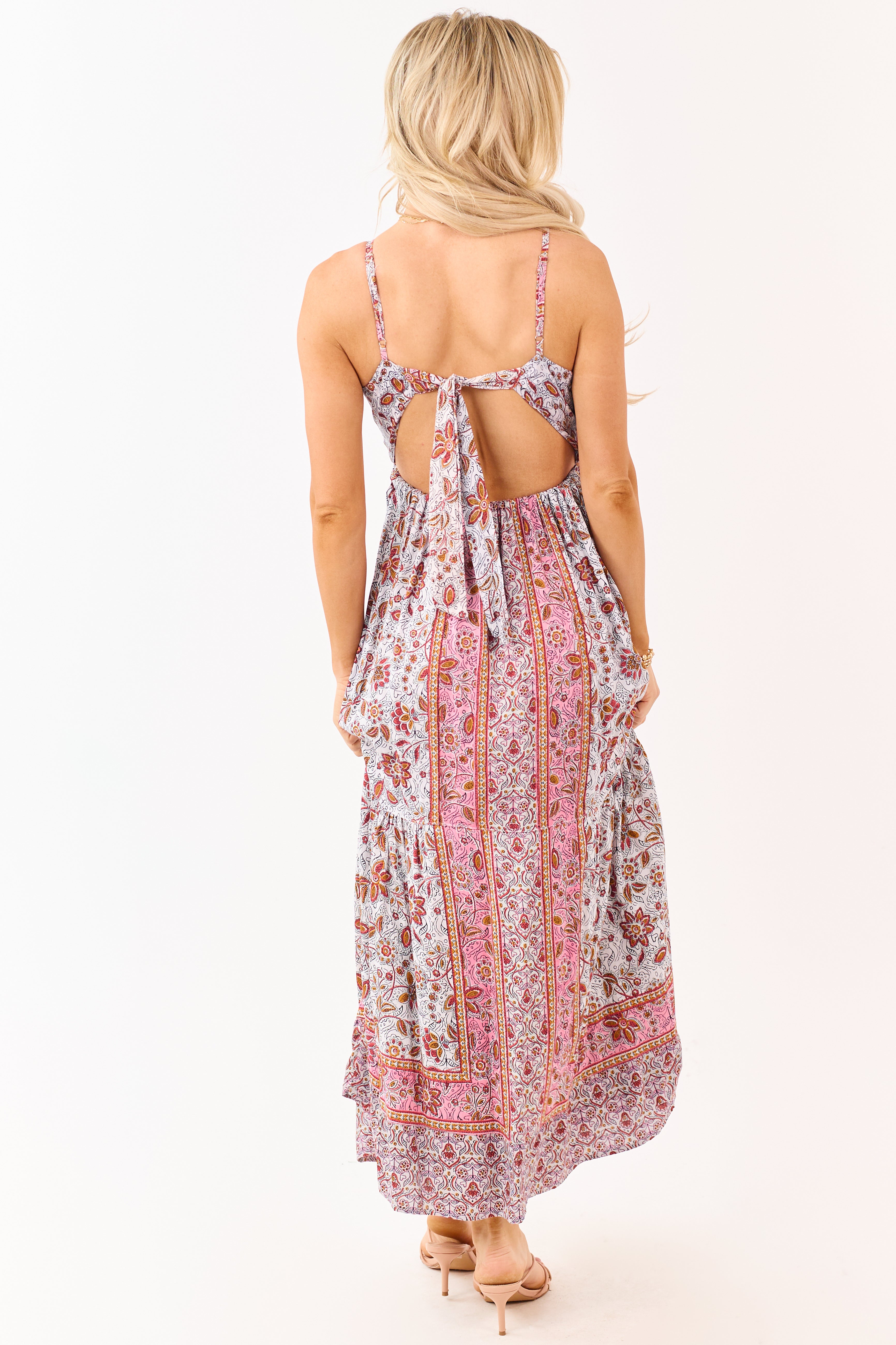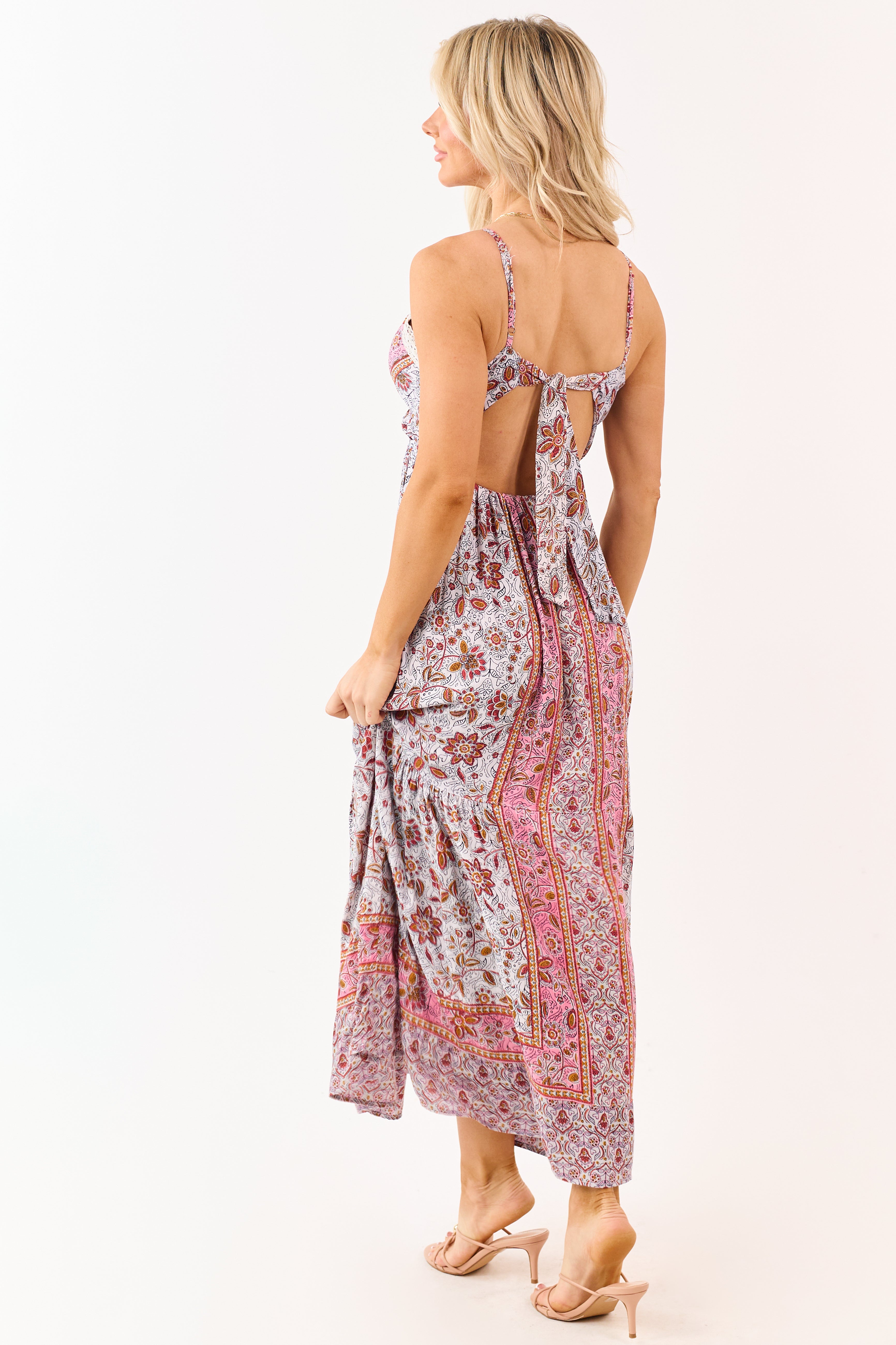 - A soft blend of contrasting florals drift across this boho maxi. finished with a flowy silhouette and sleeveless V-neck cut