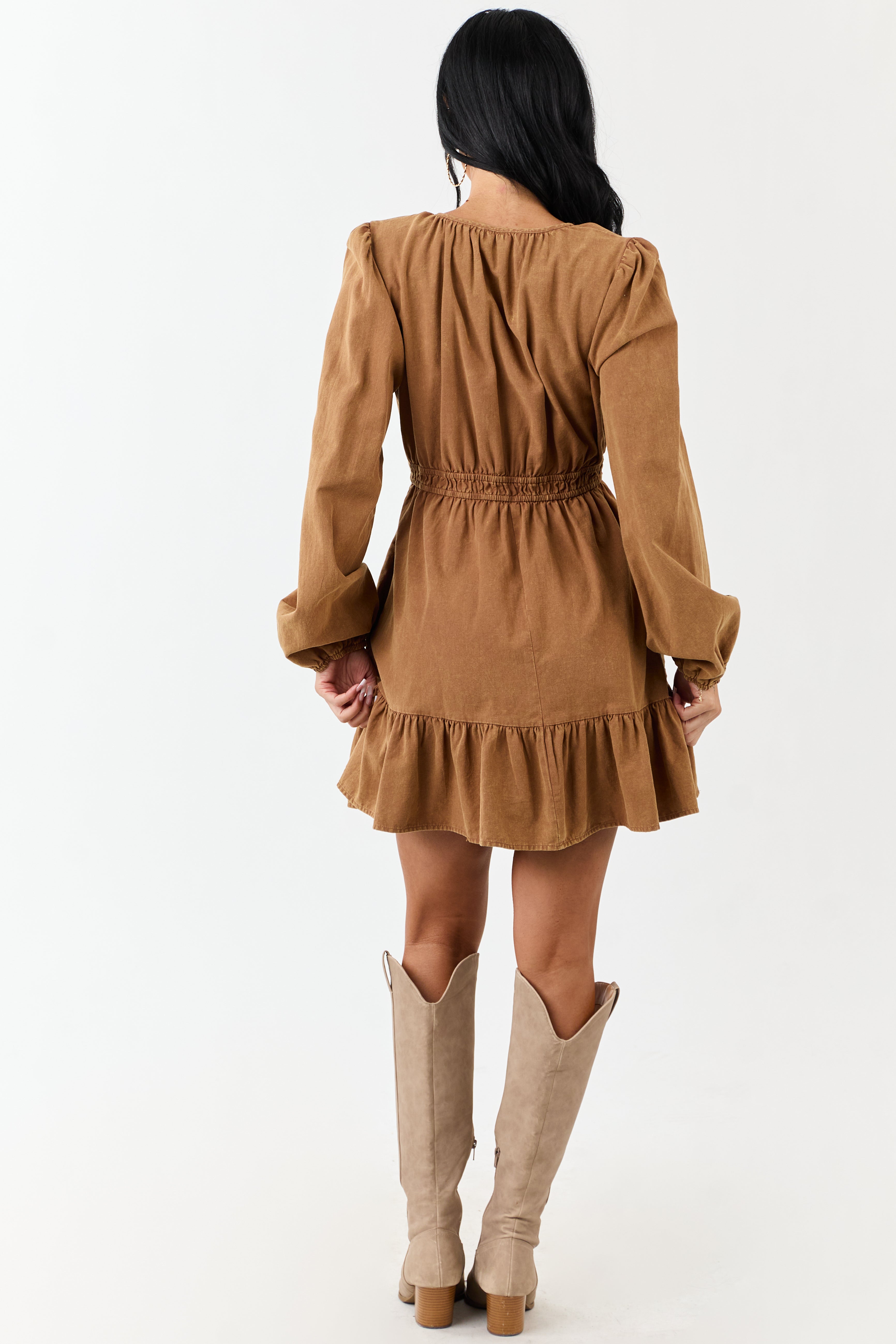 - This lightweight denim mini has a feminine silhouette with an elastic waistband and flirty ruffle hem.