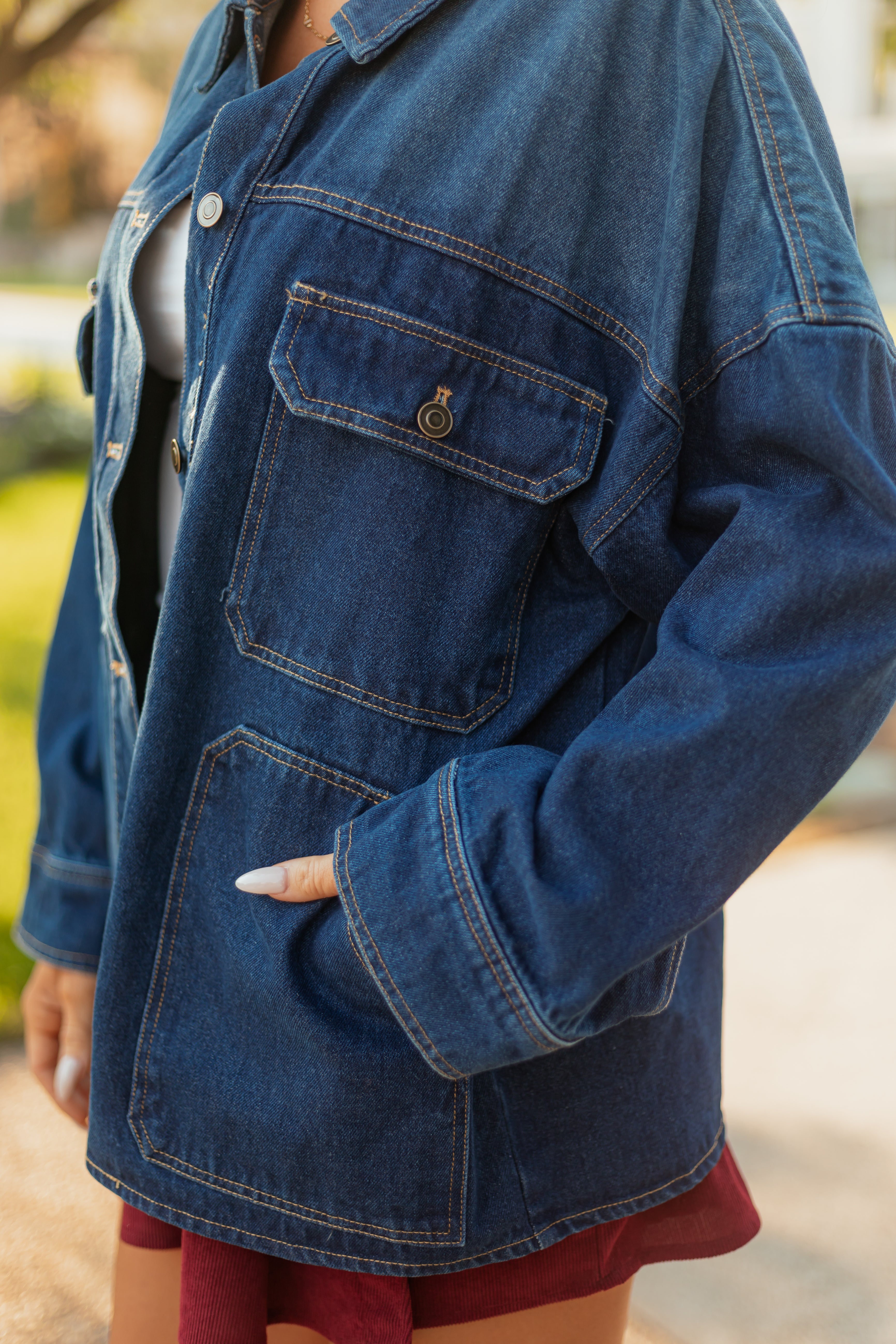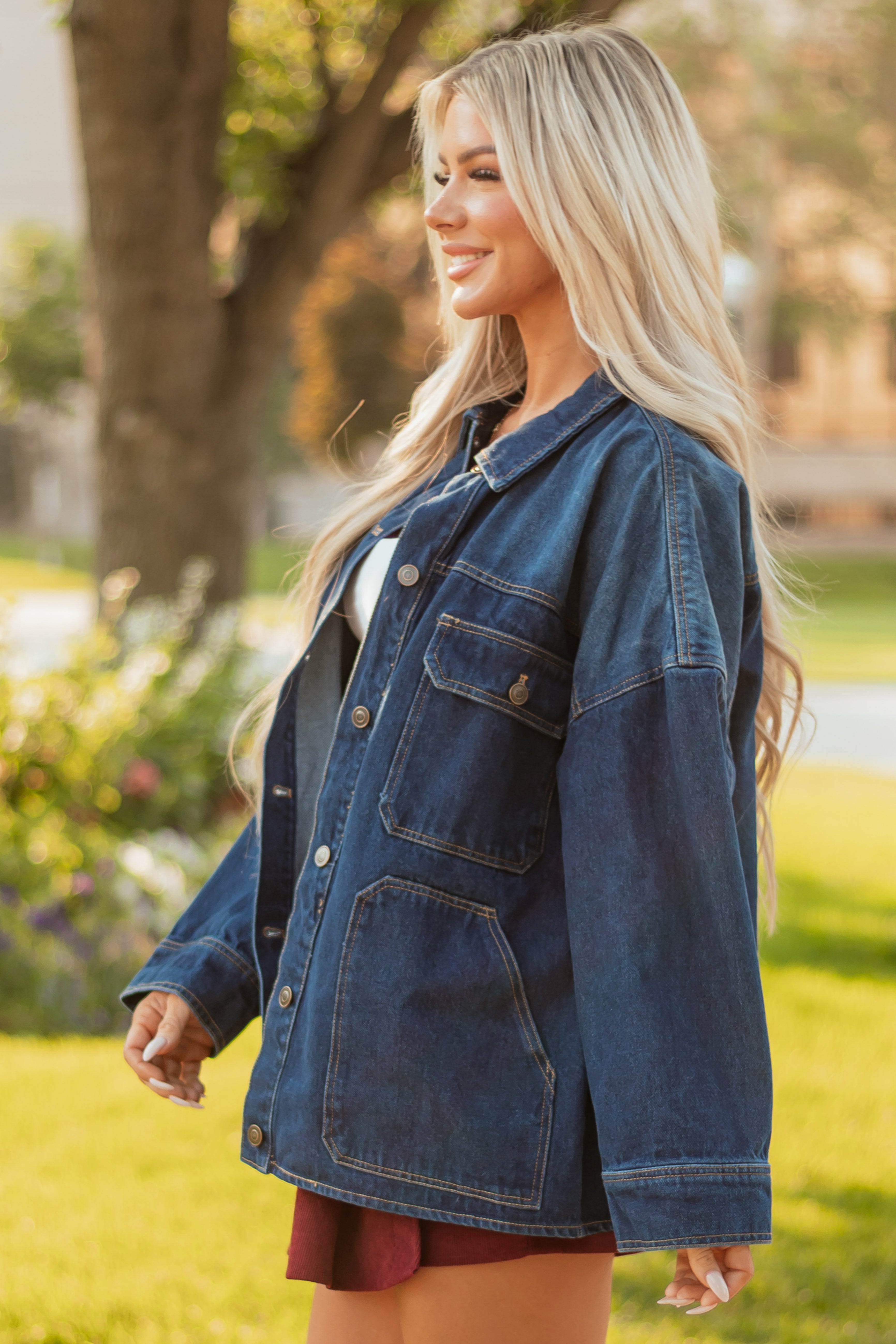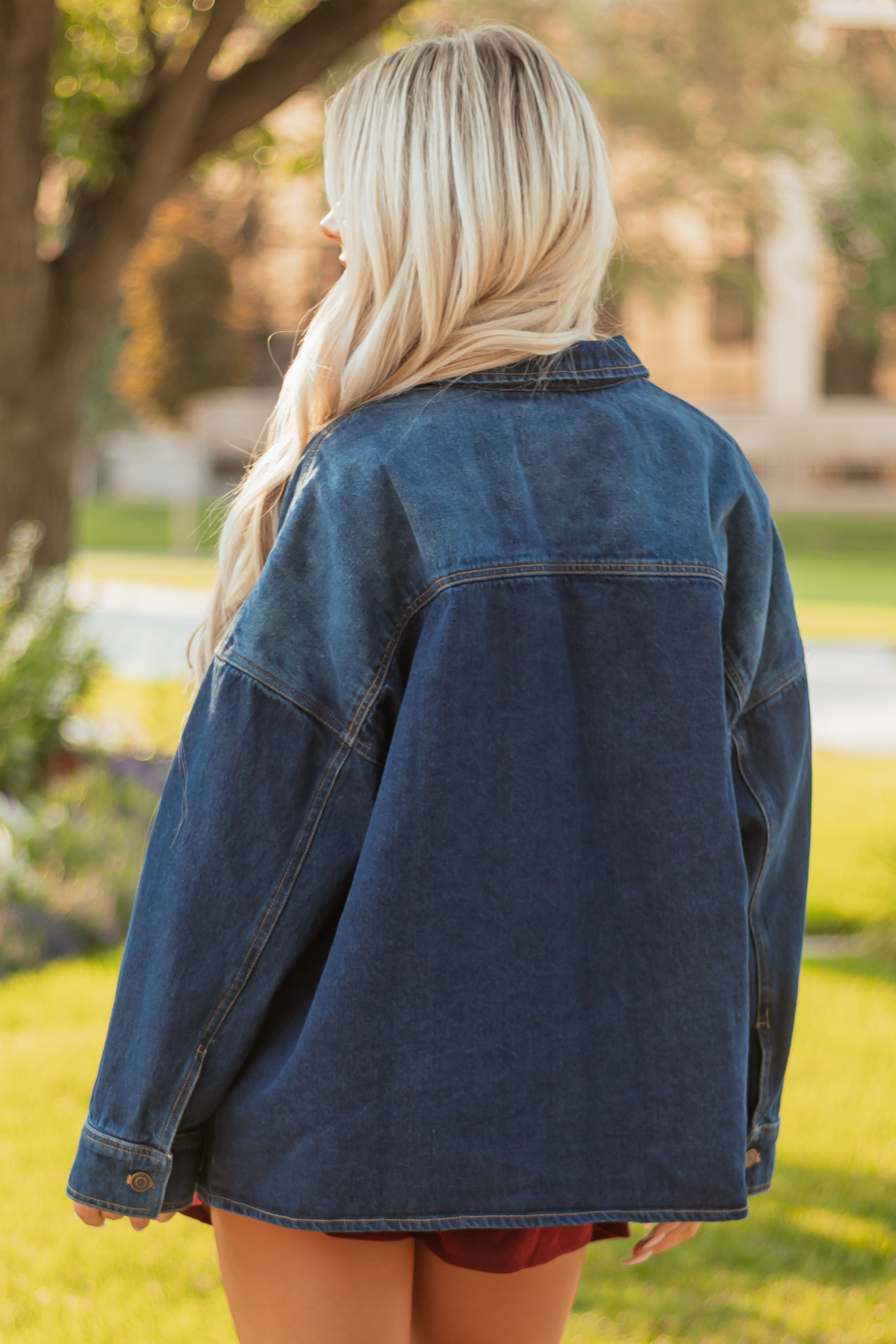 - A forever classic—this denim jacket features a dramatic comfortable fit and always in style wash.