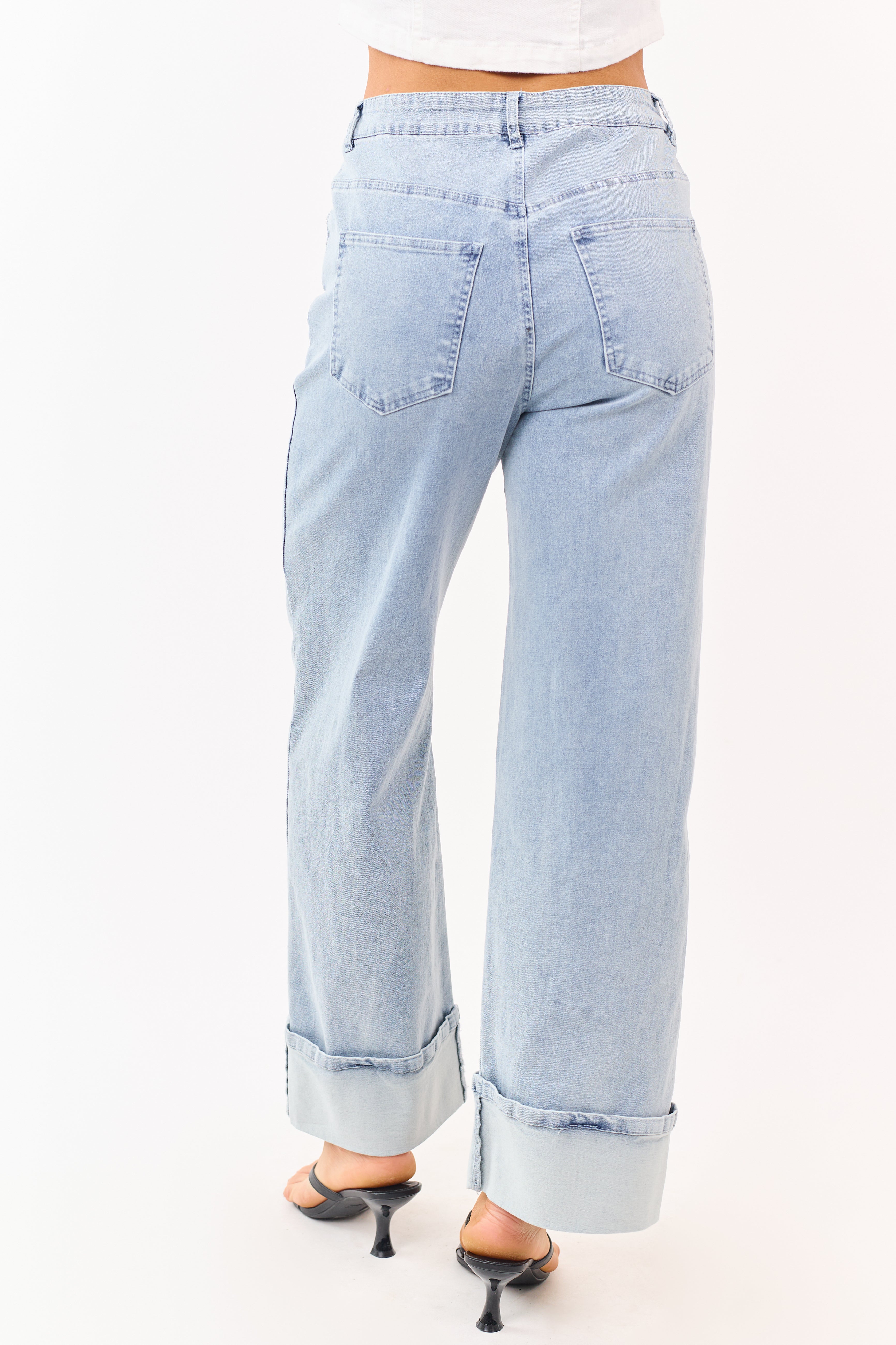 - These relaxed wide leg jeans are made in stretch denim and have a stylish cuffed hem for a flattering fit with modern appeal