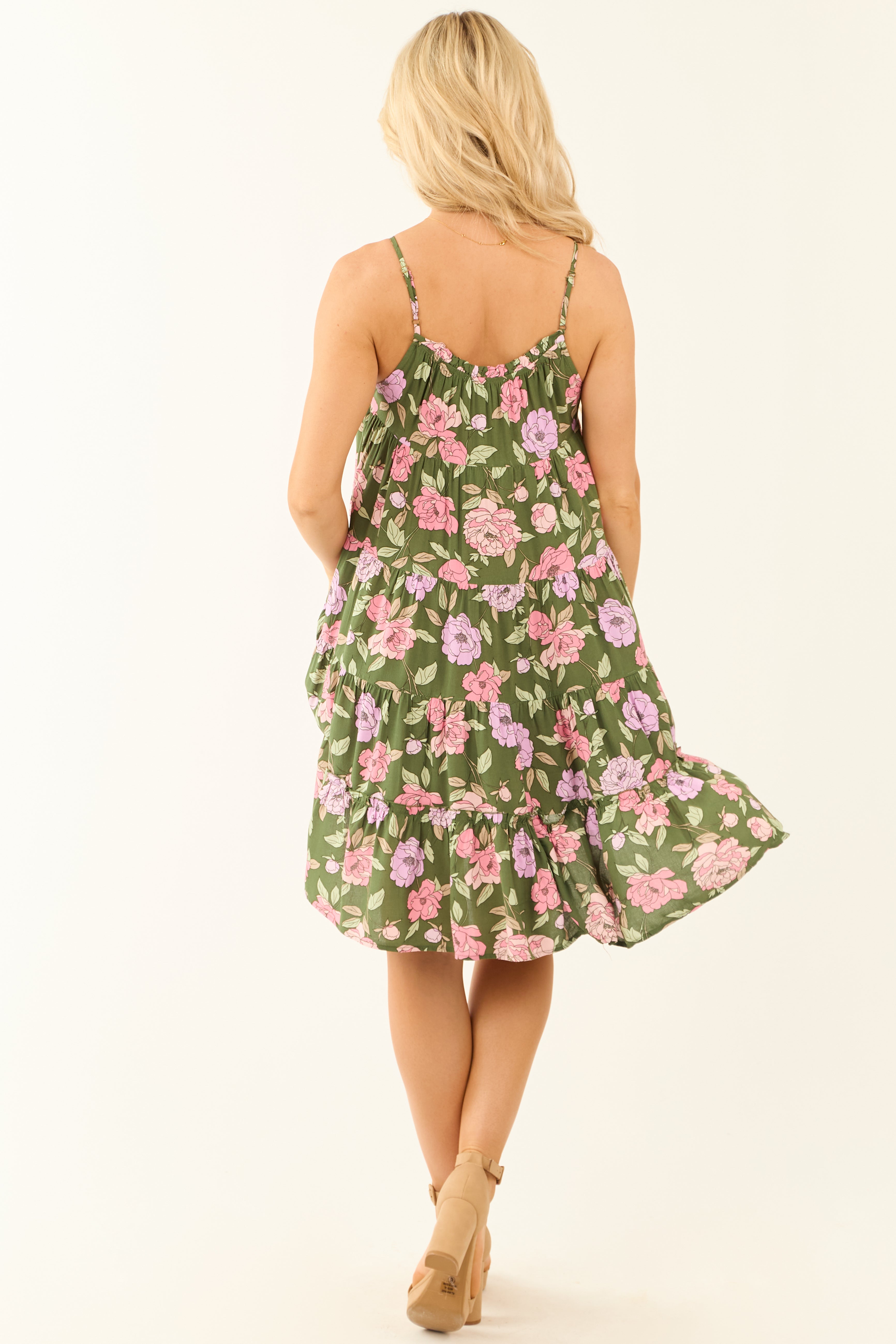 - Floral in shades of Hunter Green. Iris. Blush. Baby Pink. Latte. and Sage