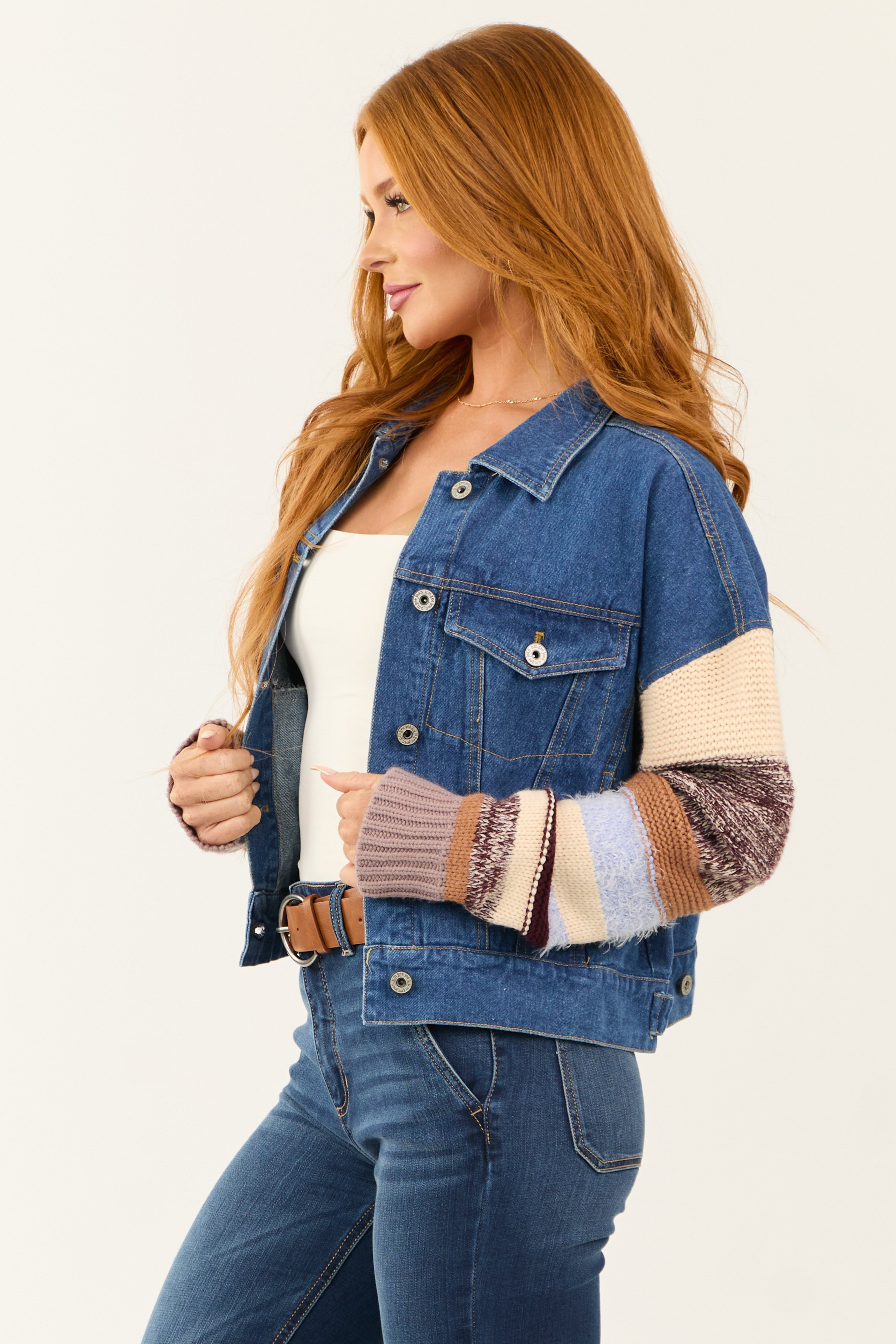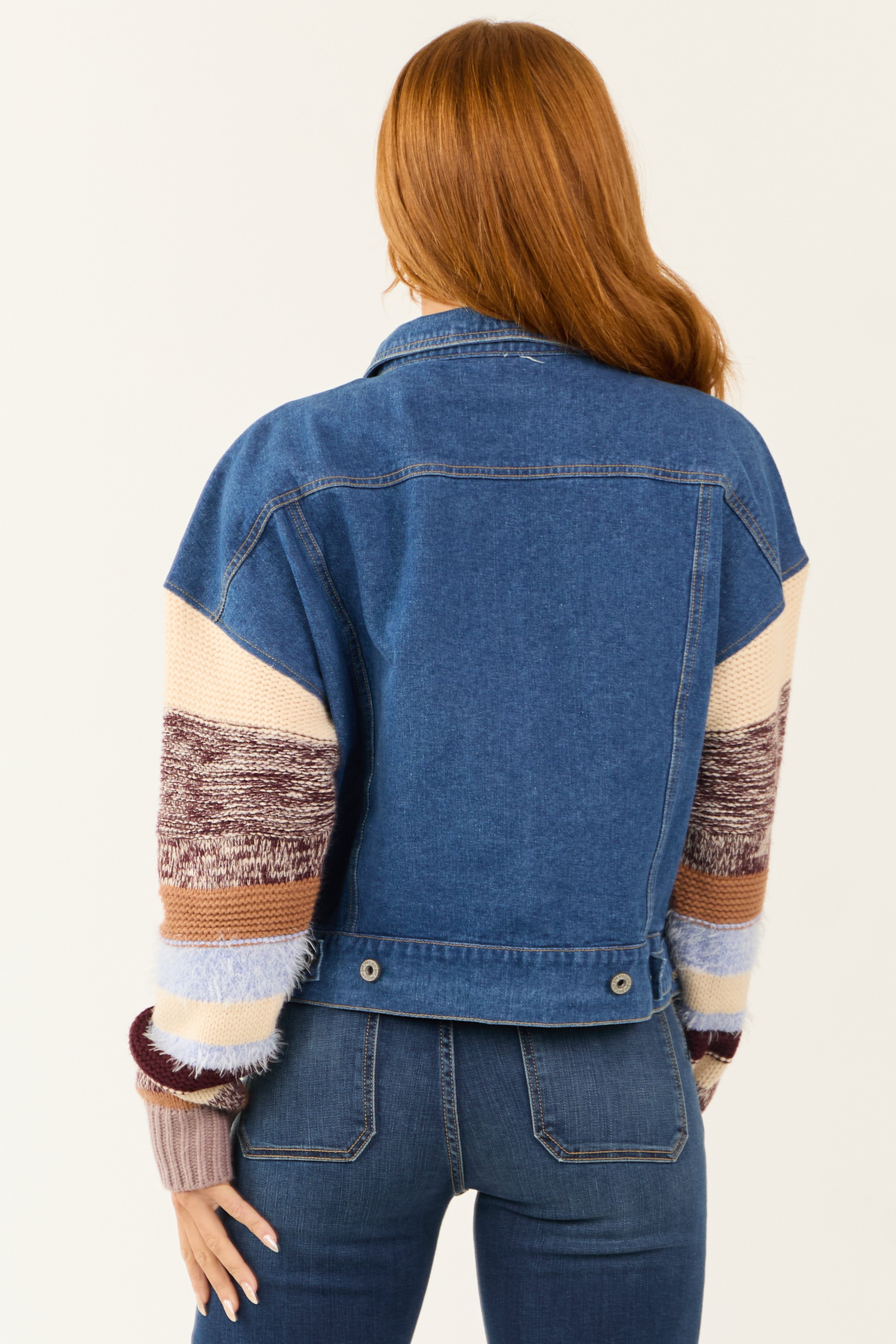 - Contrast striped sleeves in the shades of Champagne. Mahogany. Copper. Powder Blue and Dusty Mauve