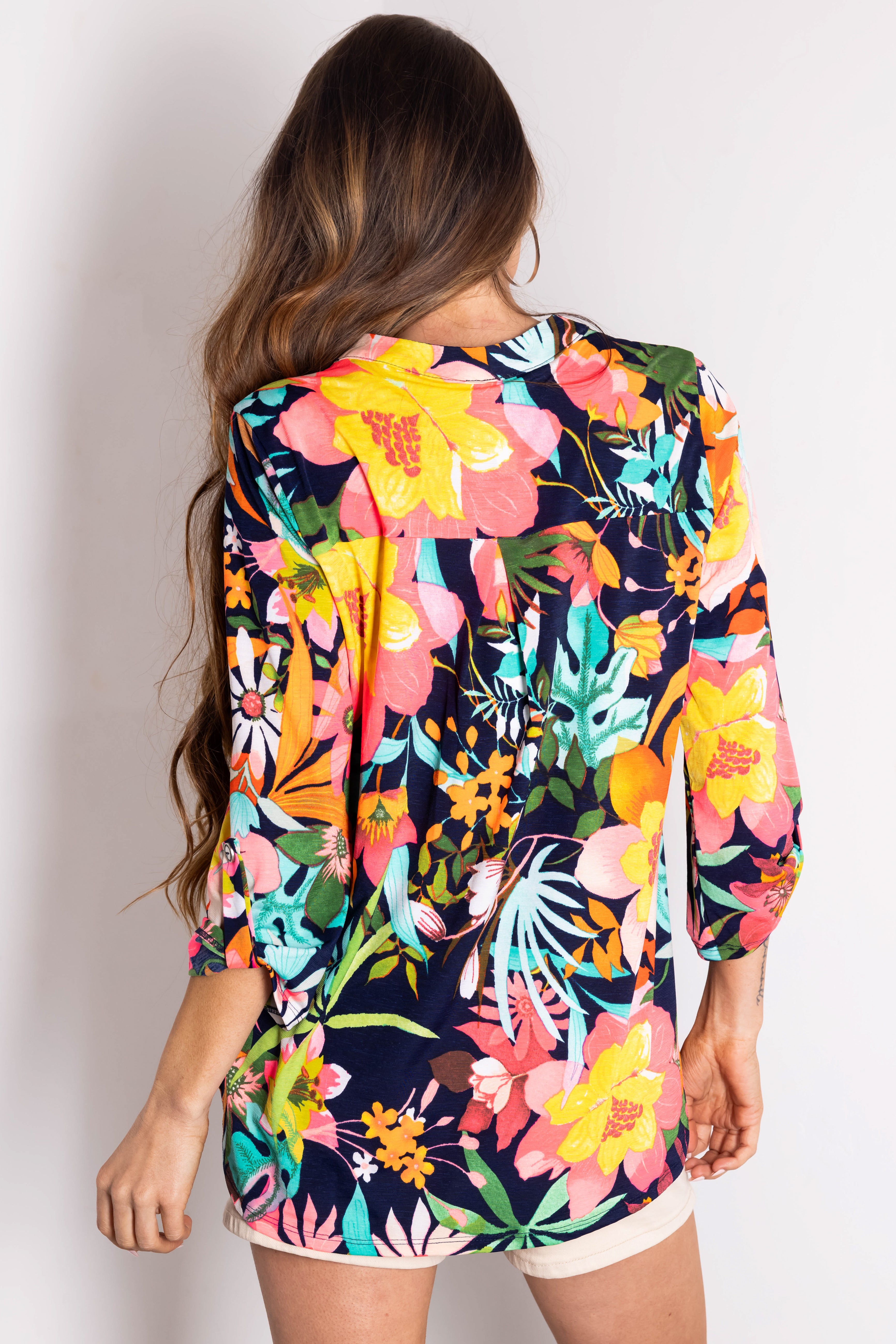 - Floral print in shades of Navy. Turquoise. Pine. Hunter Green. Hot Pink. Baby Pink. Buttercream. Sunset. Sunshine. Off White