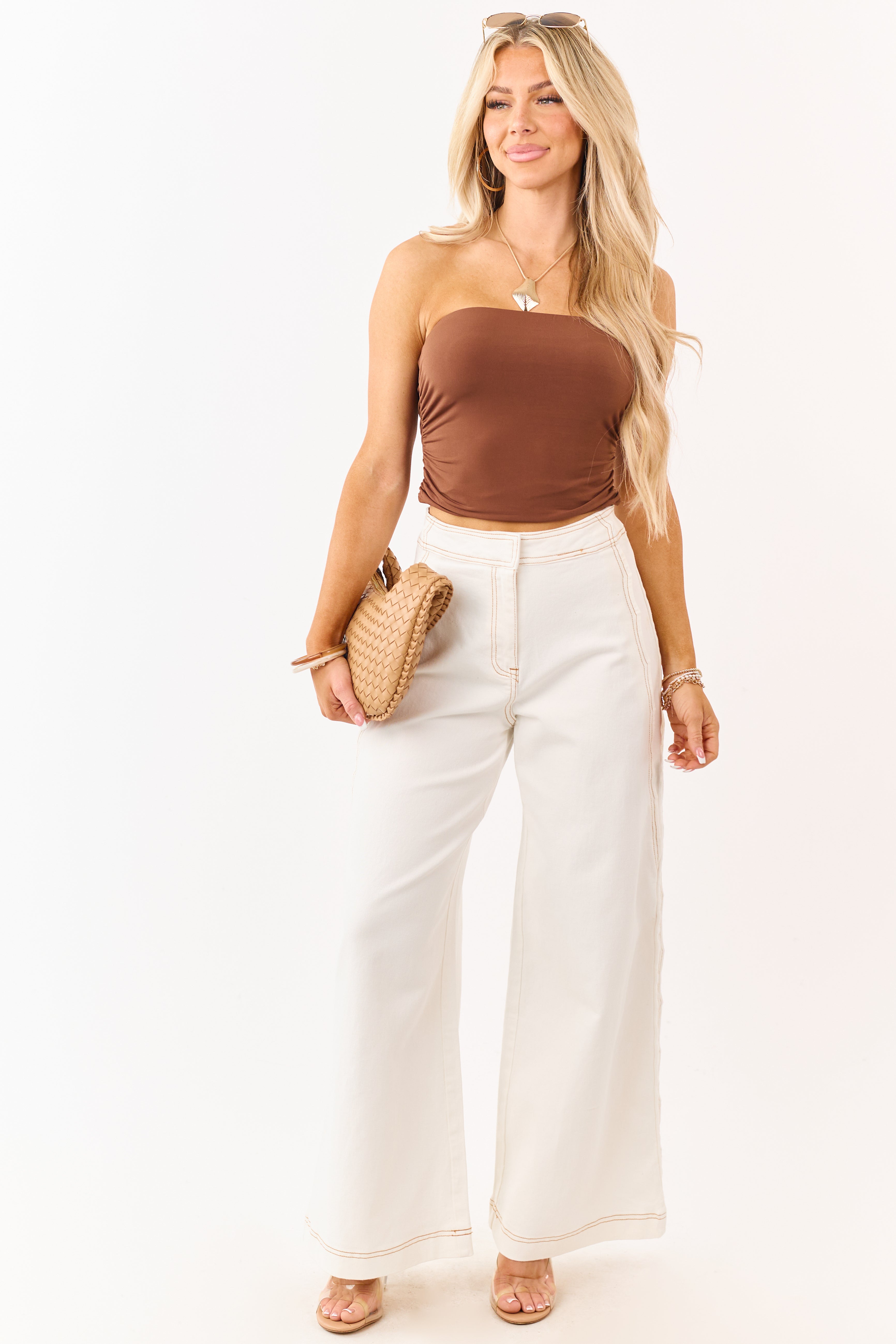 - Contrast stitching in the shade Caramel