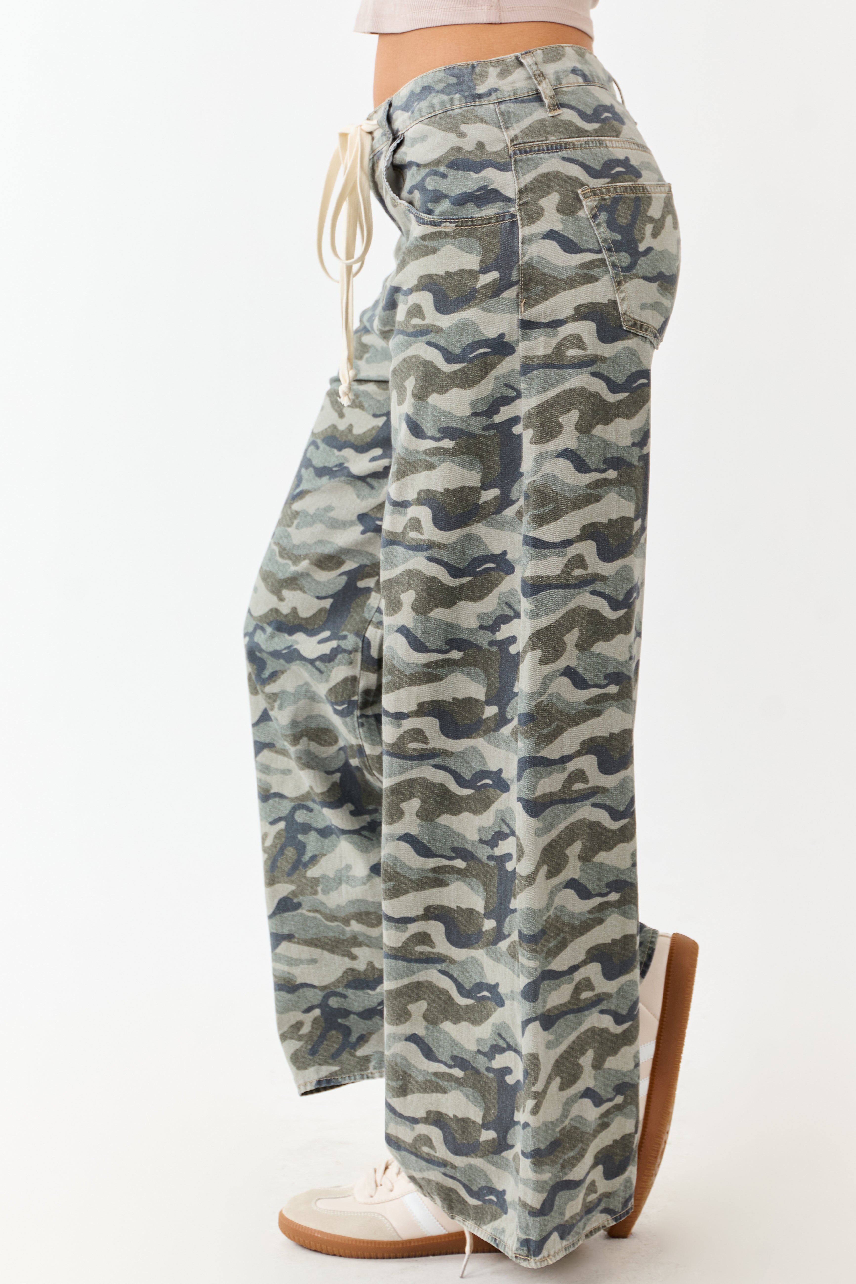 - Stand out in these super wide leg denim pants. featuring a relaxed drawstring waist for ultimate comfort.
