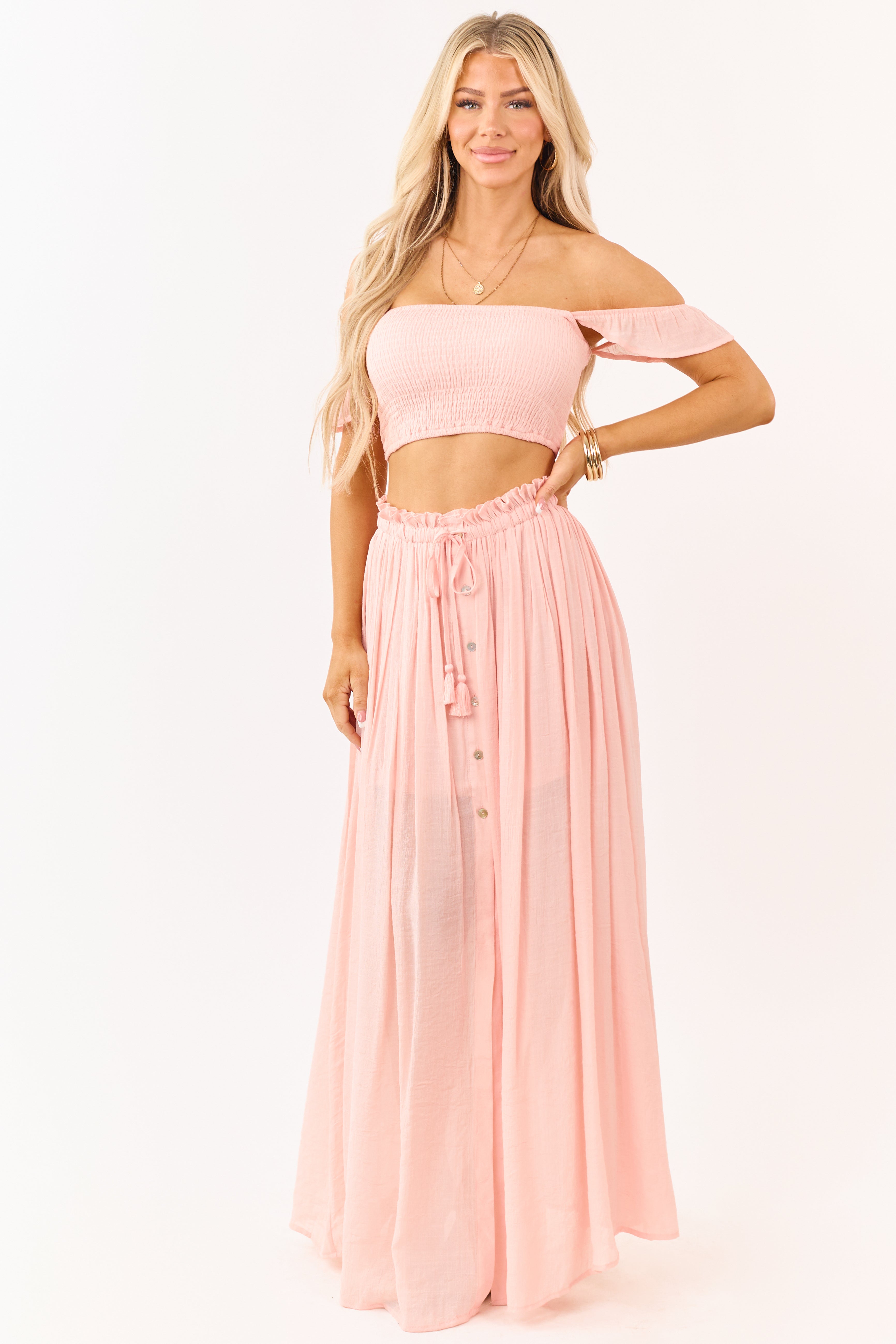 - This matching set features a stretchy smocked crop top and a lightweight maxi skirt with an adjustable drawstring waist