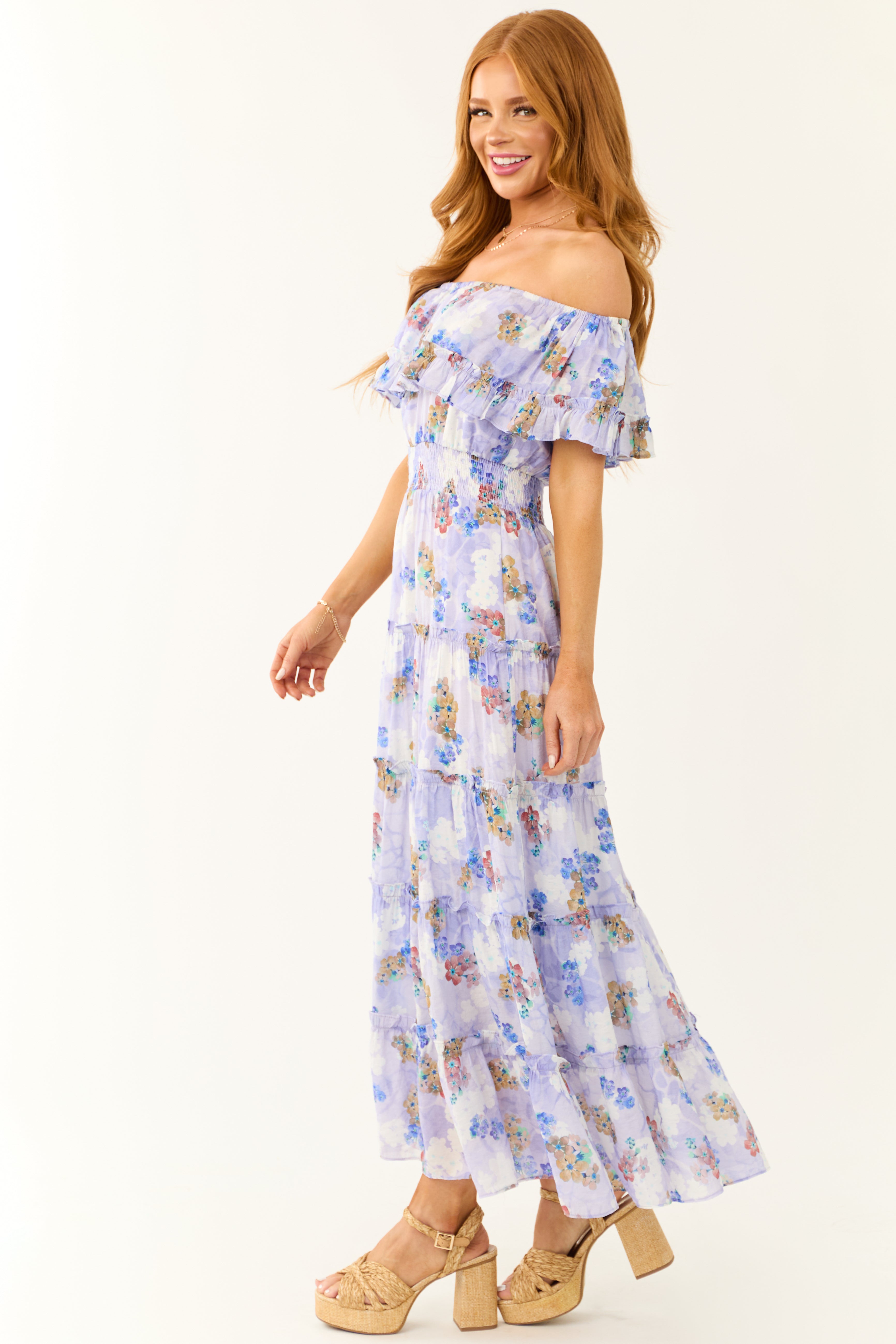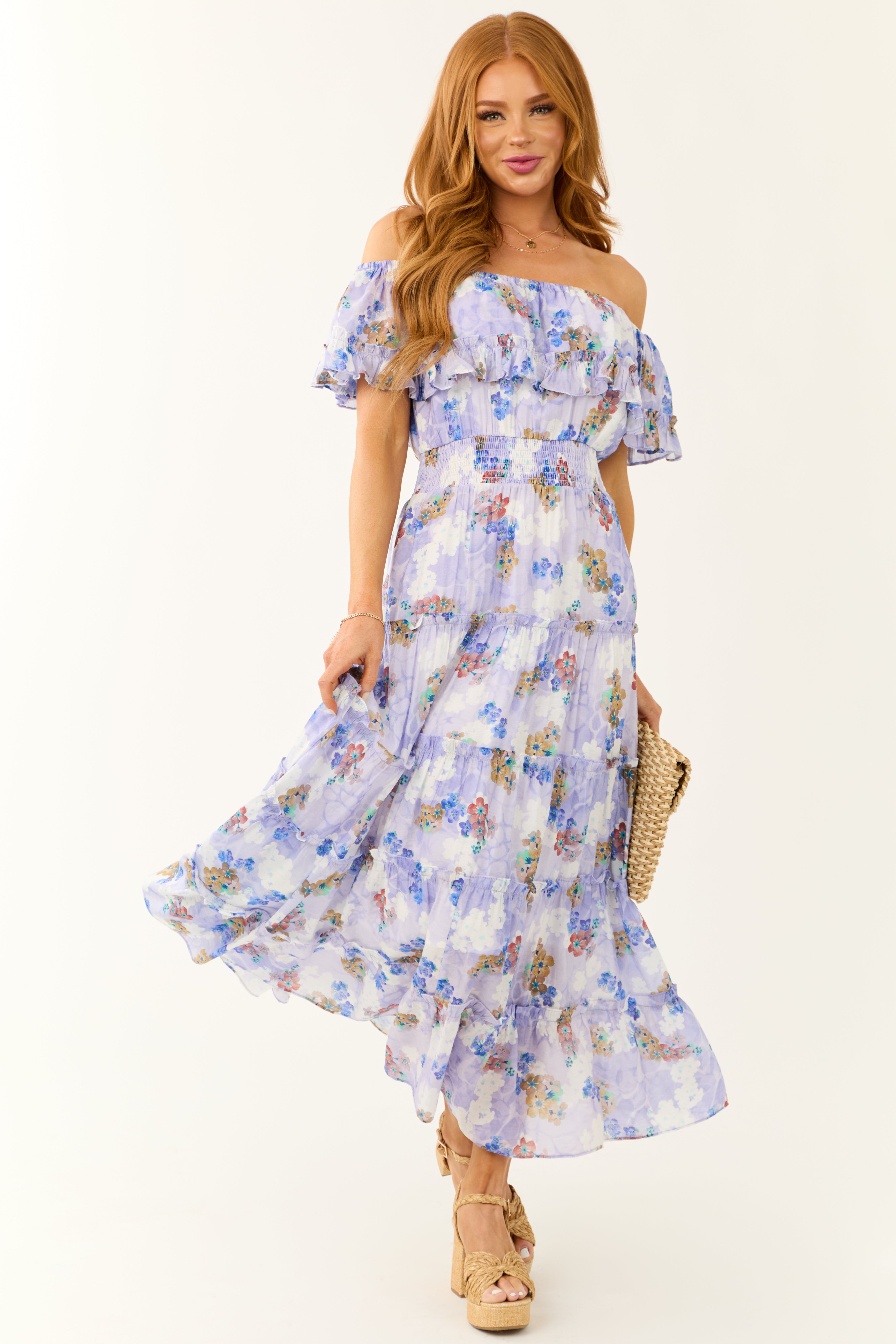 - Floral print in shades of Periwinkle. Ivory. Sapphire. Berry. Desert. and Turquoise