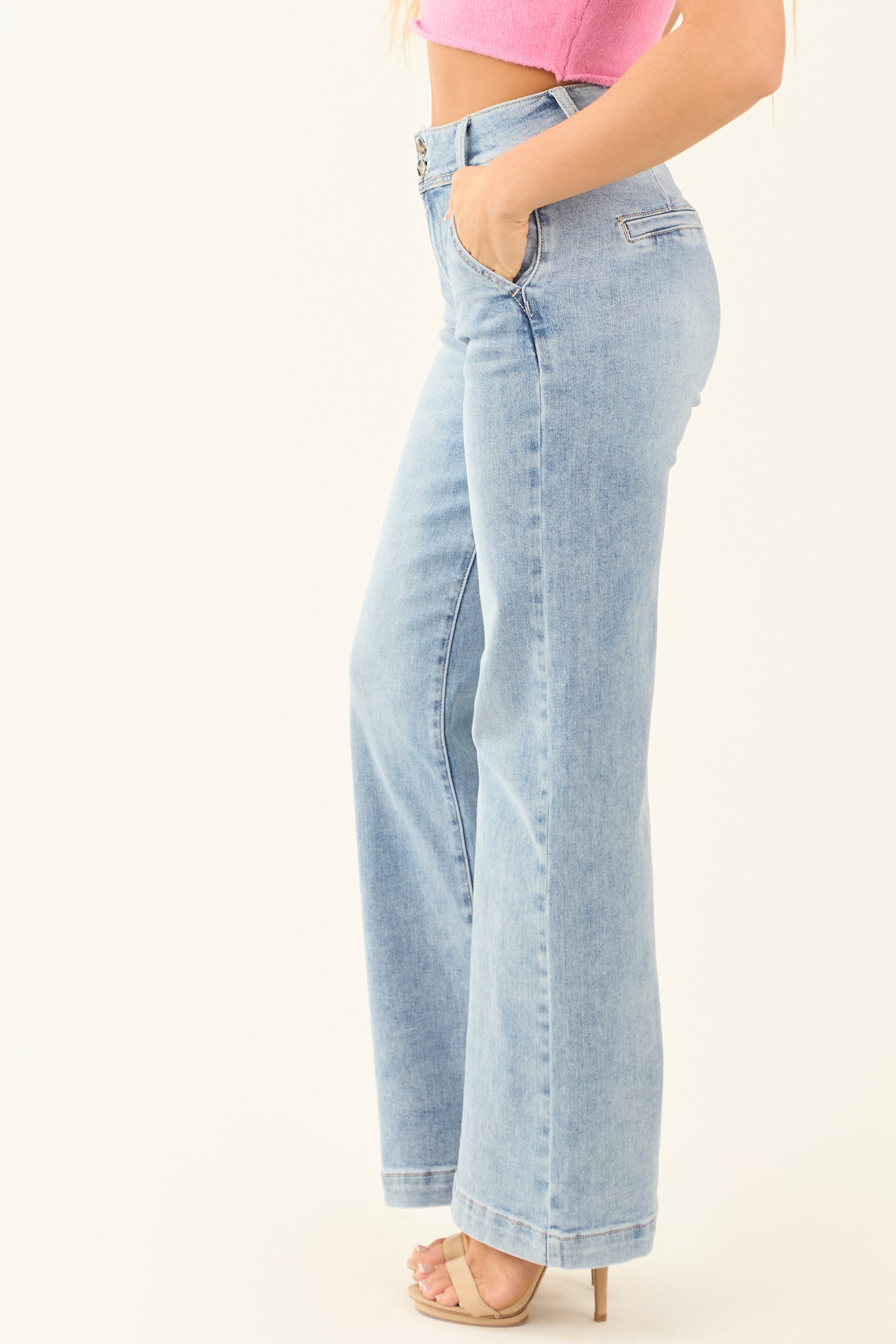 - Semi-stretchy denim
