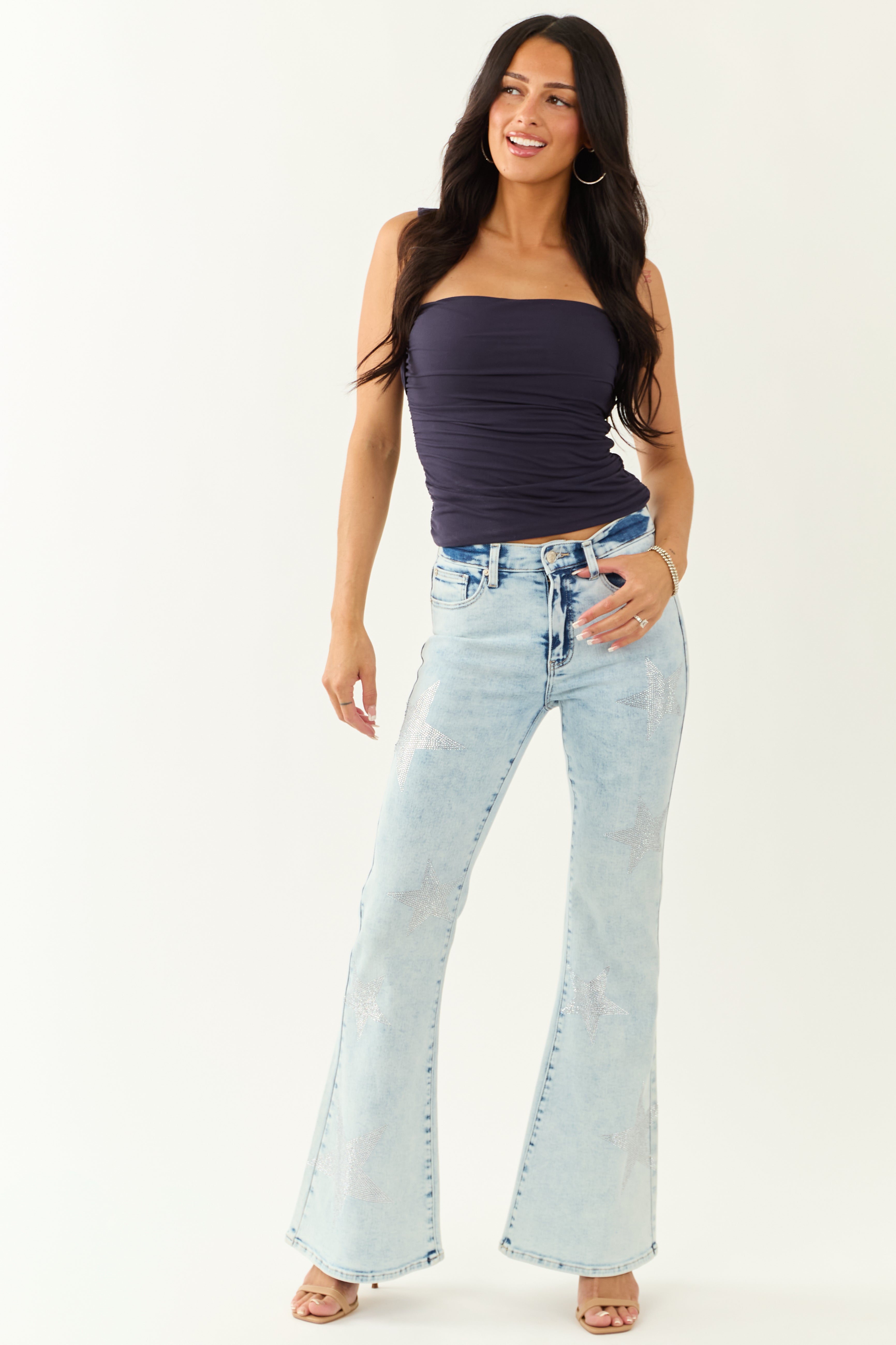 - These power flare jeans are full of charm and feature an elastic inner waistband and a built-in mesh tummy control panel for a smooth. supportive fit
