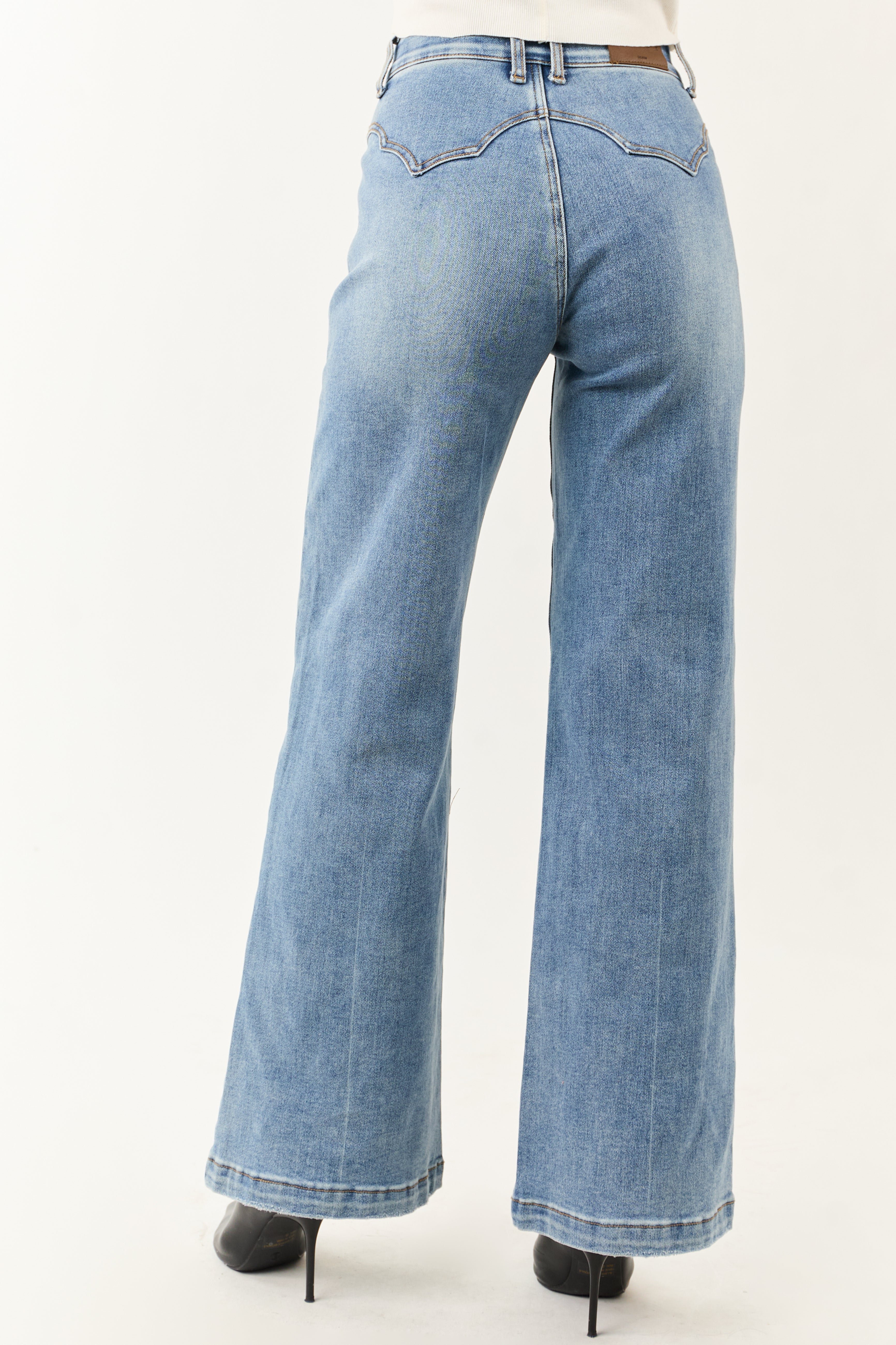 - Sculpted to support—these wide leg jeans feature a tummy control band. structured front. and stretch-back comfort for the perfect balance of form and function.